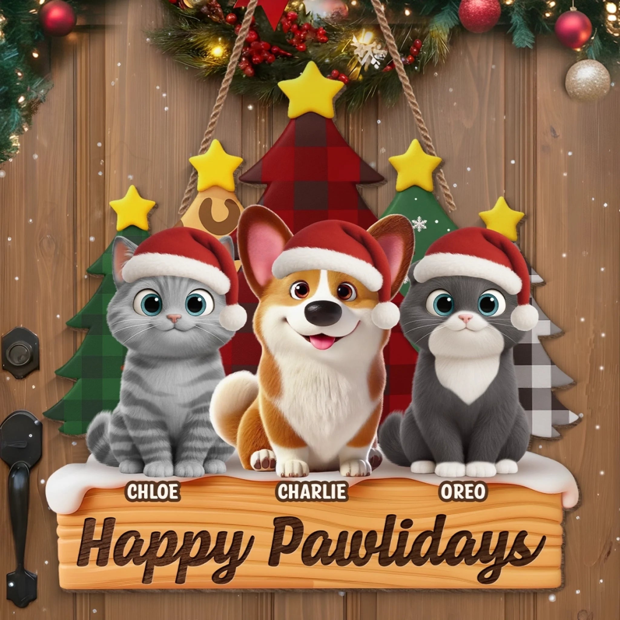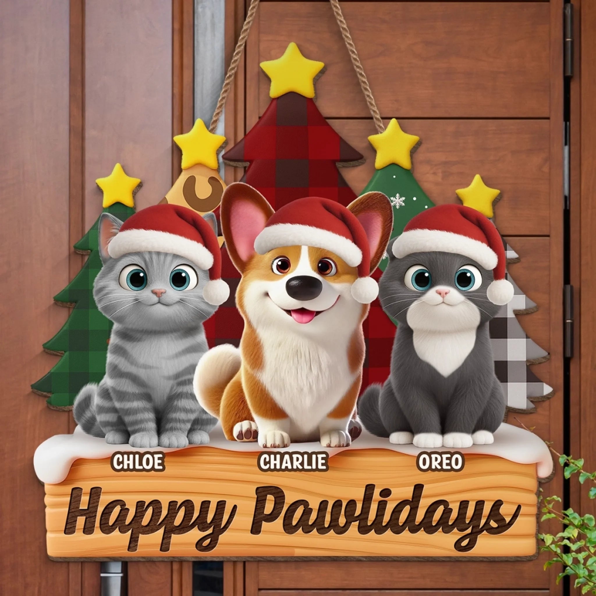 Custom Wood Sign - Personalized Christmas Birthday Gifts For Dog Cat Lovers, Dog Dad And Mom, Cat Owners - Furever Festive