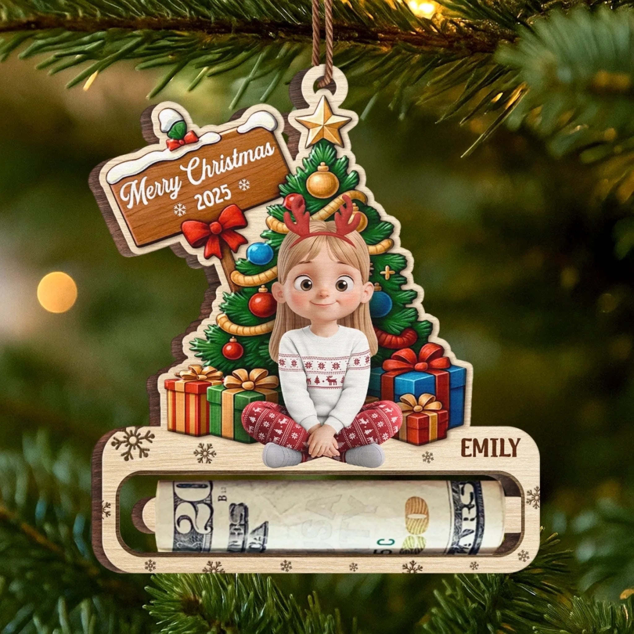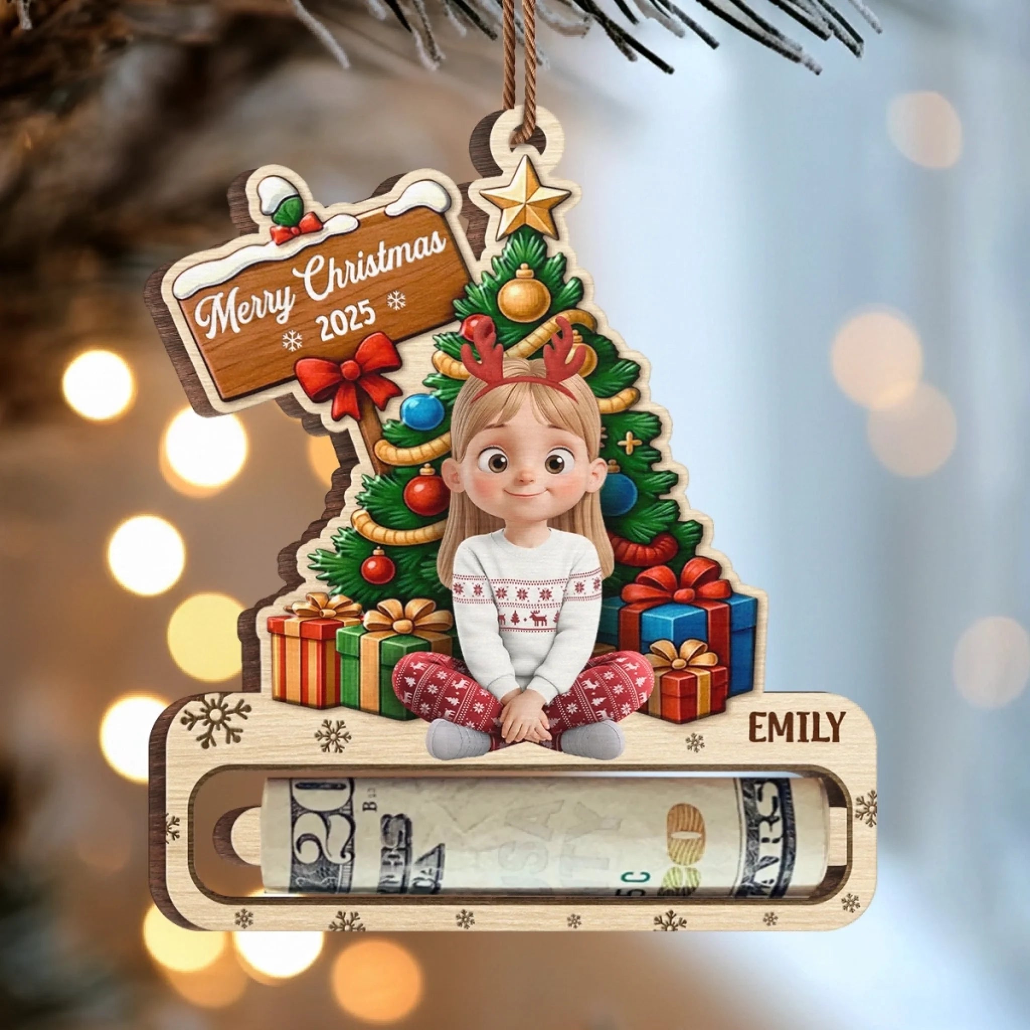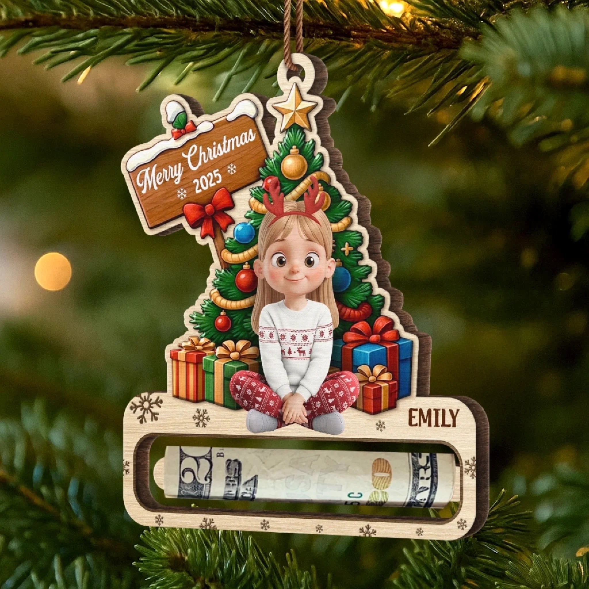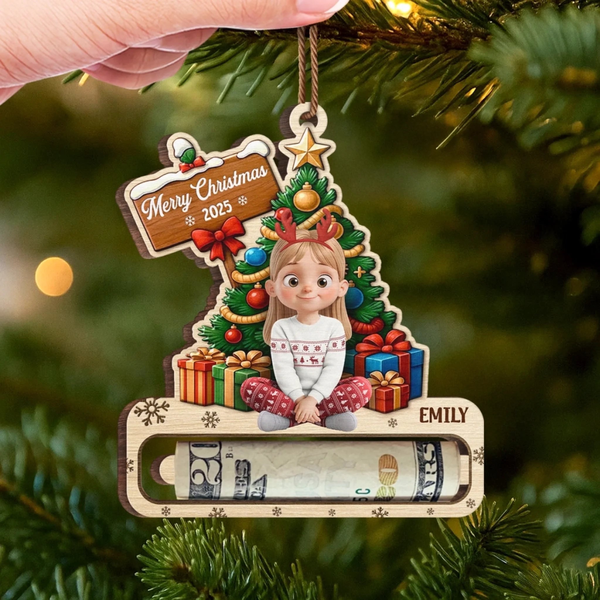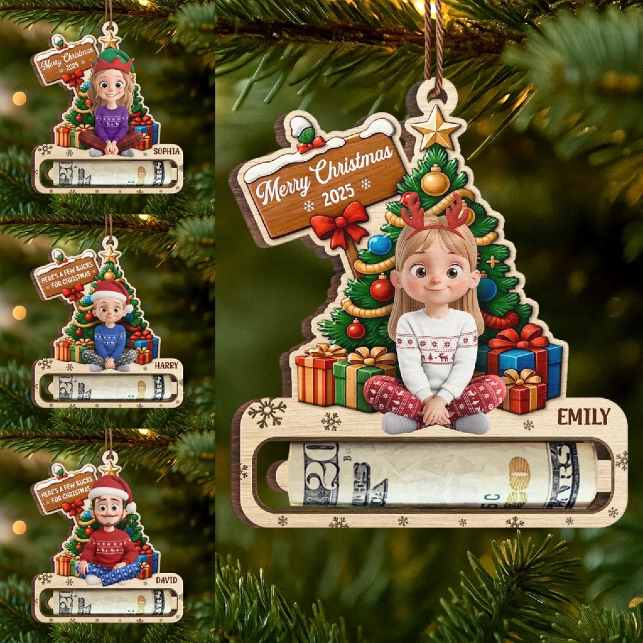 Custom Wooden Money Holder Ornament - Personalized Christmas Birthday Gifts For Kids - Little Elves Big Smiles