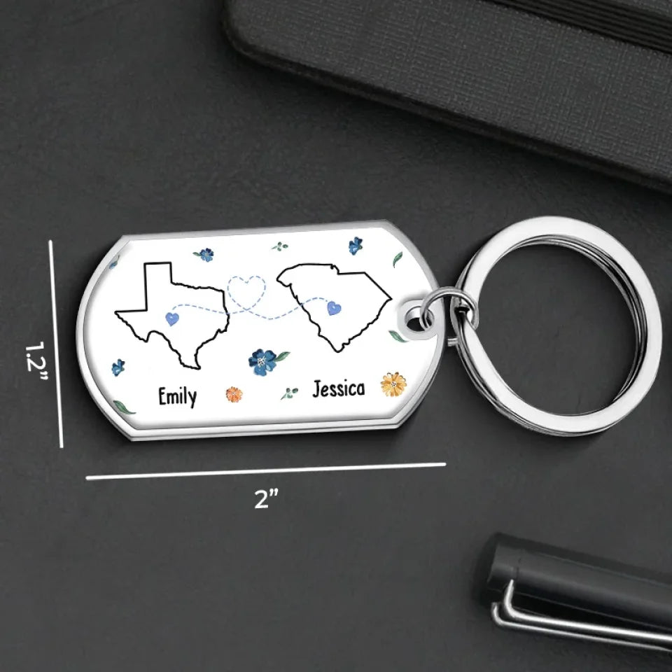 Even Though We're Far Apart, You're Always Right Here In My Heart - Bestie Personalized Custom Keychain - Gift For Best Friends, BFF, Sisters