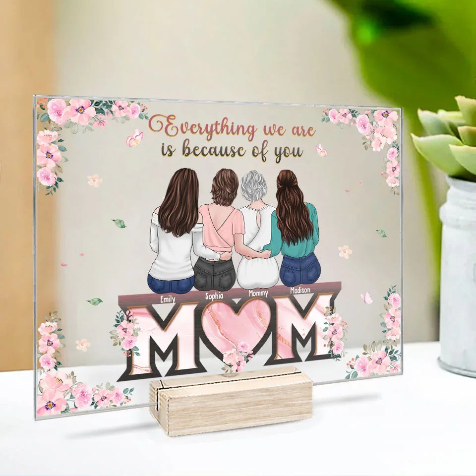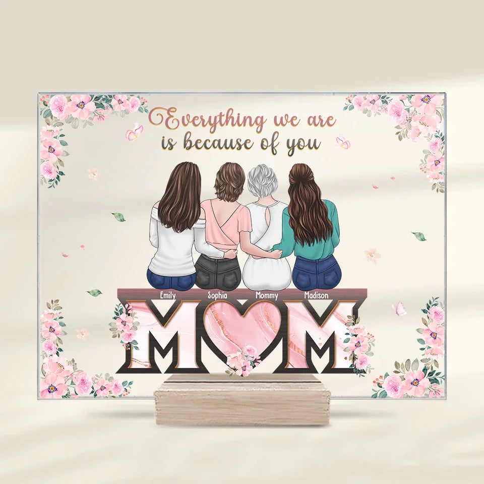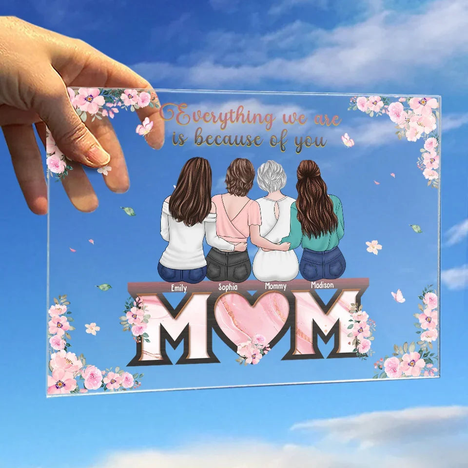 Everything We Are Is Because Of You - Family Personalized Custom Rectangle Shaped Acrylic Plaque - Gift For Mom, Daughter