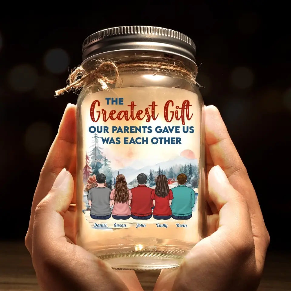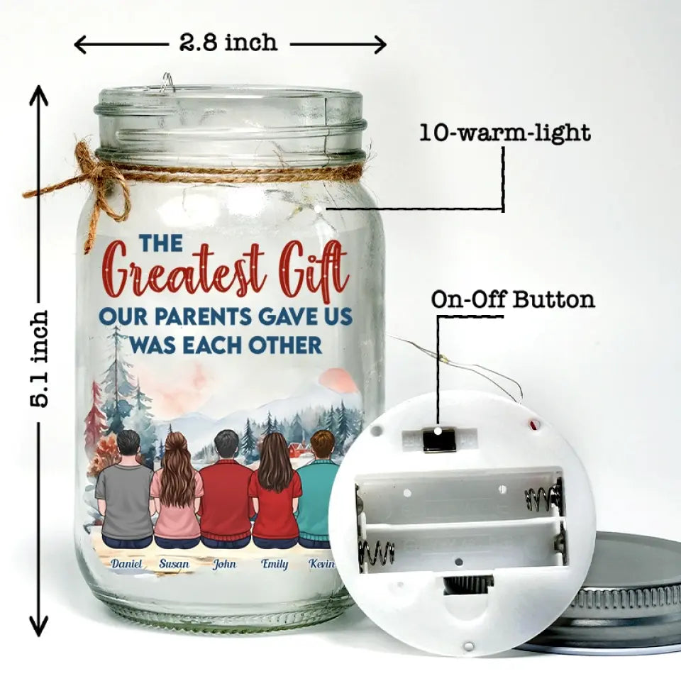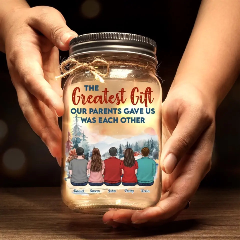 Family Is A Little World Created By Love - Family Personalized Custom Mason Jar Light - Gift For Siblings, Brothers, Sisters
