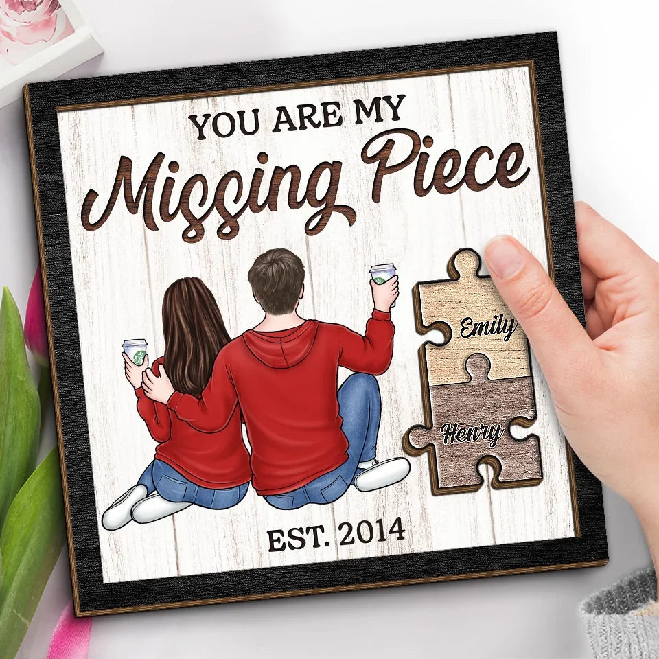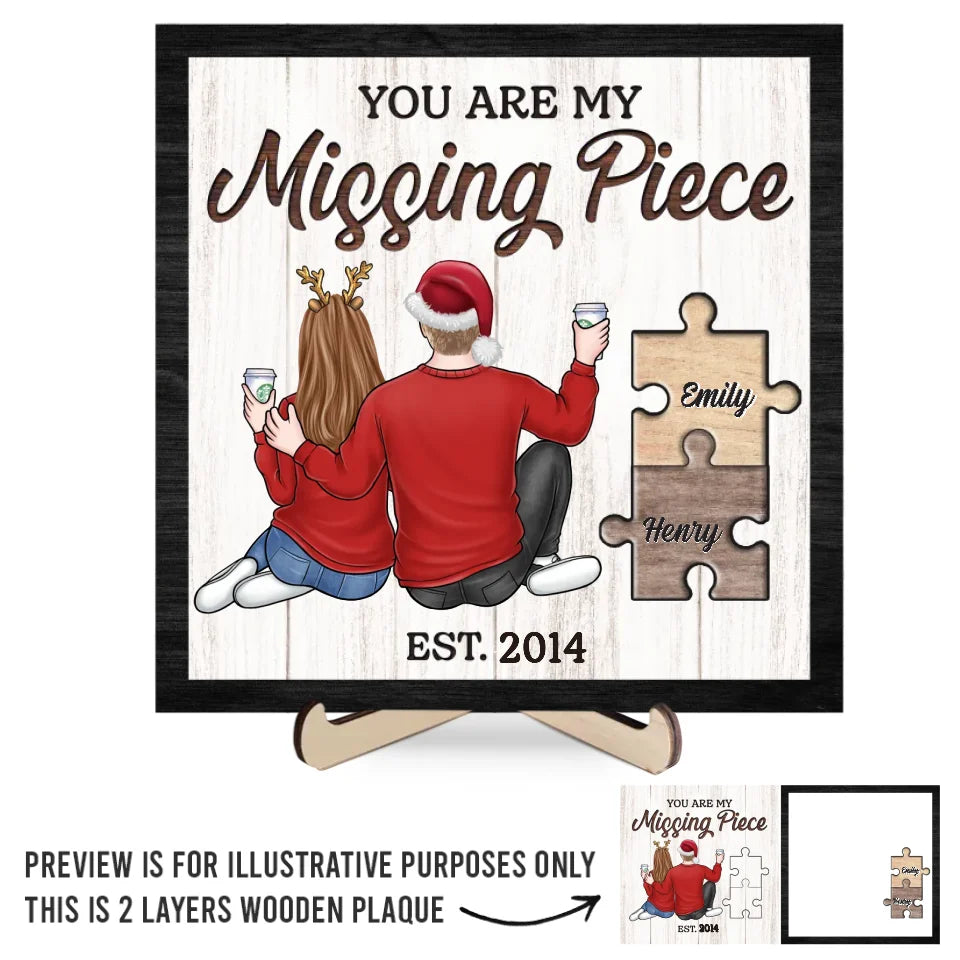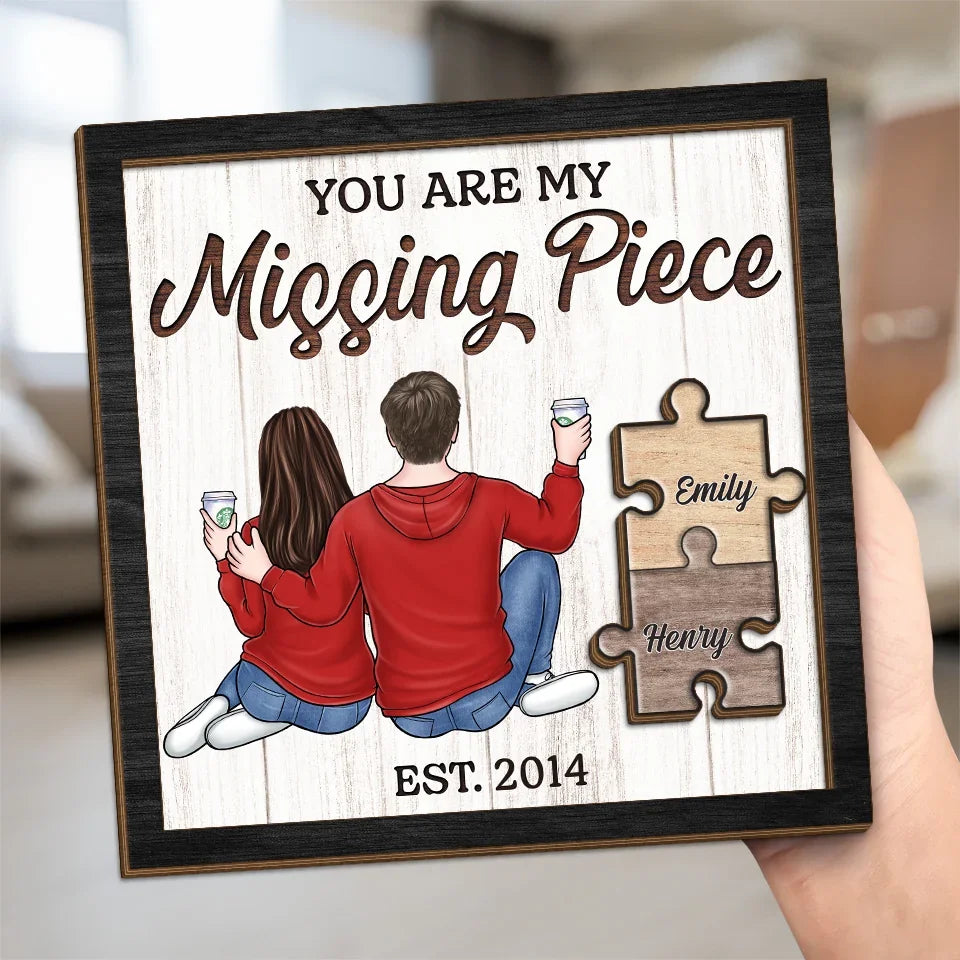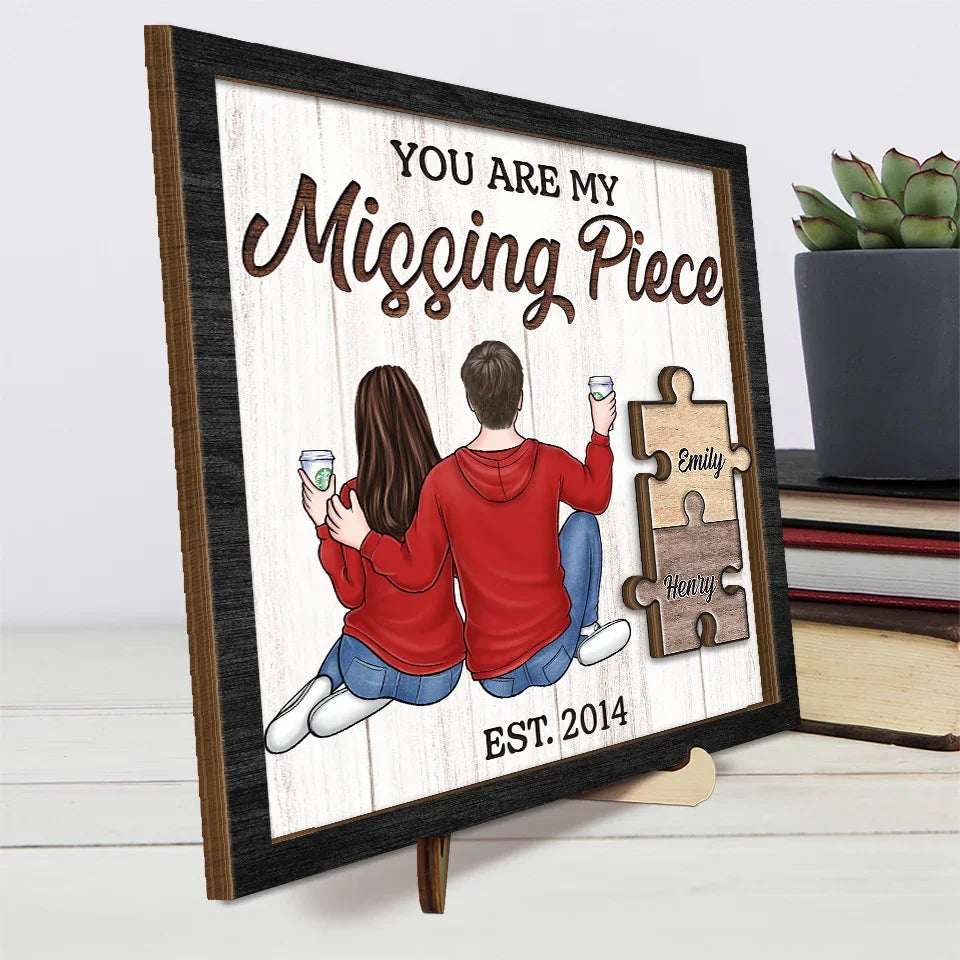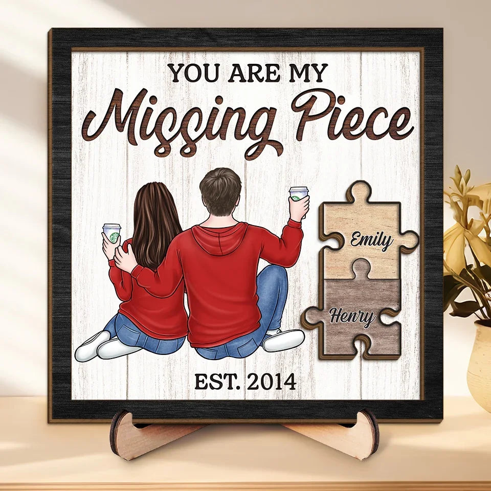 Finding Love In All The Right Pieces - Couple Personalized Custom 2-Layered Wooden Plaque With Stand - Gift For Husband Wife, Anniversary