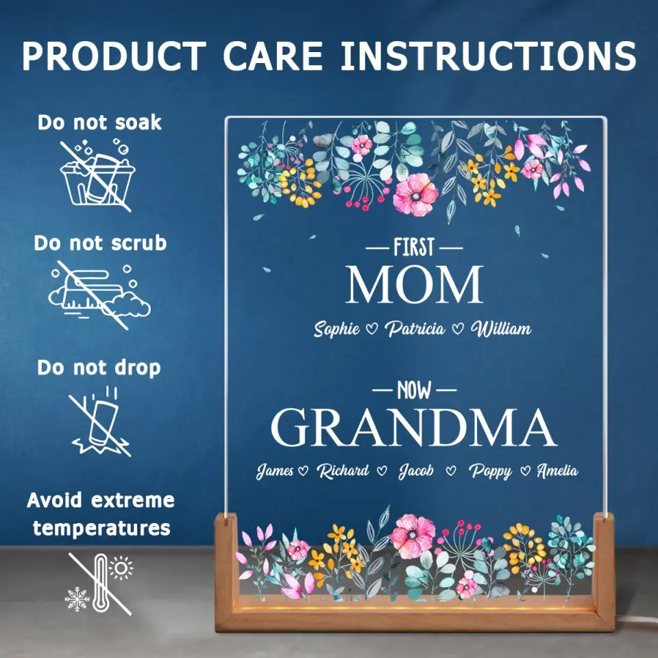 First Mom Now Grandma - Family Personalized Custom Shaped 3D LED Walnut Night Light - Mother's Day, Gift For Mom, Grandma