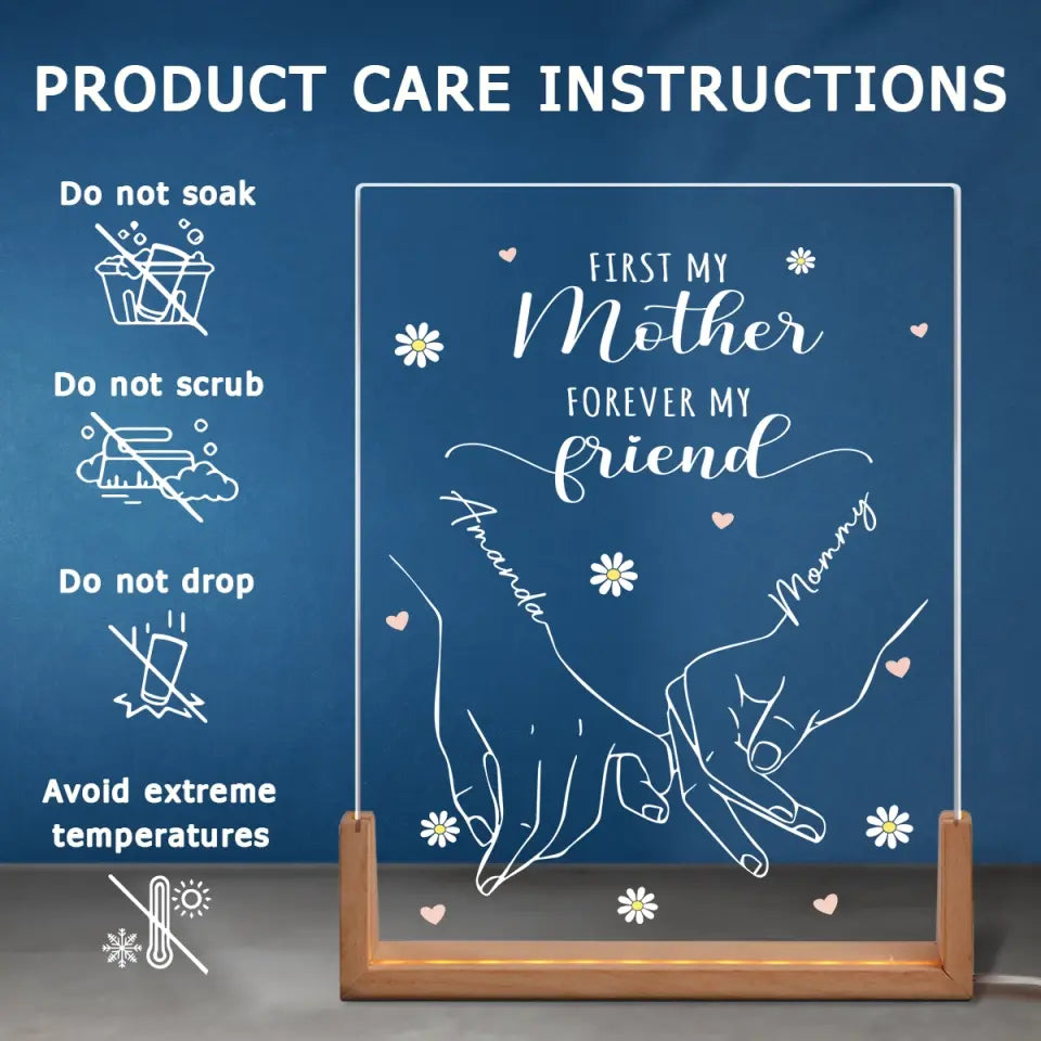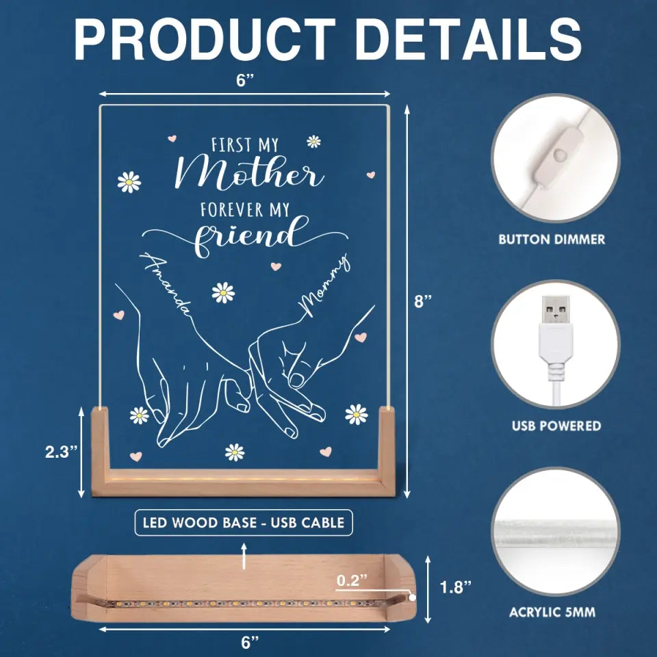 First My Mom Forever My Friend - Family Personalized Custom Shaped 3D LED Walnut Night Light - Mother's Day, Gift For Mom