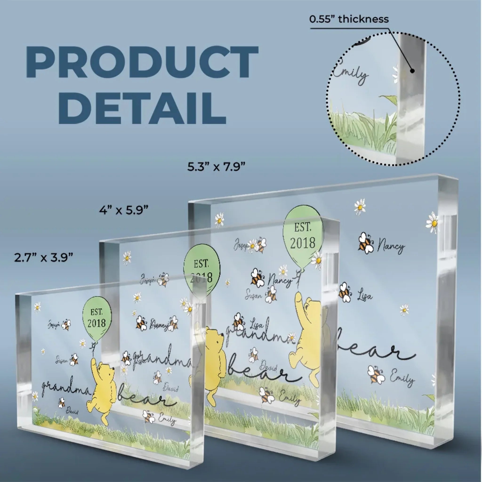 Material: Made of premium acrylic, thickness 0.55 in (1.4 cm).