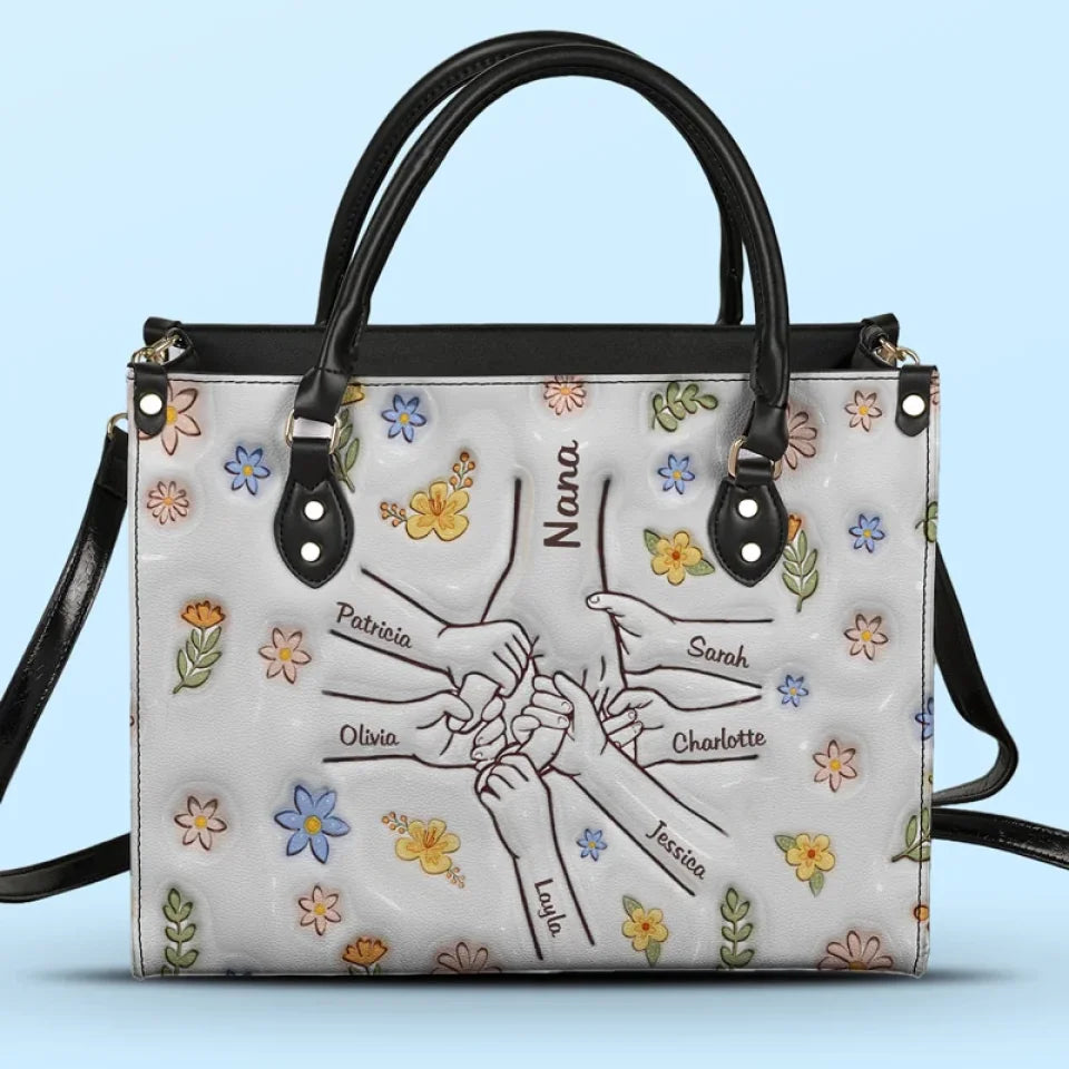 Grandma’s Touch Is A Hug For The Soul - Family Personalized Custom 3D Inflated Effect Printed Leather Handbag - Gift For Mom, Grandma