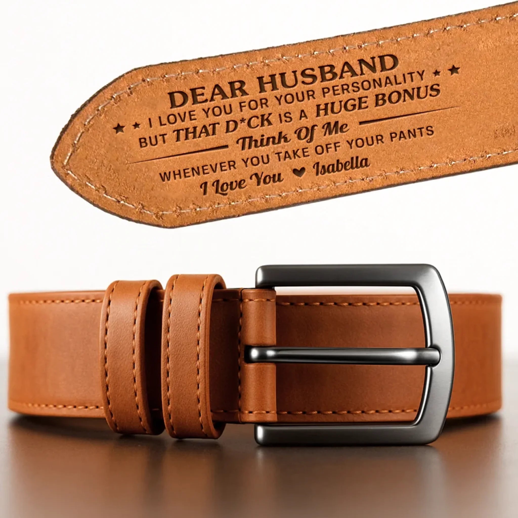 I Said Yes, Now Undress - Couple Personalized Custom Engraved Leather Belt - Gift For Husband Wife, Anniversary