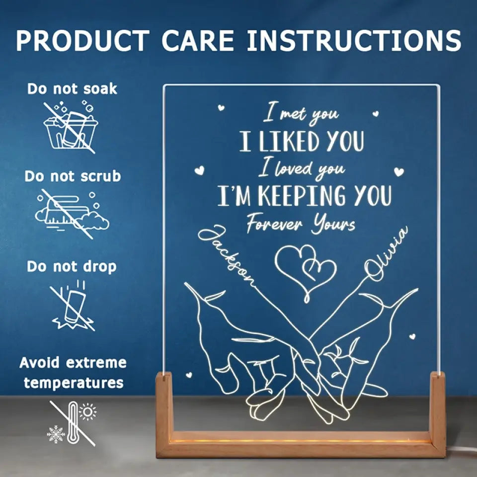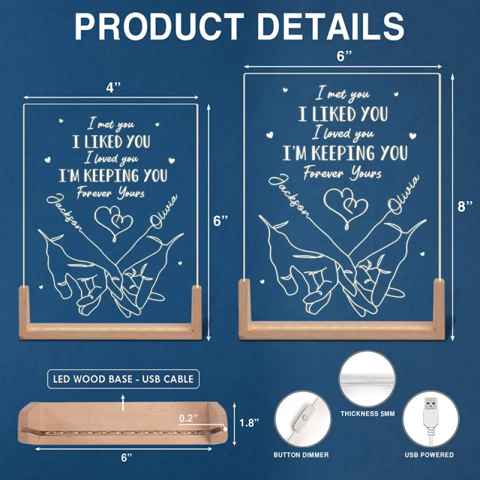 I'm Keeping You, Forever Yours - Couple Personalized Custom Shaped 3D LED Walnut Night Light - Gift For Husband Wife, Anniversary
