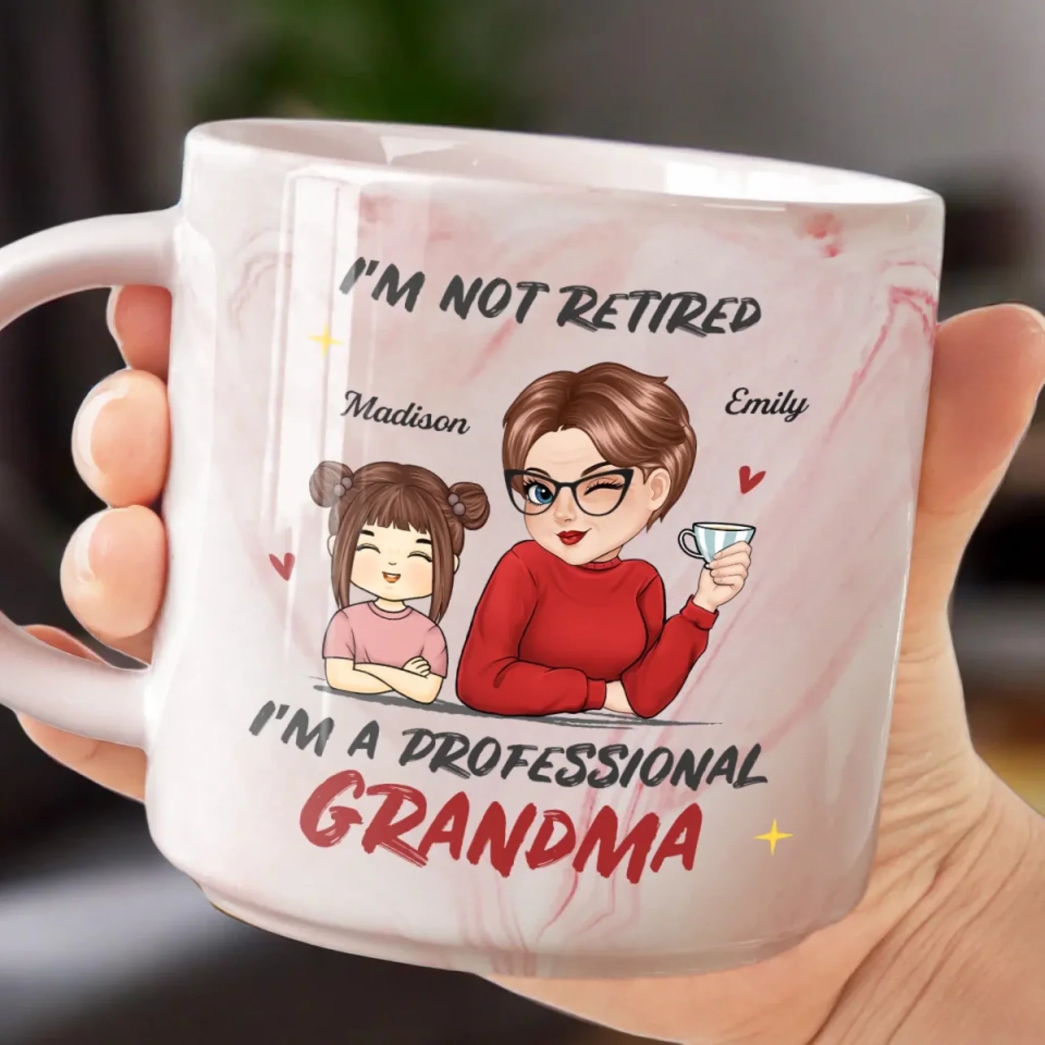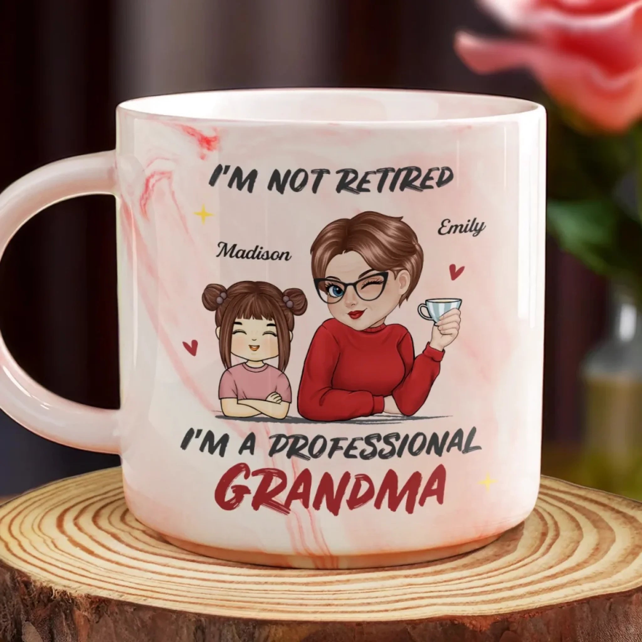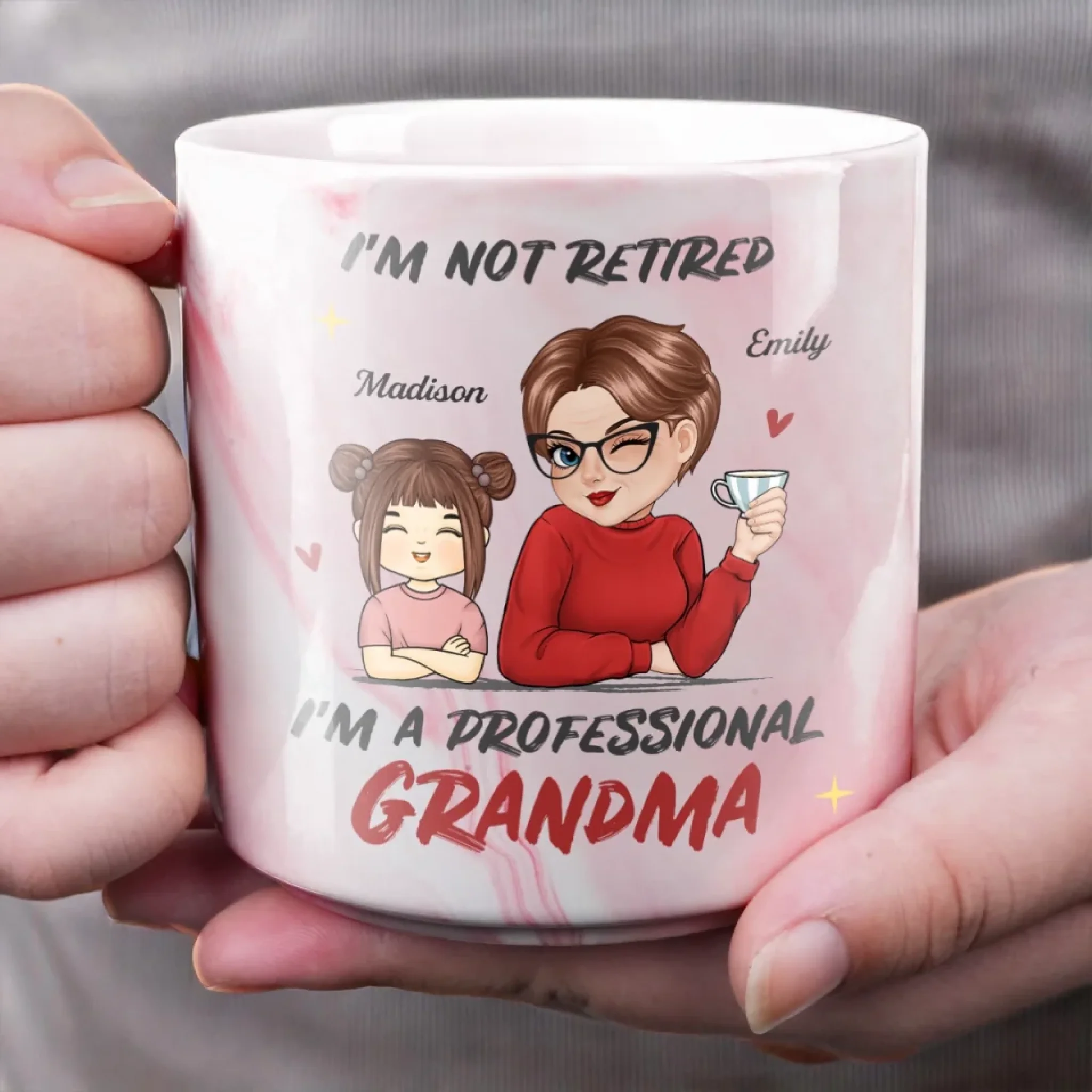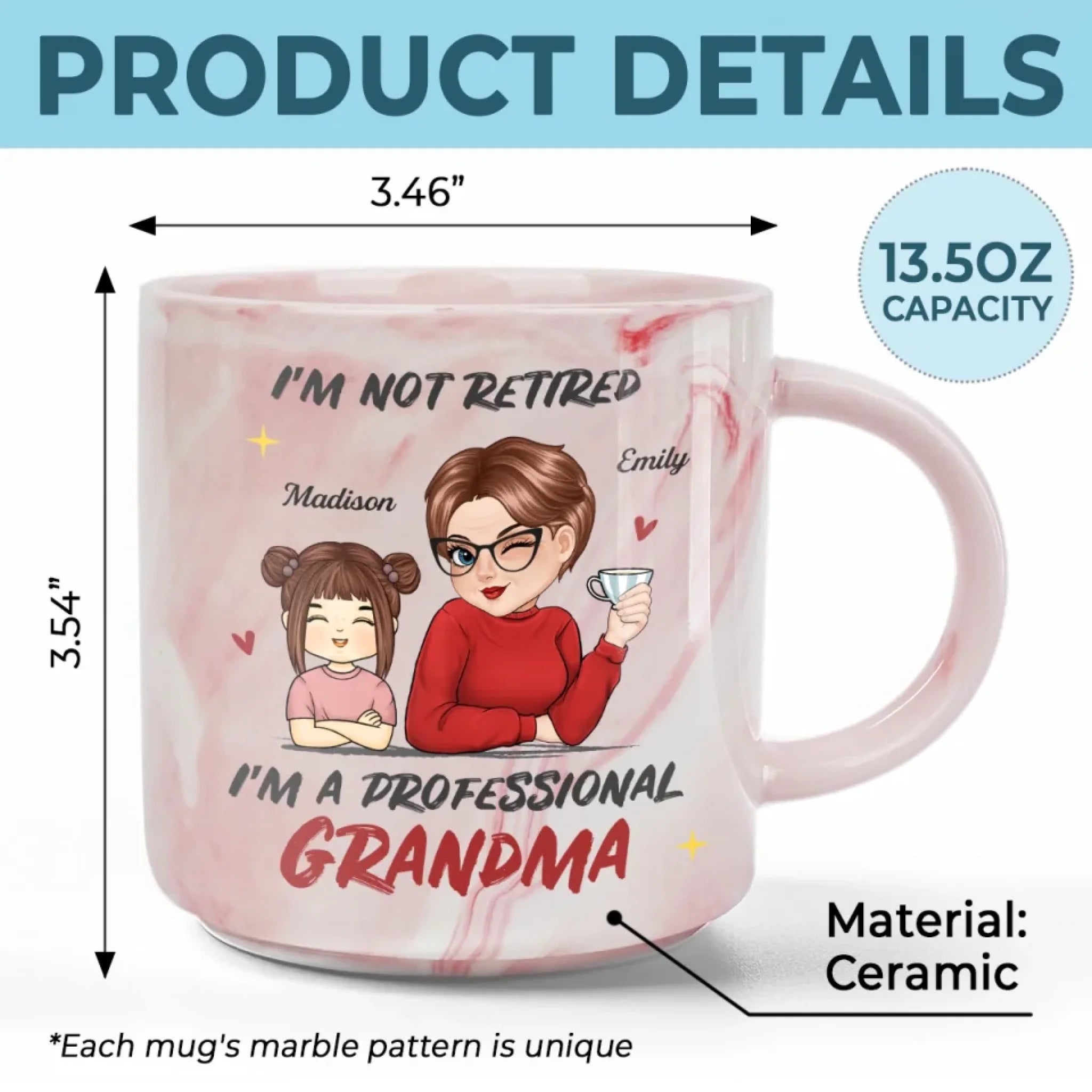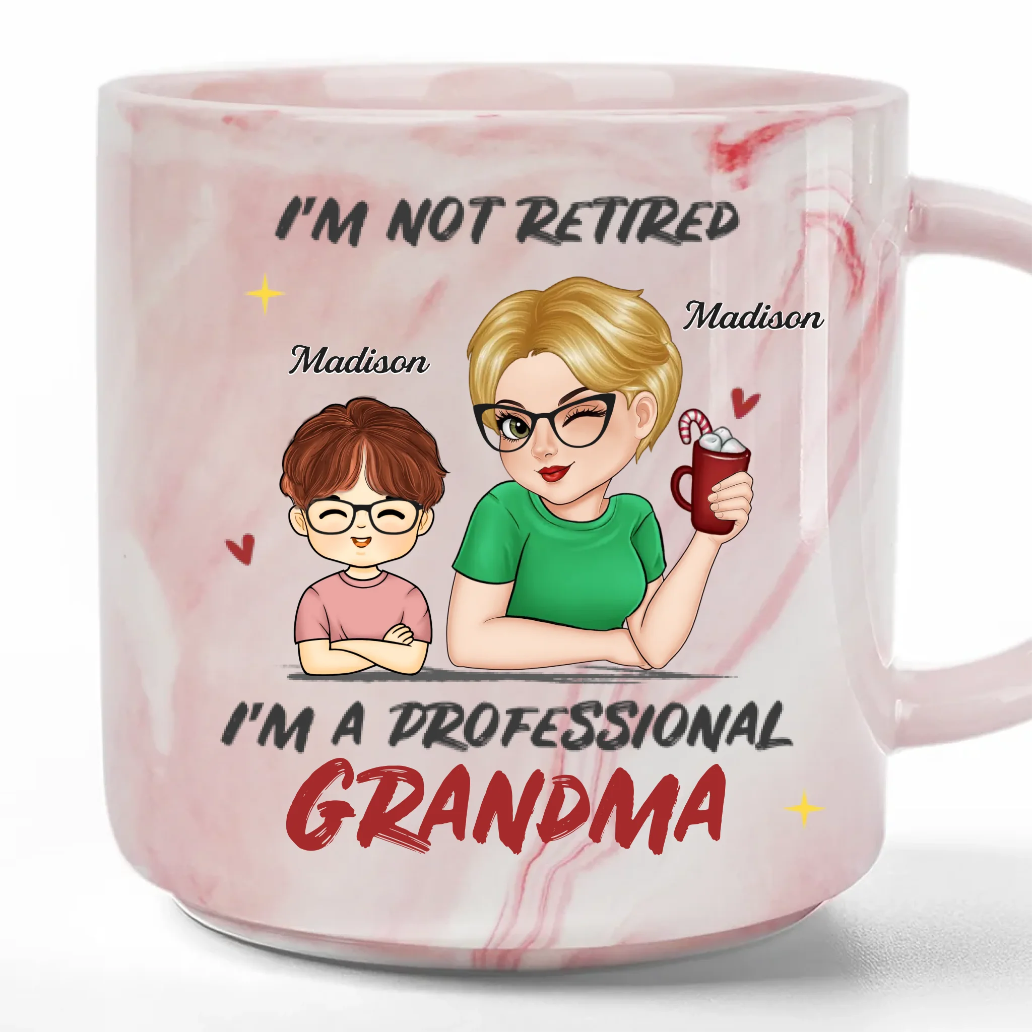 I'm Not Retired, I'm A Professional Grandma - Family Personalized Custom Marble Mug - Mother's Day, Gift For Mom, Grandma
