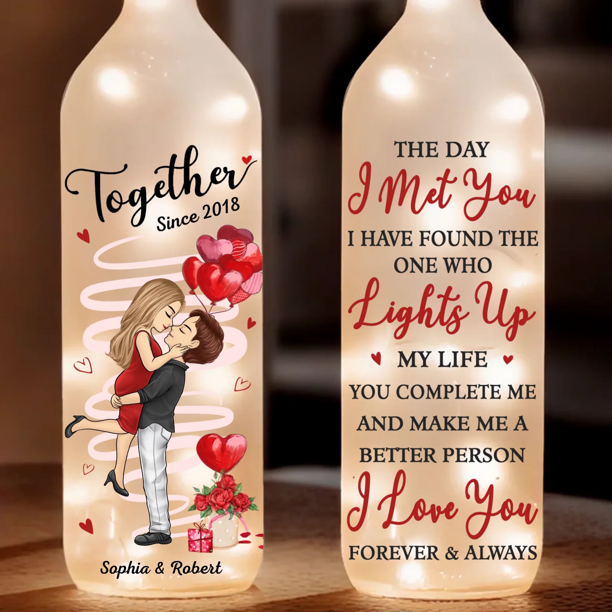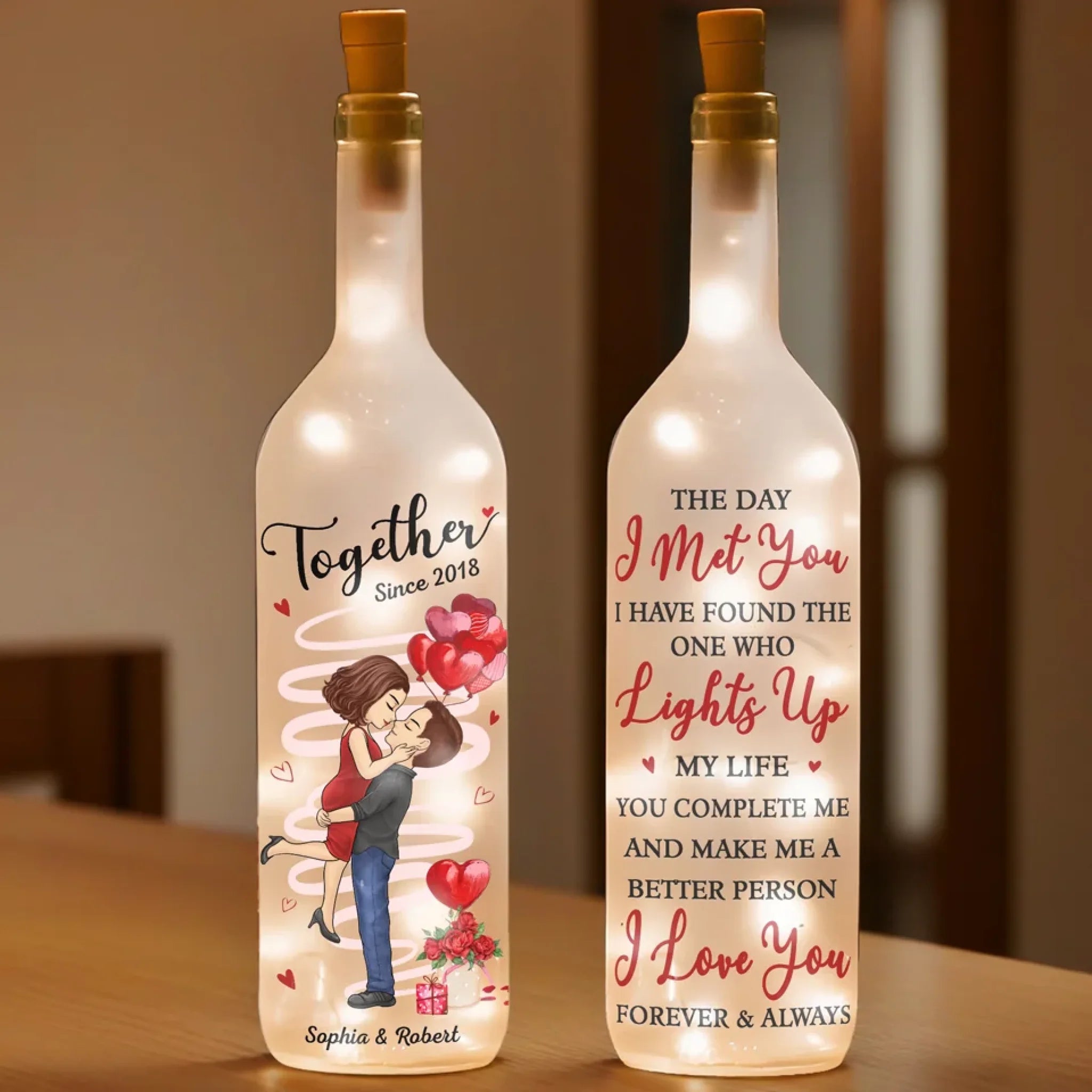 Let Love Light The Way - Couple Personalized Custom Bottle Lamp - Gift For Husband Wife, Anniversary
