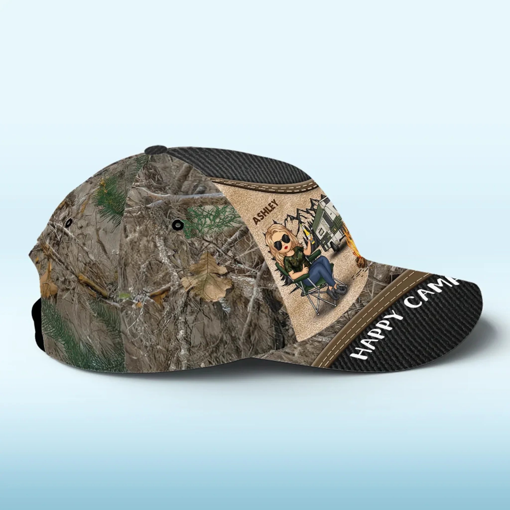 Living The Dream, Happy Camper Style - Camping Personalized Custom Hat, All Over Print Classic Cap - Gift For Camping Lovers