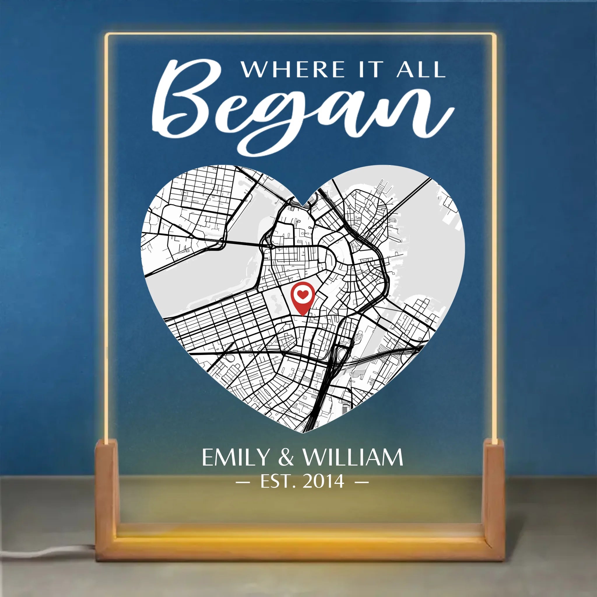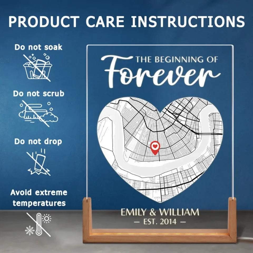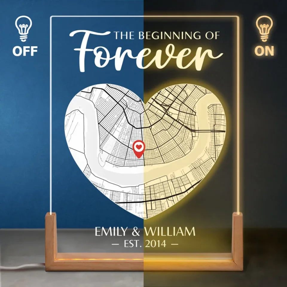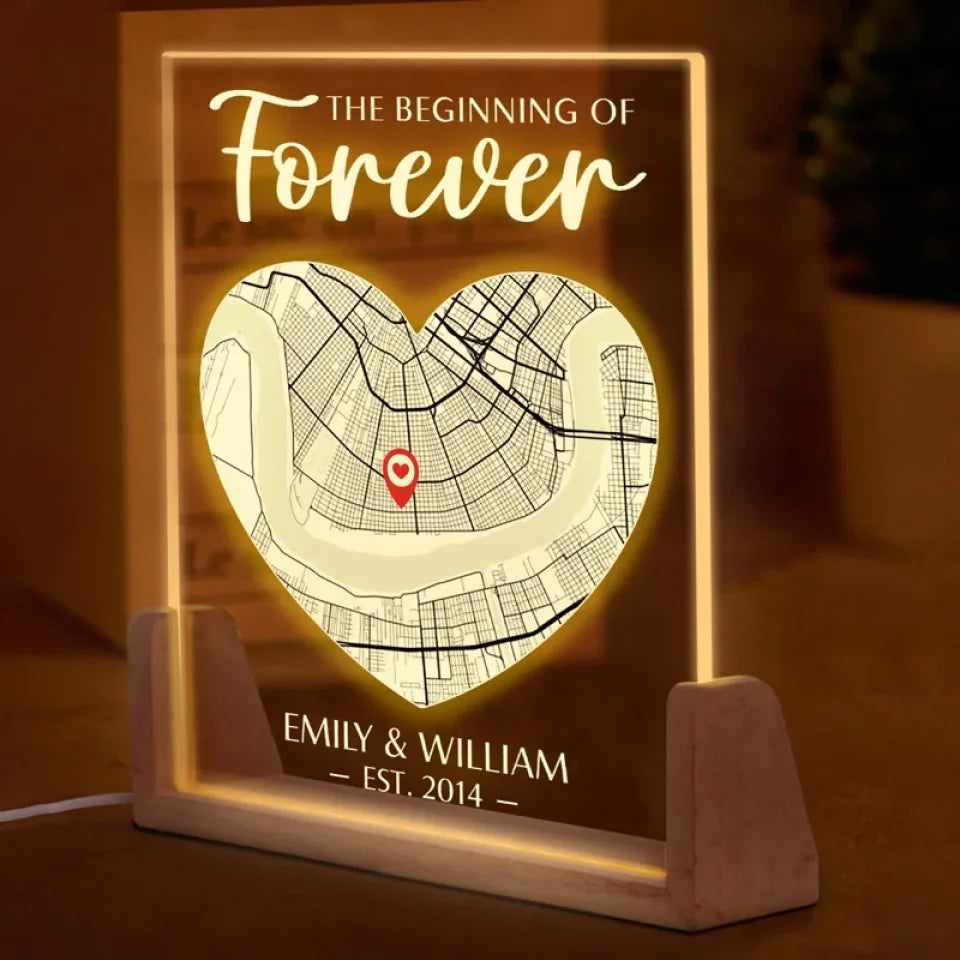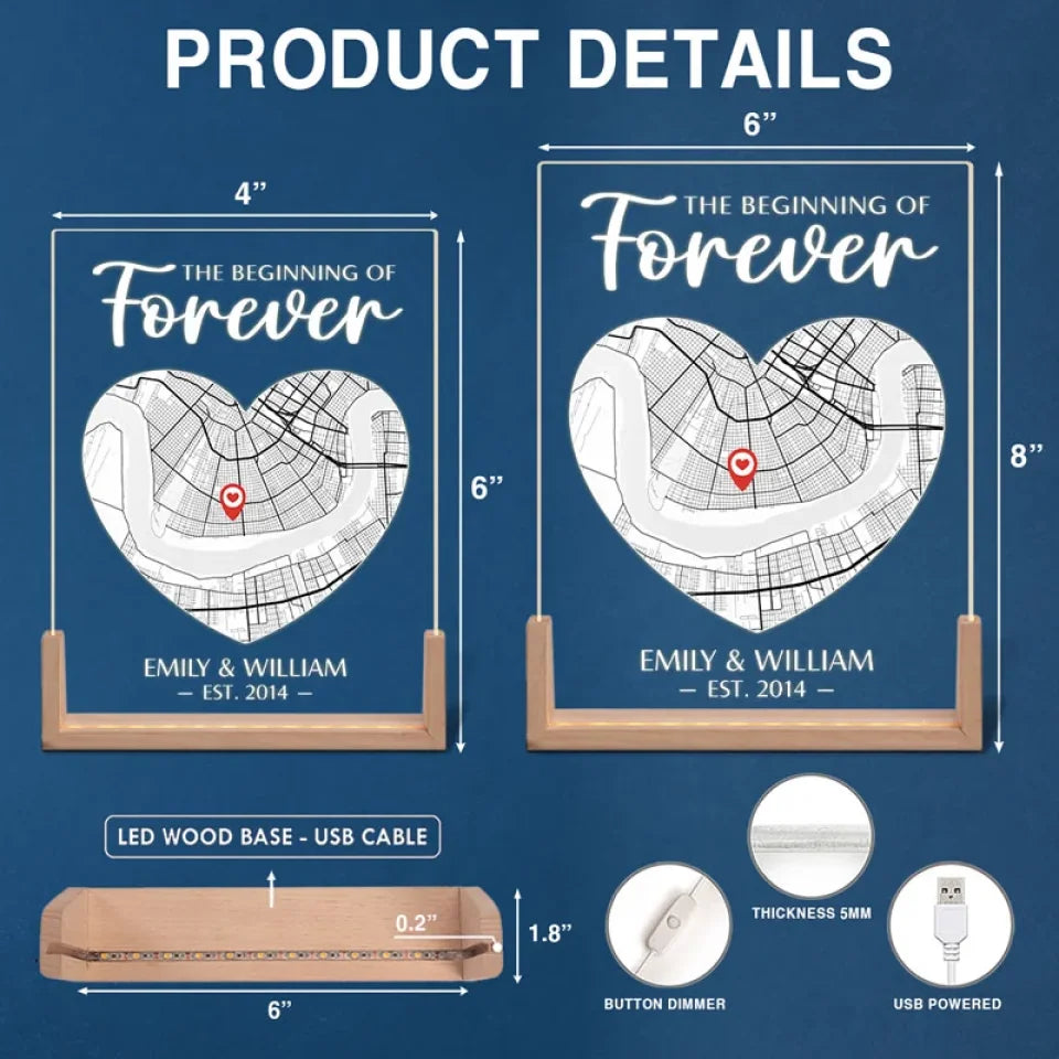 Location Map Two Hearts, One Map - Couple Personalized Custom Map Shaped 3D LED Walnut Night Light - Map Art, Christmas Gift For Husband Wife, Anniversary