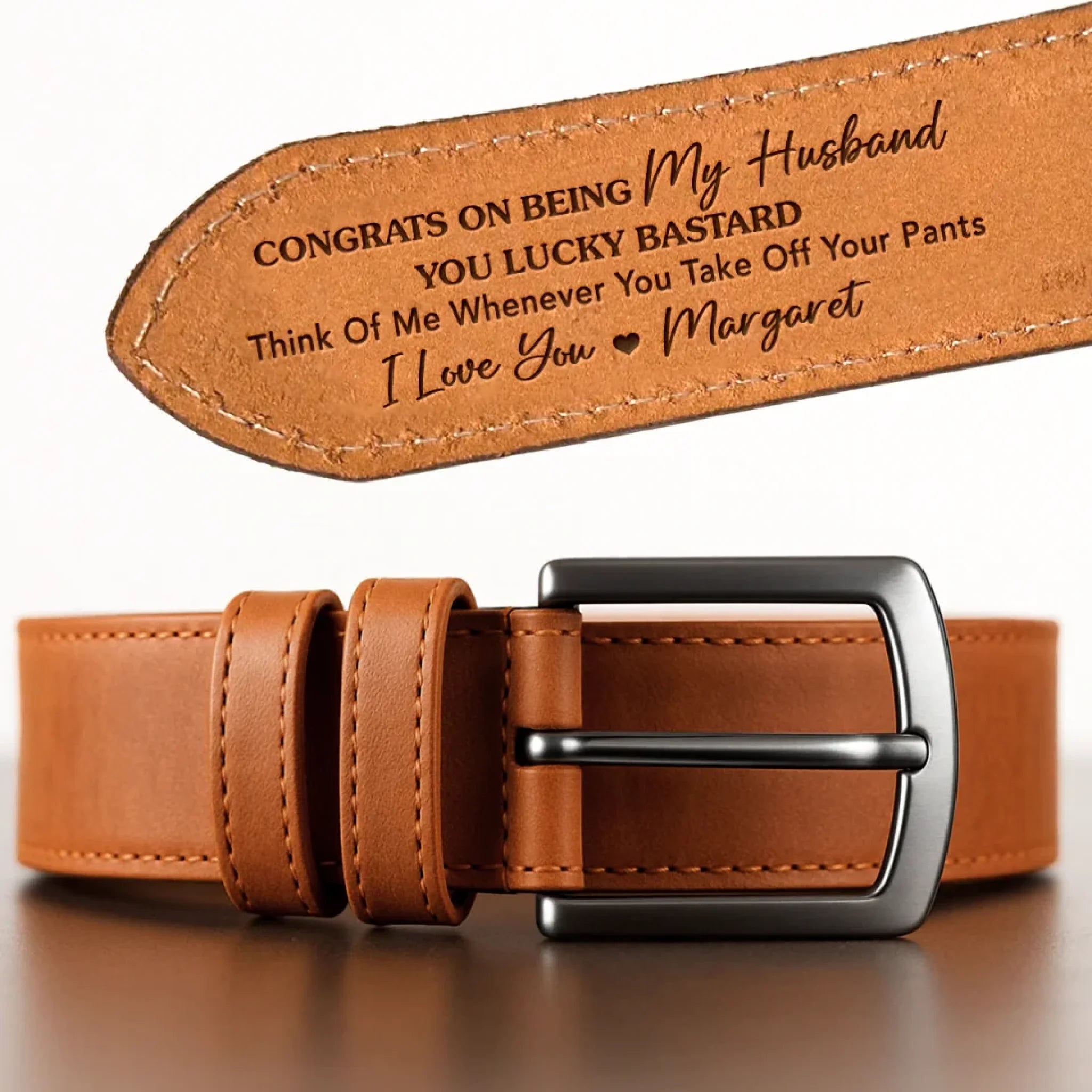 Love Wraps Around You - Couple Personalized Custom Engraved Leather Belt - Gift For Husband Wife, Anniversary