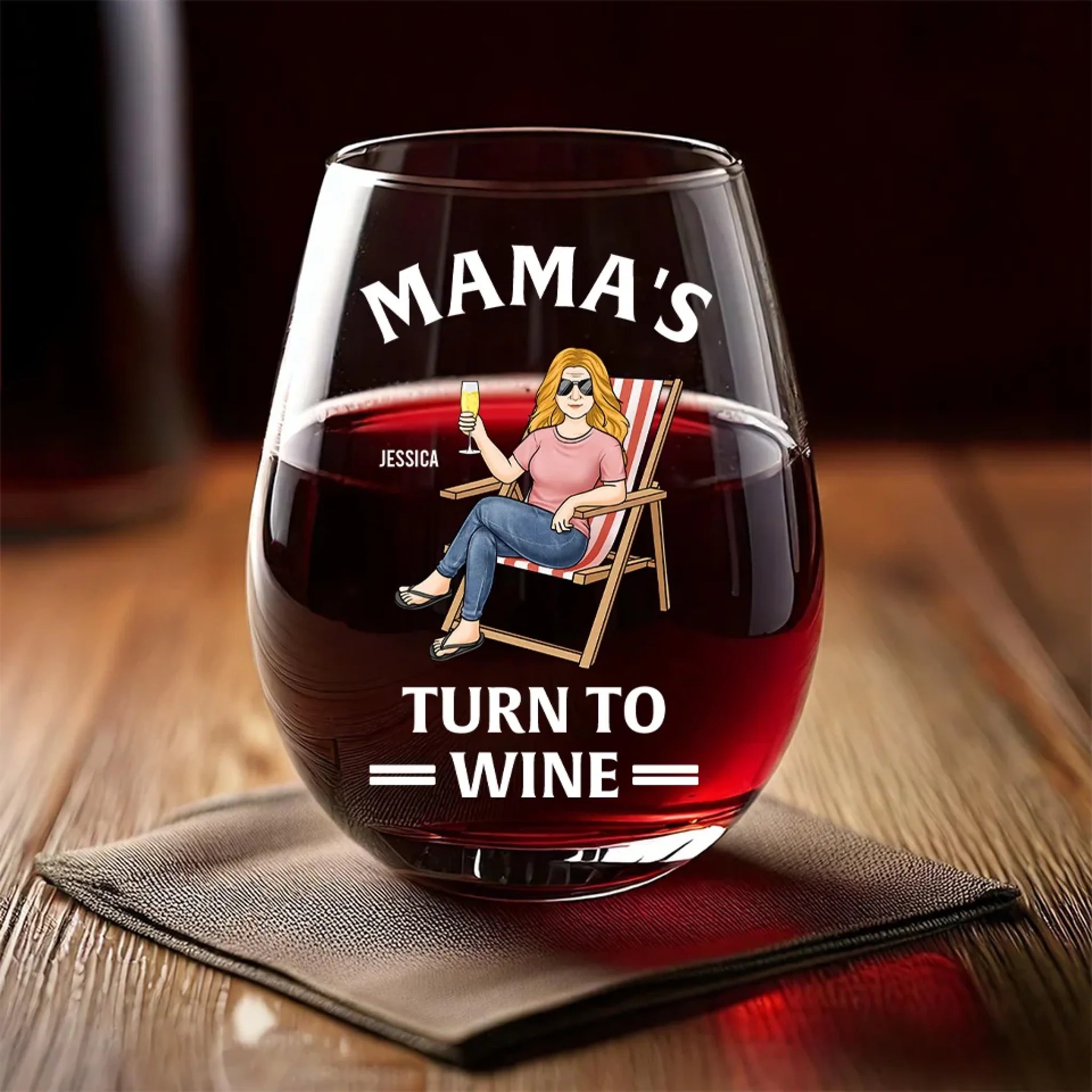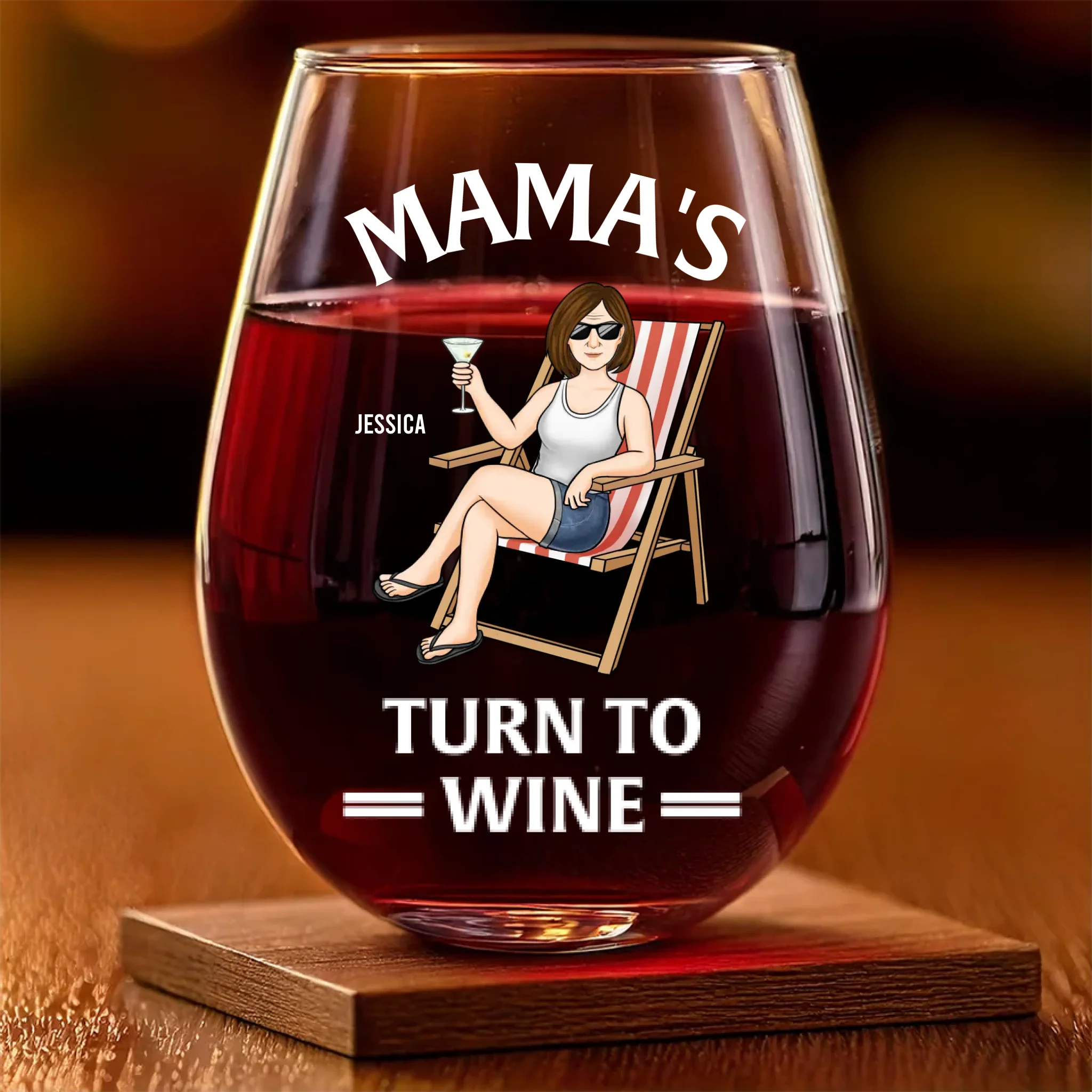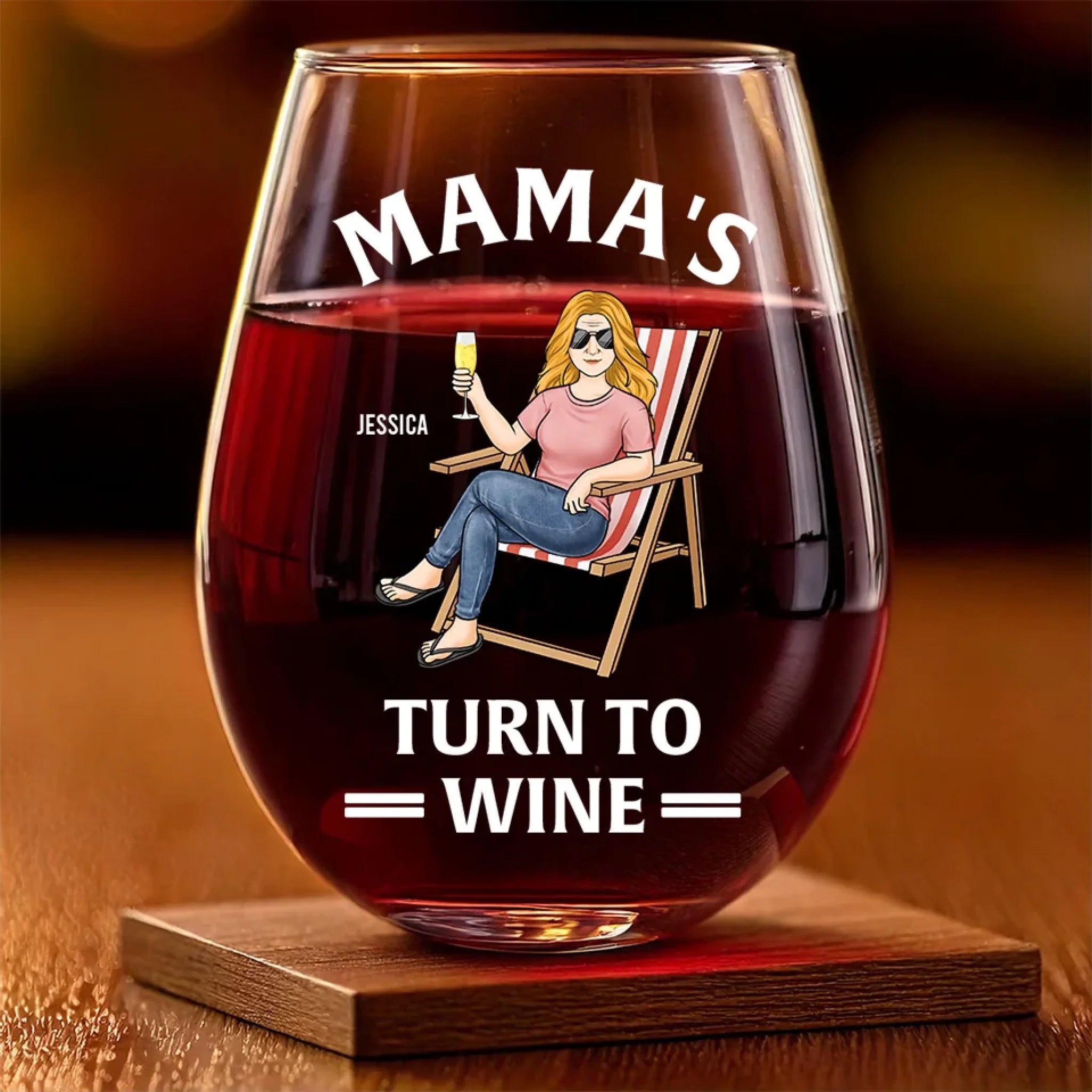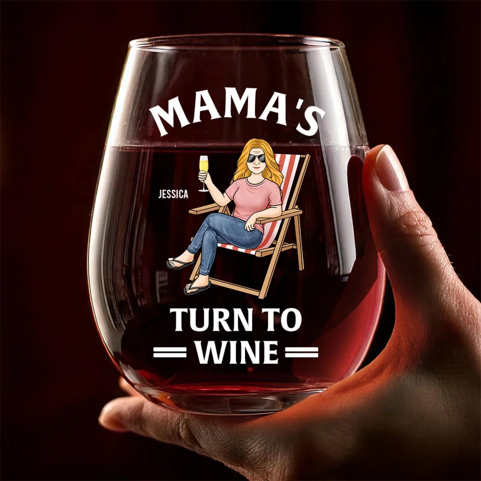 Mama's Turn To Wine - Family Personalized Custom Wine Glass - Mother's Day, Gift For Mom, Grandma