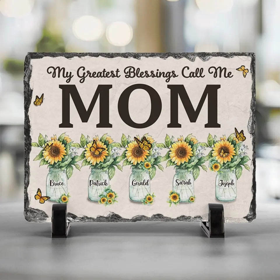 My Greatest Blessings Call Me Mom - Family Personalized Custom Rectangle Shaped Stone With Stand - Gift For Mom, Grandma