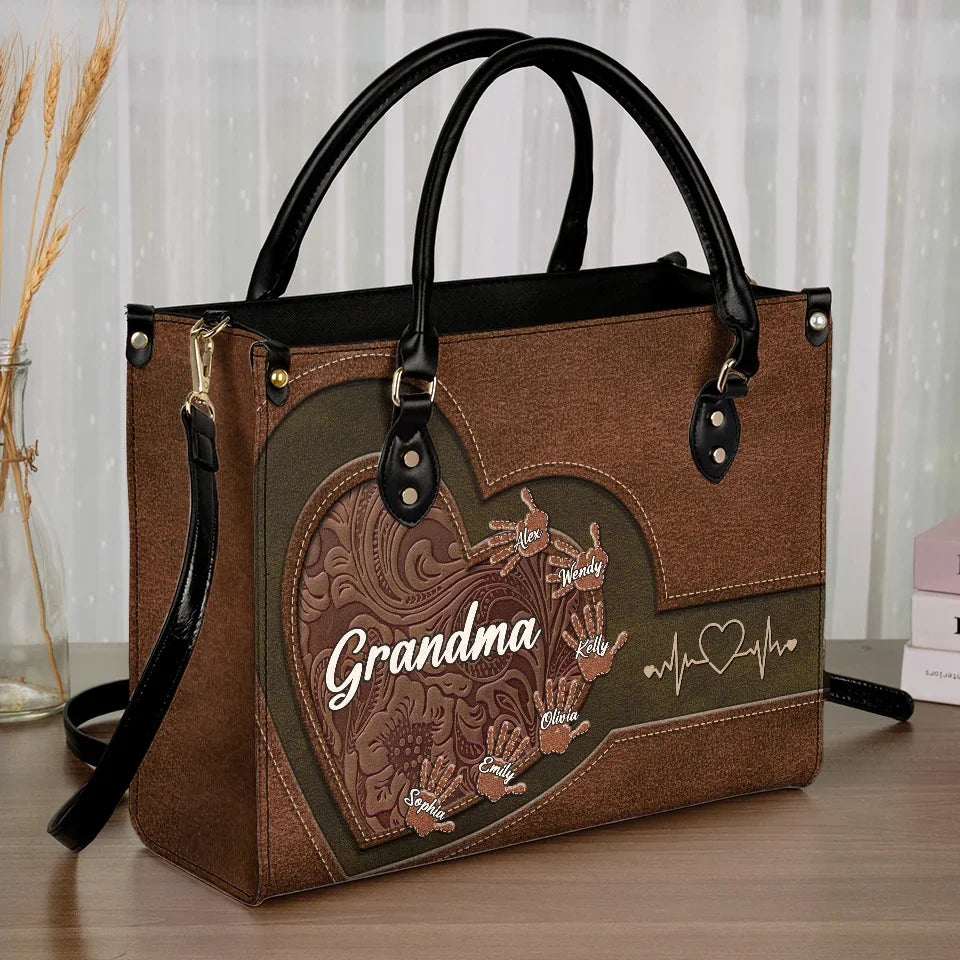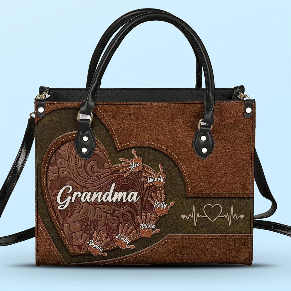 My Heart Belongs To My Grandkids - Family Personalized Custom Leather Handbag - Gift For Mom, Grandma