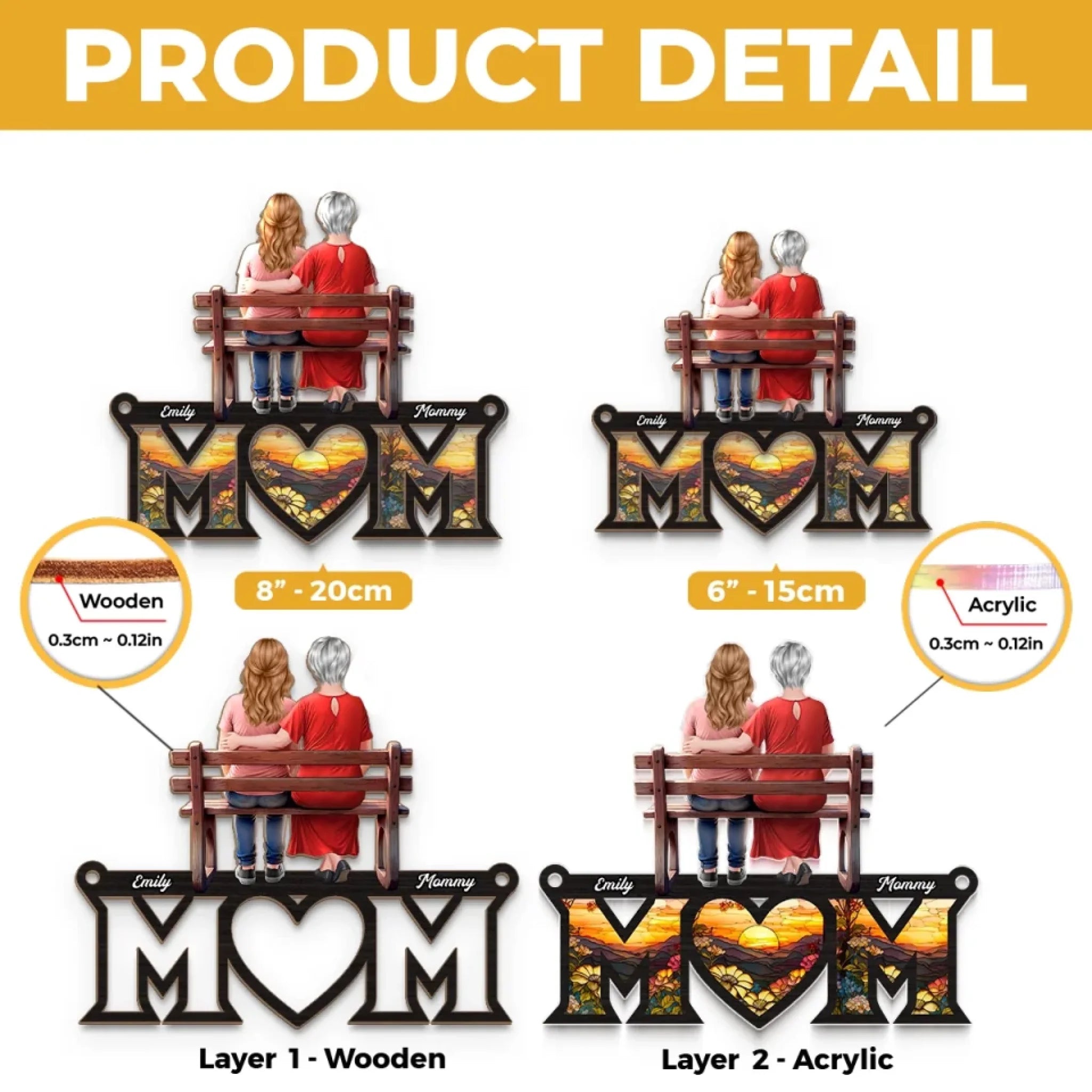 • Material: The front of this suncatcher is made from premium natural wood and mounted on acrylic plexiglass.