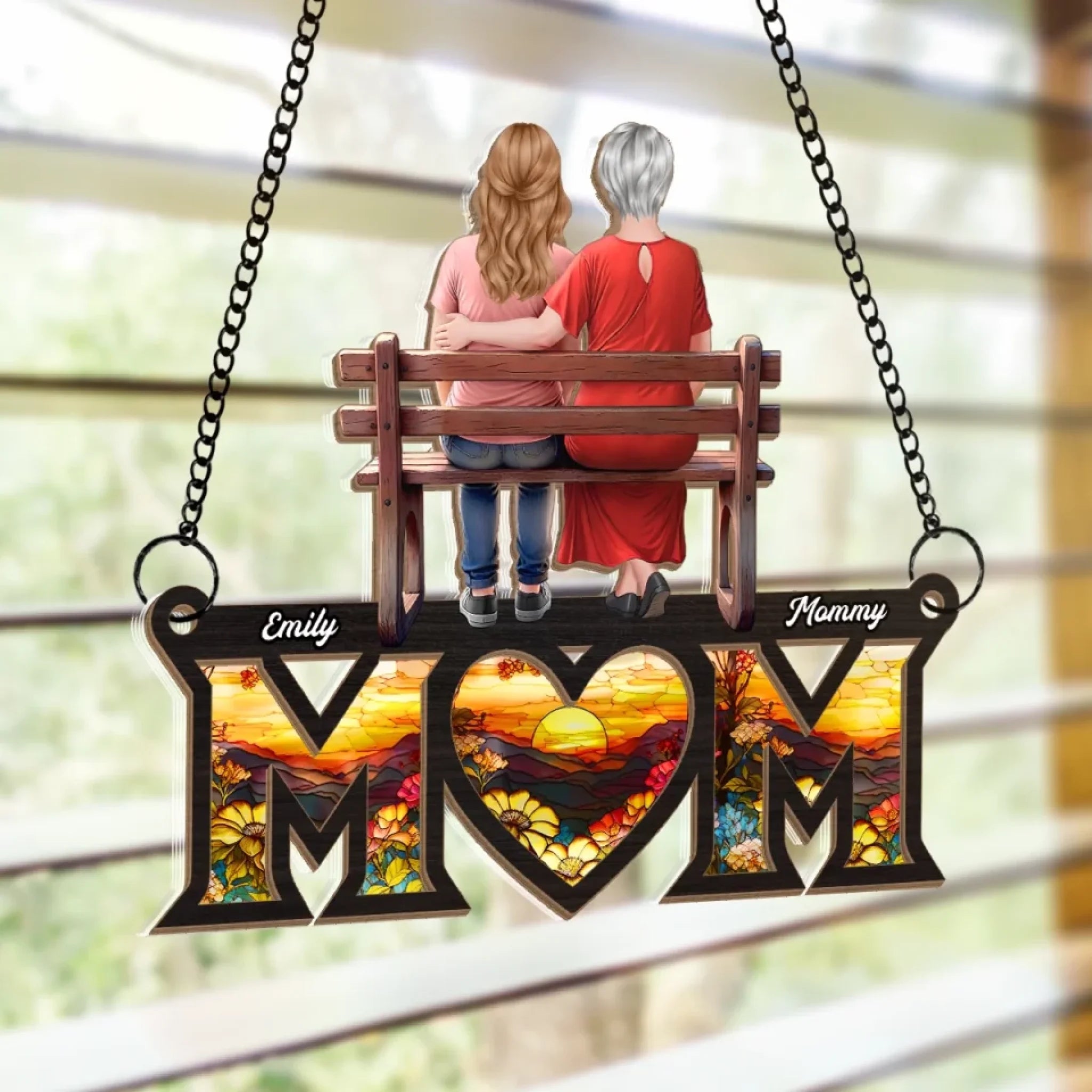 No Distance Can Break A Mother’s Love - Family Personalized Window Hanging Suncatcher Ornament - Mother's Day, Gift For Mom, Grandma