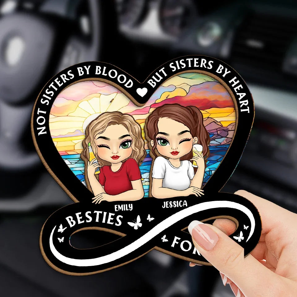 Not Sisters By Blood But Sisters By Heart - Bestie Personalized Custom Car Visor Clip - Gift For Best Friends, BFF, Sisters