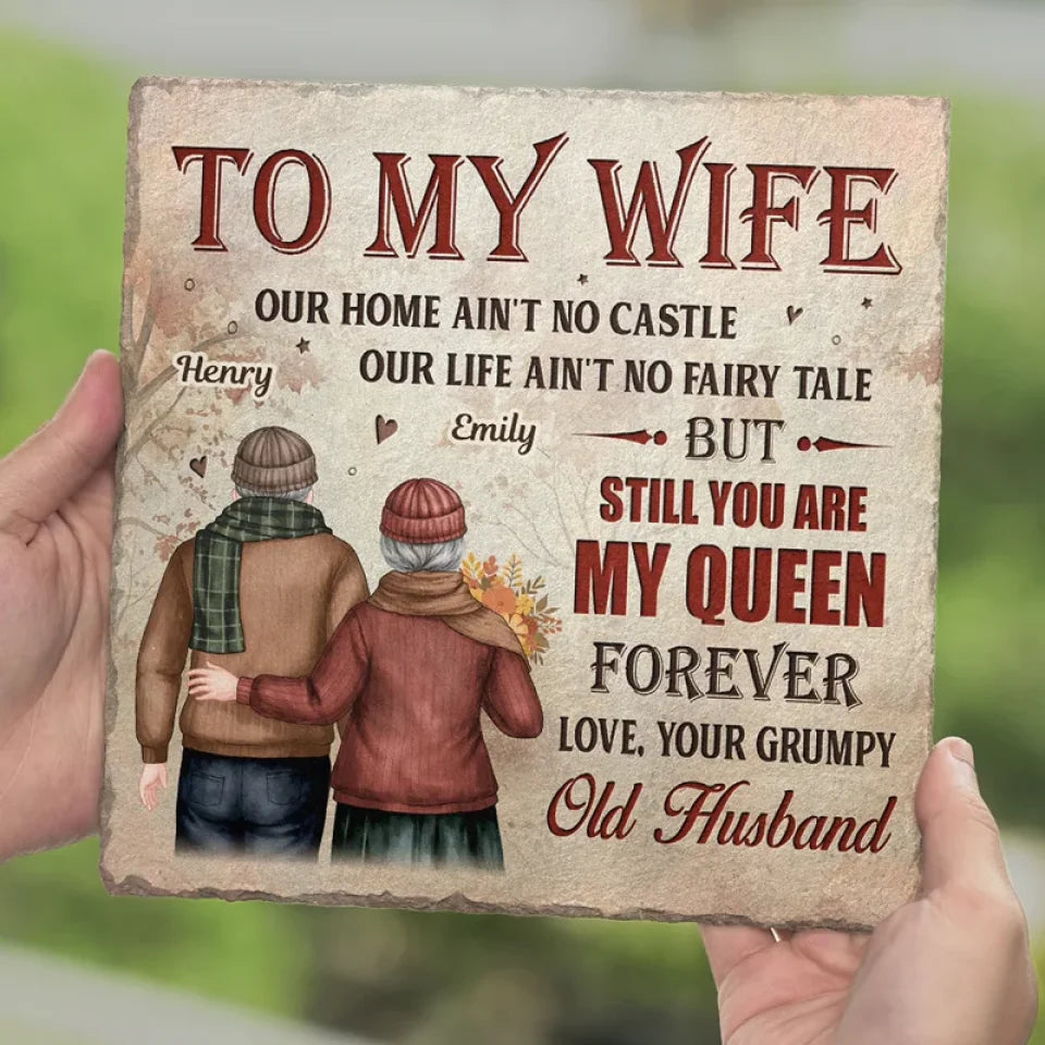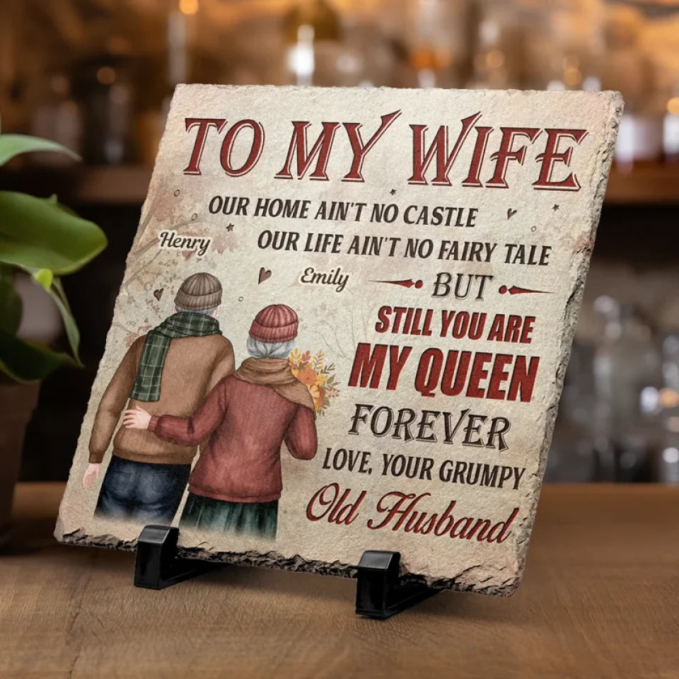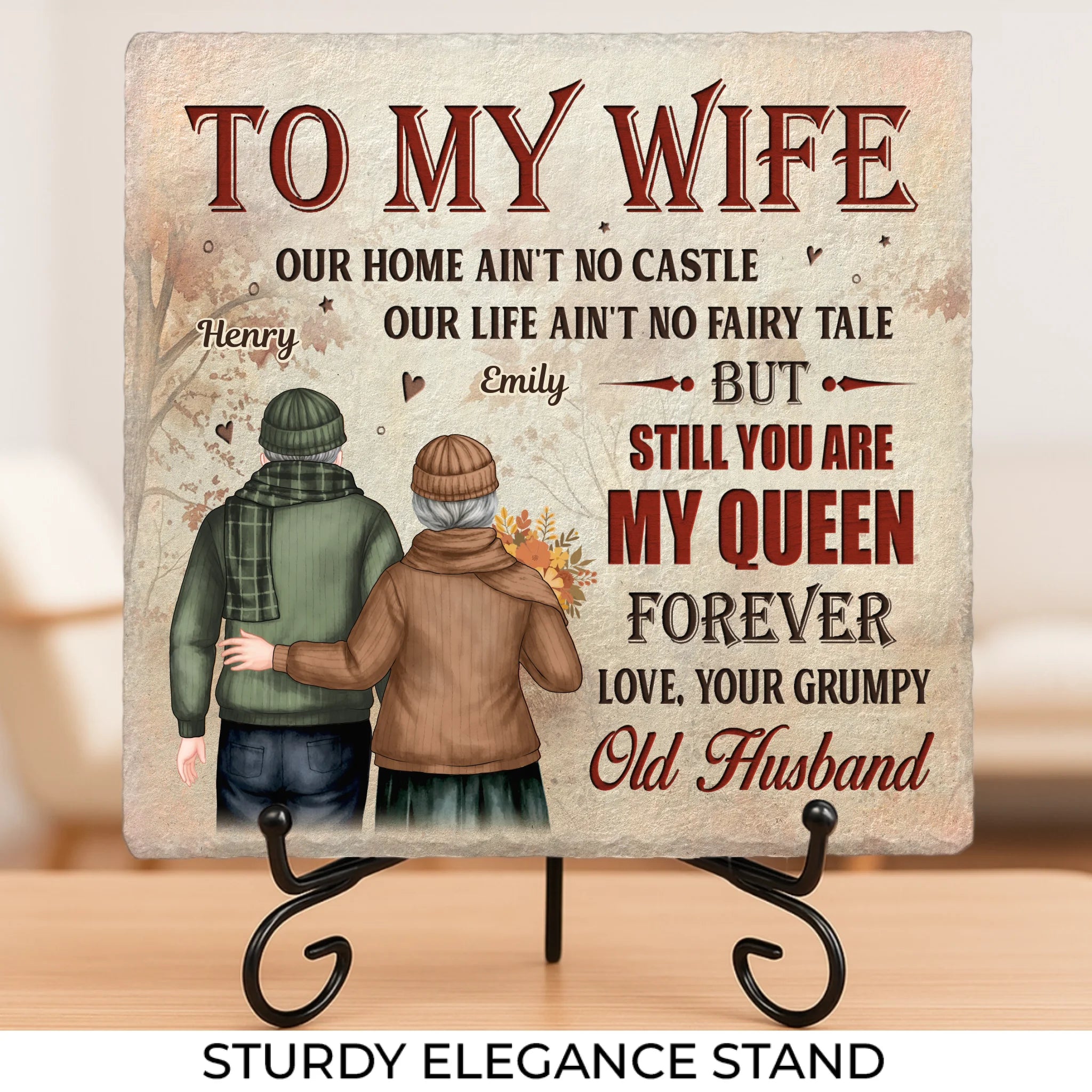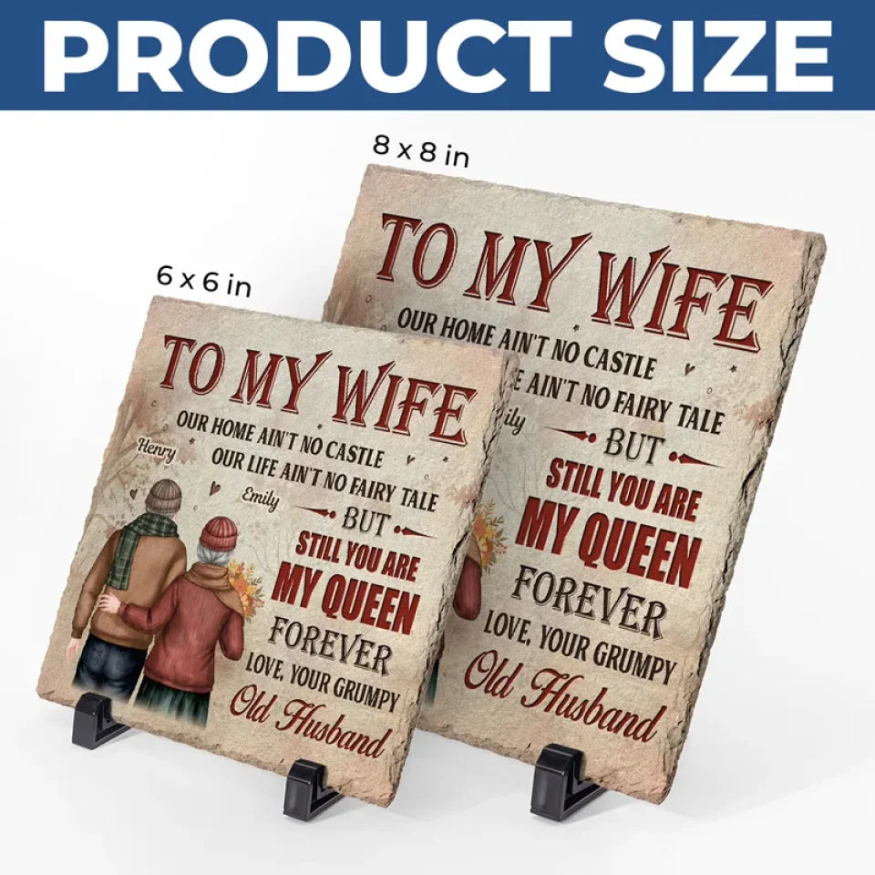 Our Home May Be Small, But Our Love Makes It Grand - Couple Personalized Custom Square Shaped Stone With Stand - Gift For Husband Wife, Anniversary