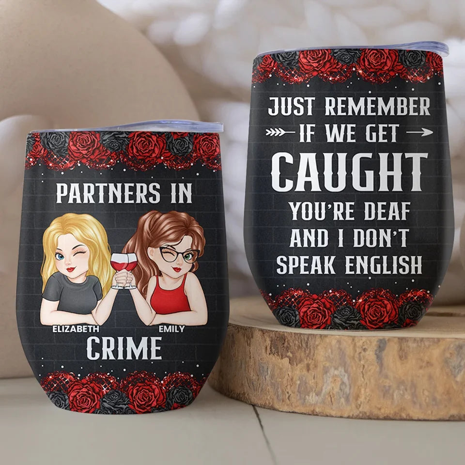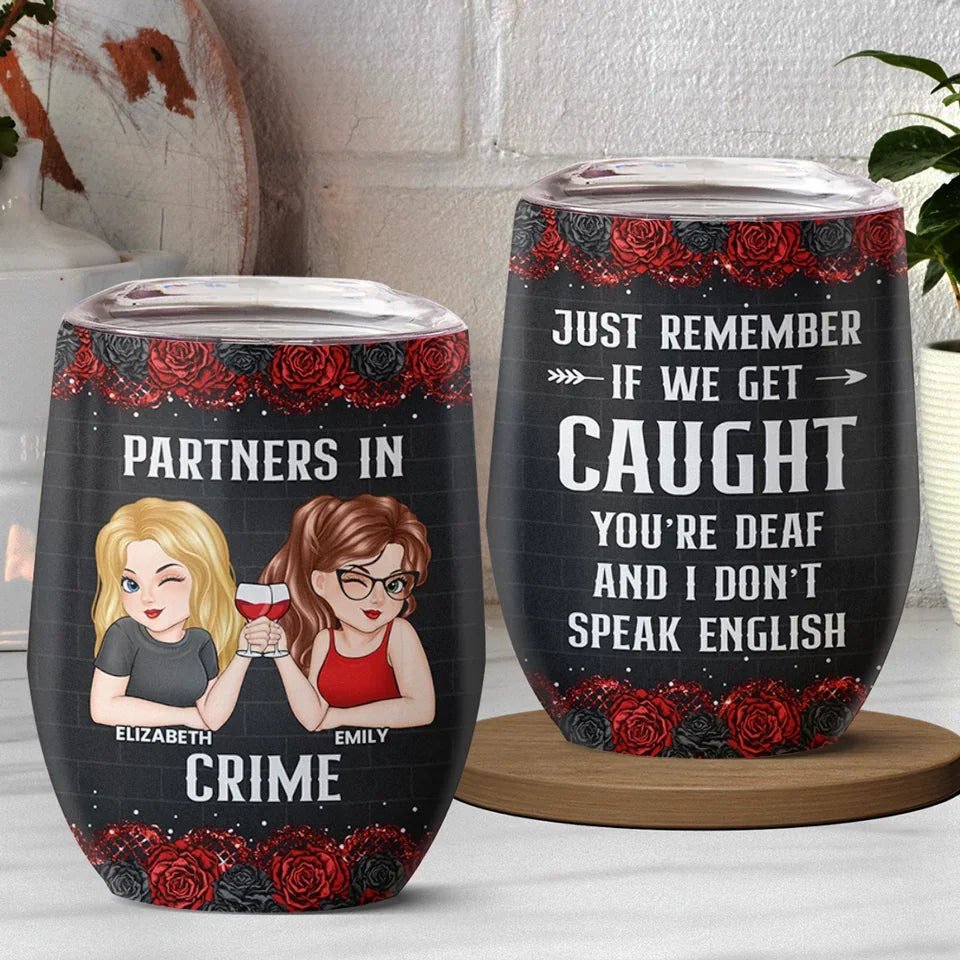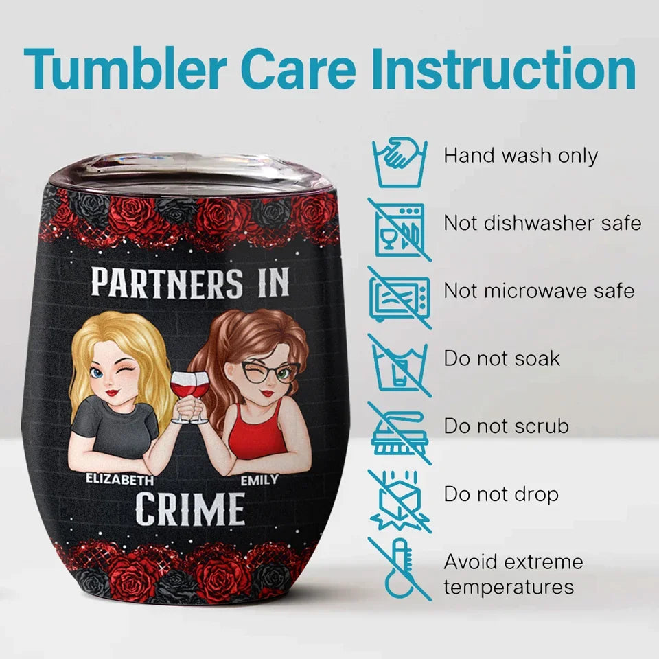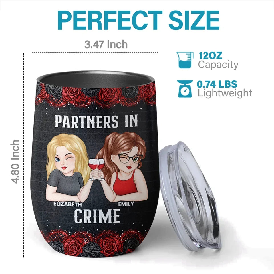 Partners In Crime - Bestie Personalized Custom Wine Tumbler - Christmas Gift For Best Friends, BFF, Sisters