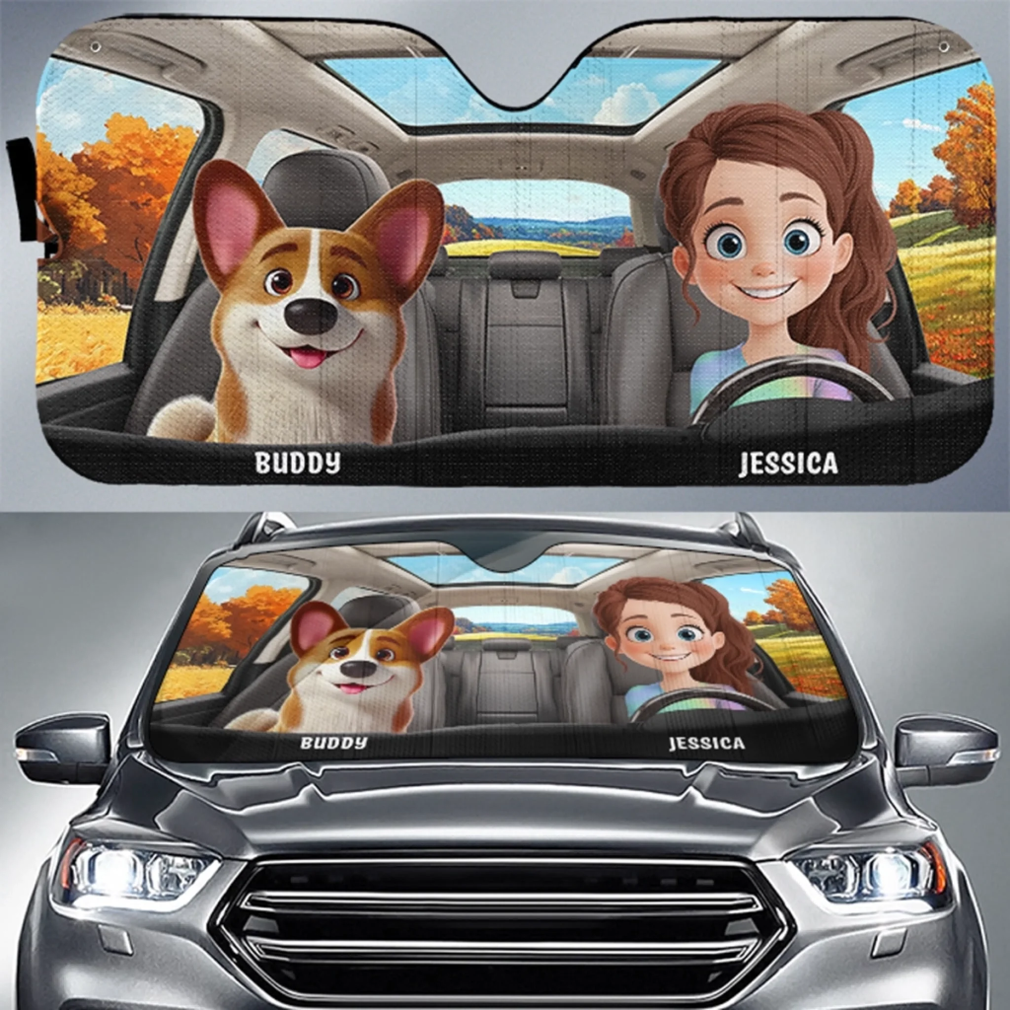 Pawsome Road Trips Ahead - Dog & Cat Personalized Custom Auto Windshield Sunshade, Car Window Protector - Gift For Pet Owners, Pet Lovers