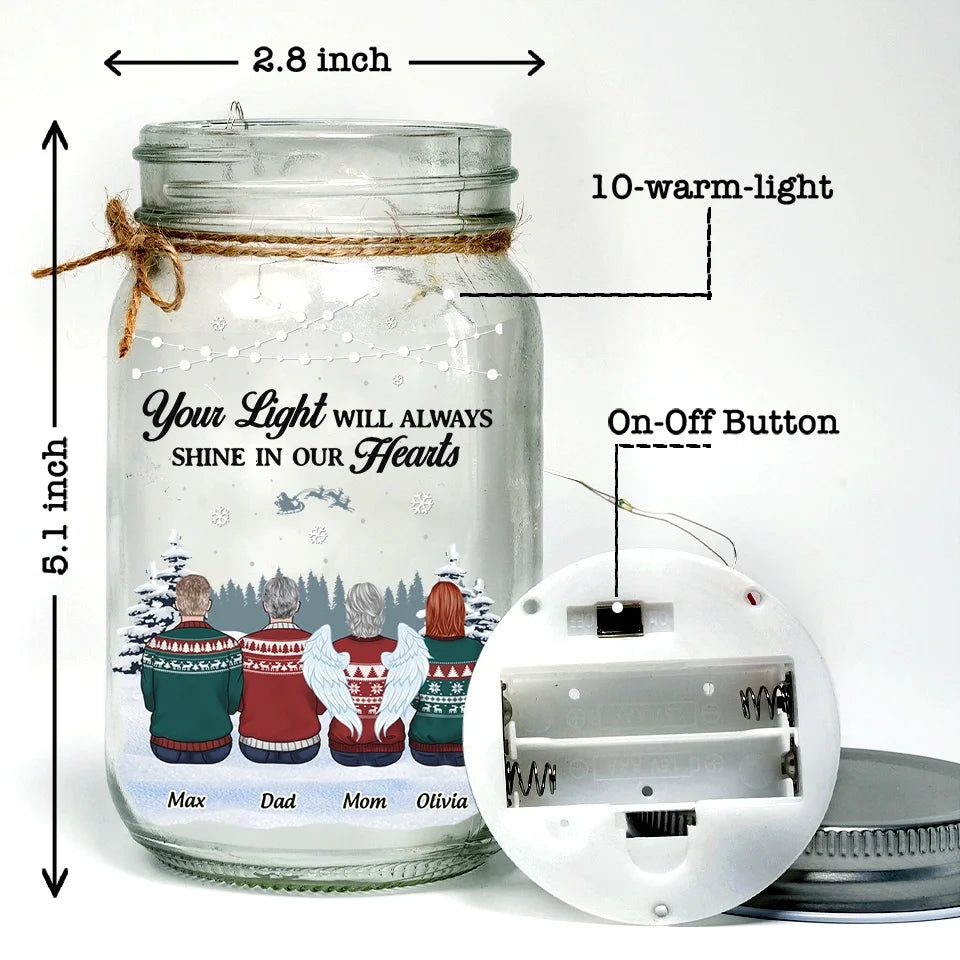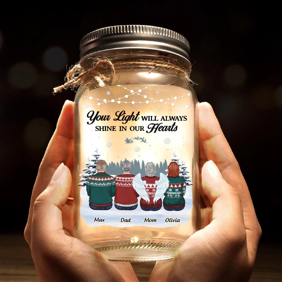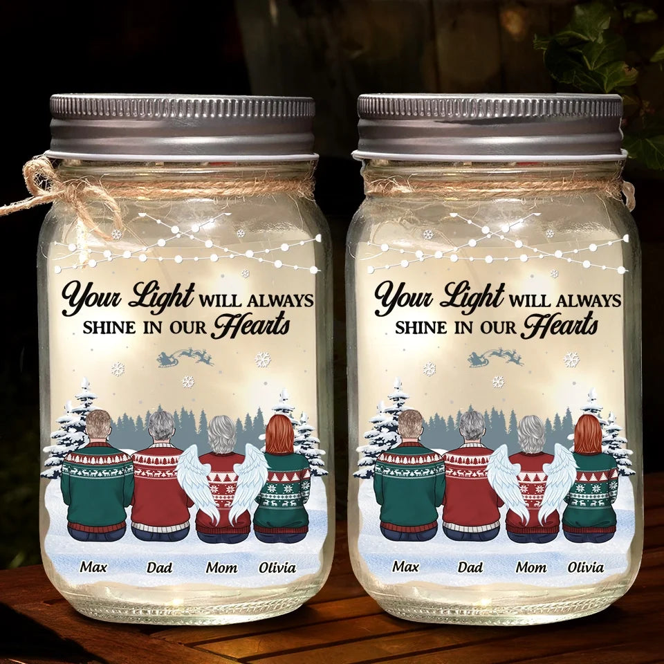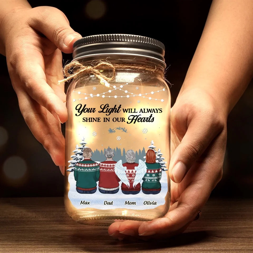 Remembering You With Love And Gratitude - Memorial Personalized Custom Mason Jar Light - Sympathy Gift, Christmas Gift For Family Members