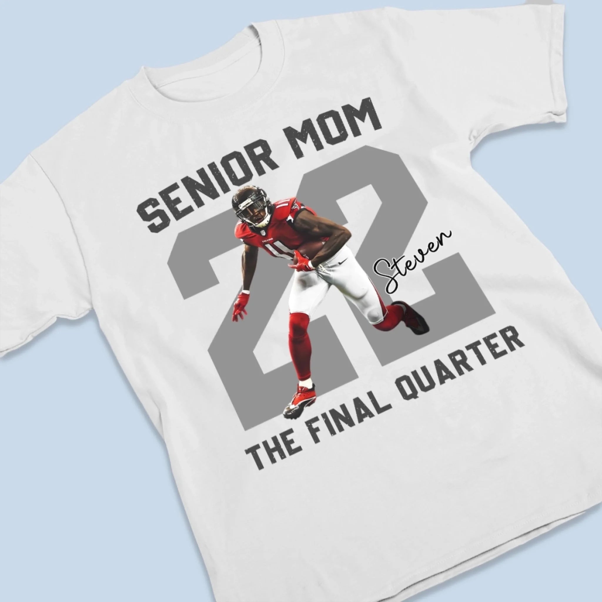Upload Photo Football Senior Mom T-shirt, Hoodie - Personalized Birthday Football Gifts For Mom, American Football Players, Football Lovers, NFL Fans - Final Quarter Senior Mom