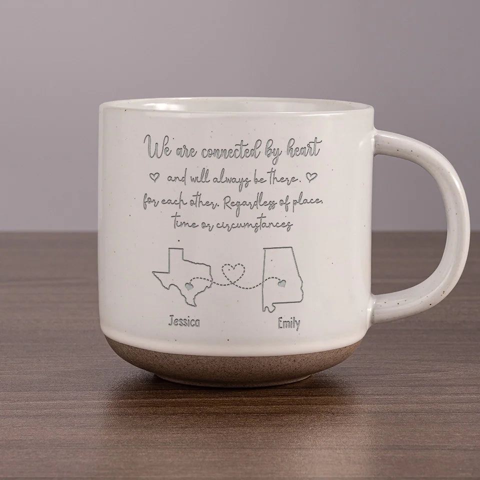 We Are Connected By Heart - Bestie Personalized Custom Pottery Mug - Gift For Best Friends, BFF, Sisters