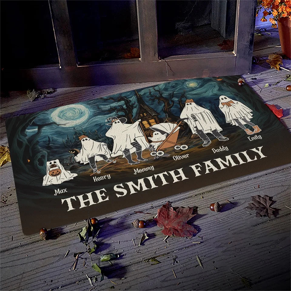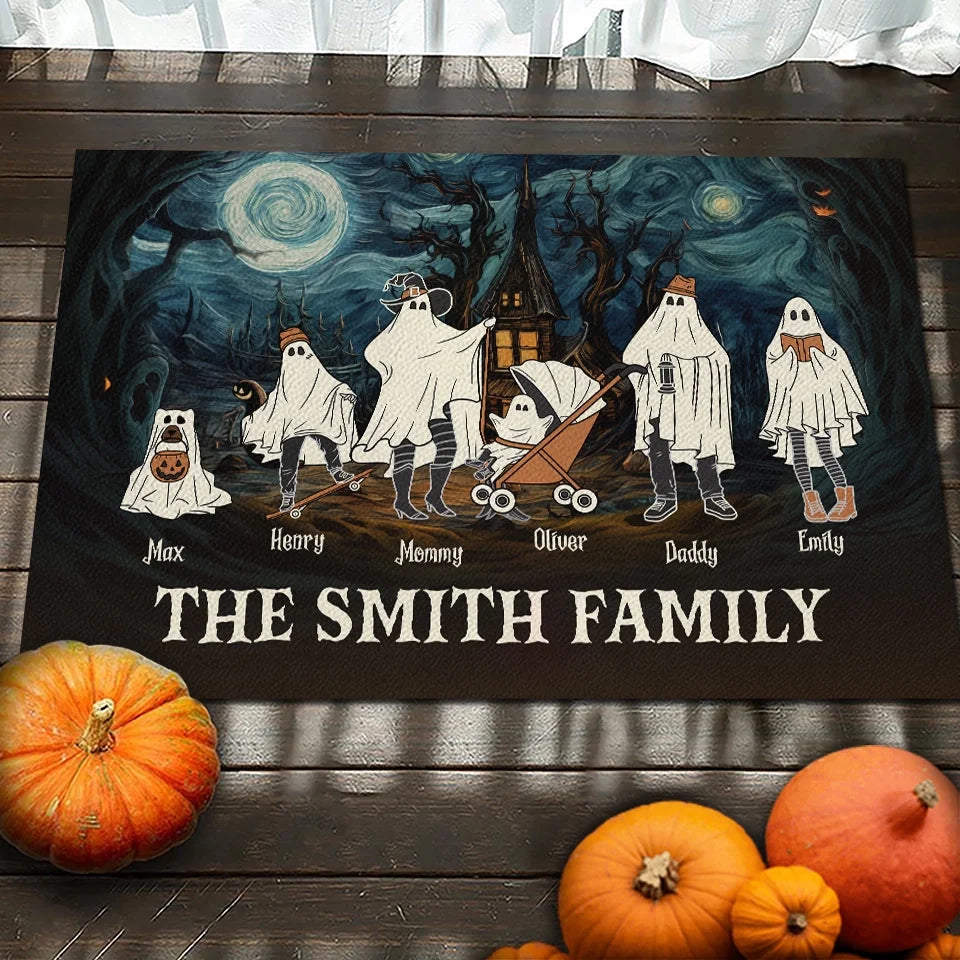 We're Here For The Boos - Family Personalized Custom Home Decor Decorative Mat - Halloween Gift For Family Members