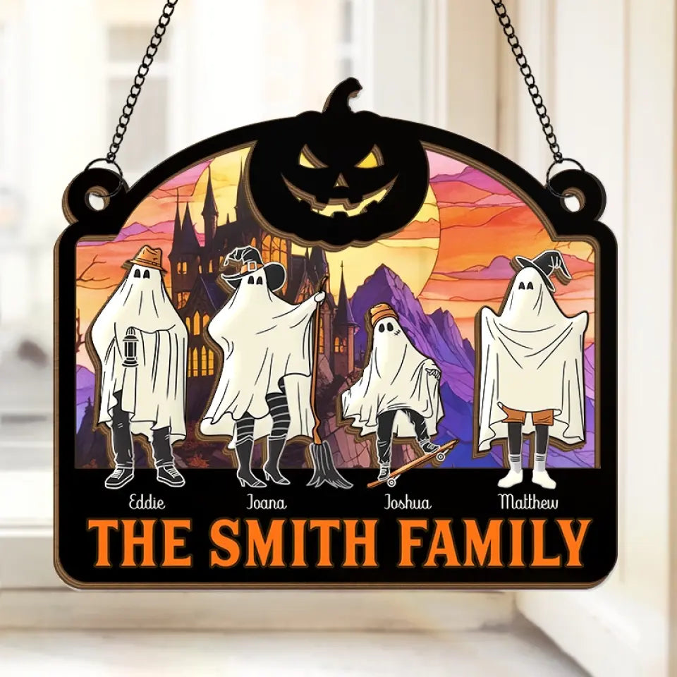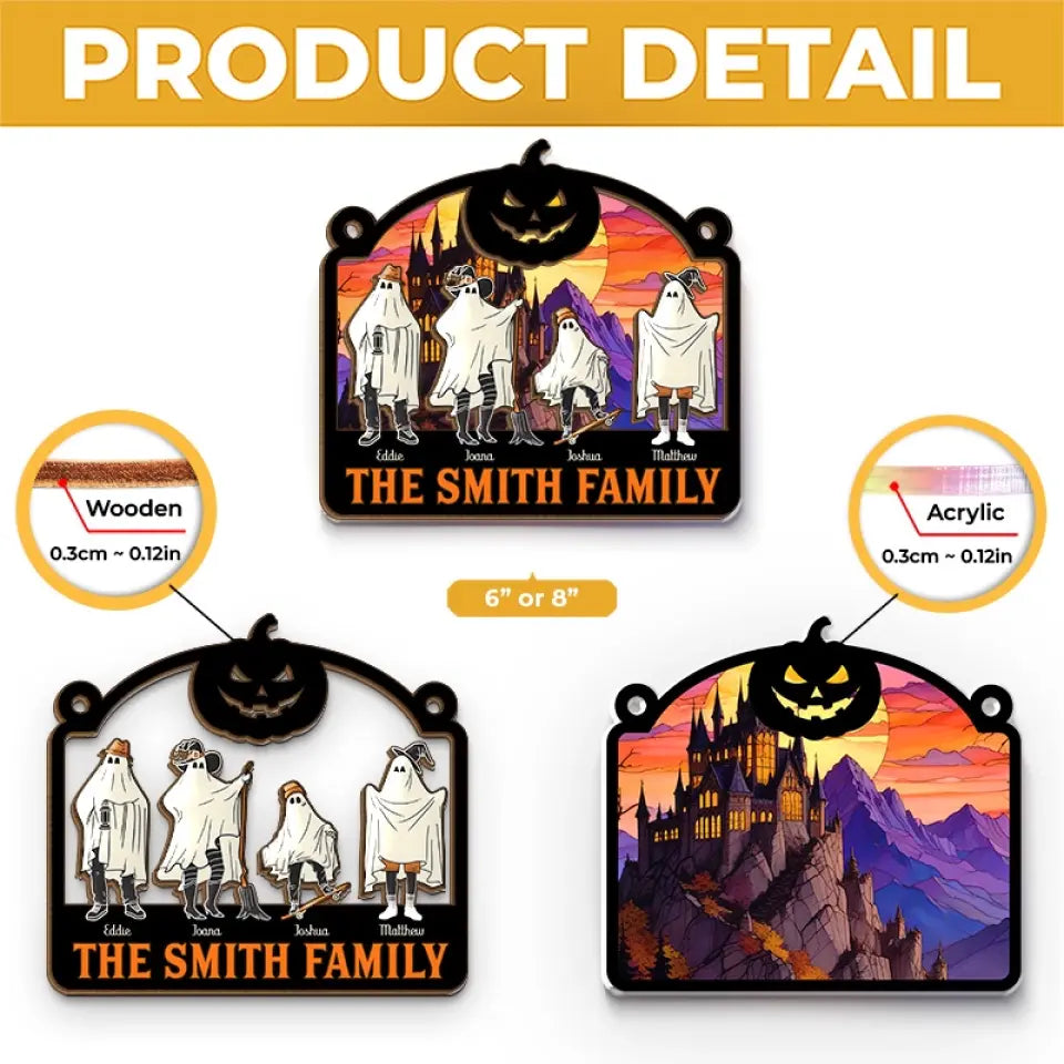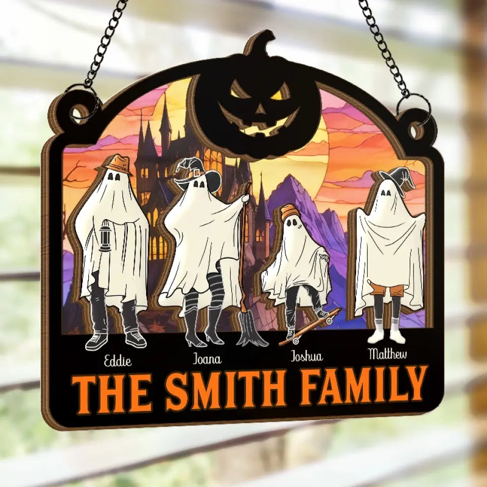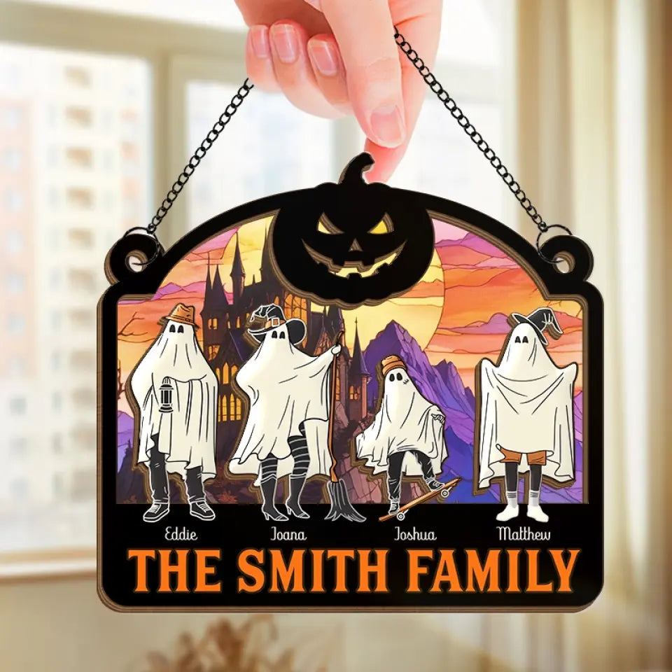 We're Hiding In The Walls, Creeping Out At Midnight - Family Personalized Window Hanging Suncatcher - Halloween Gift For Family Members