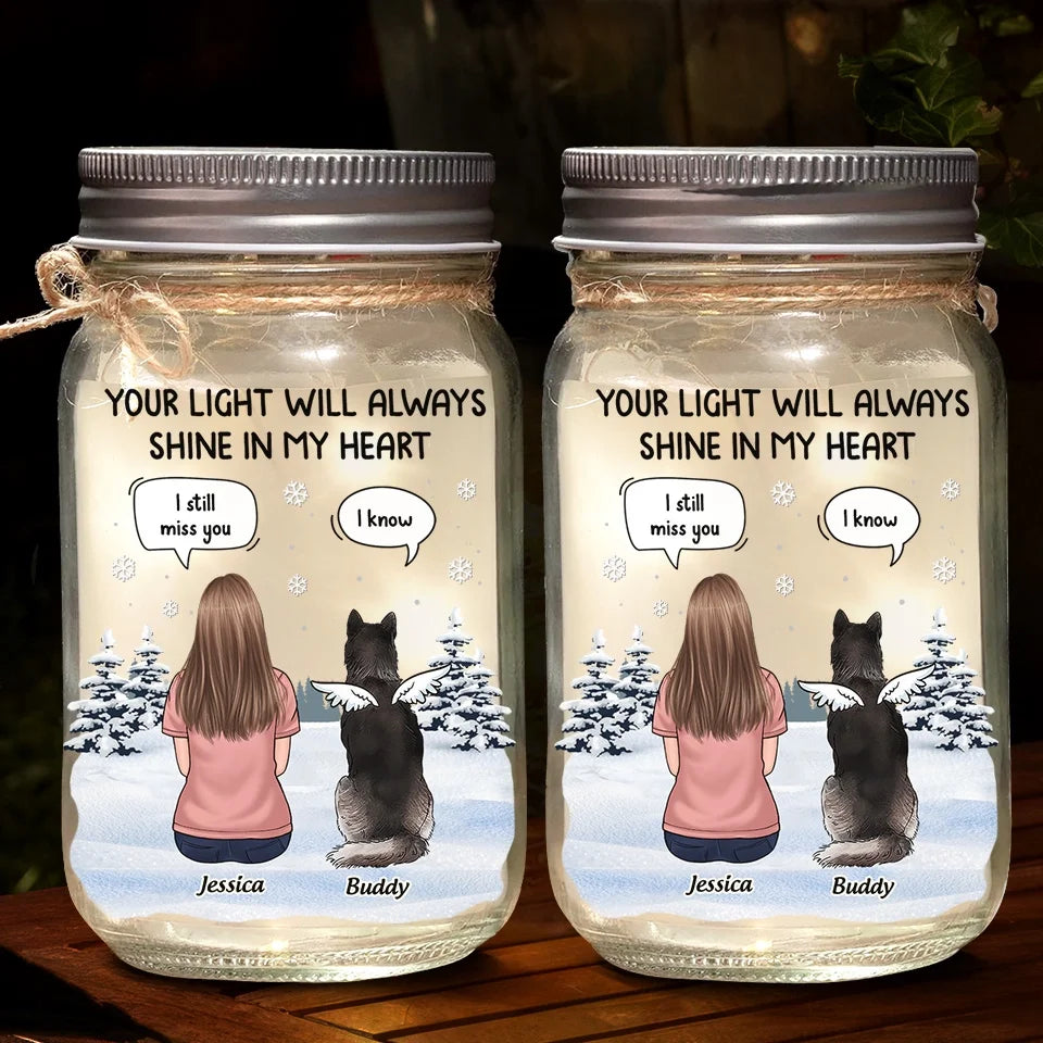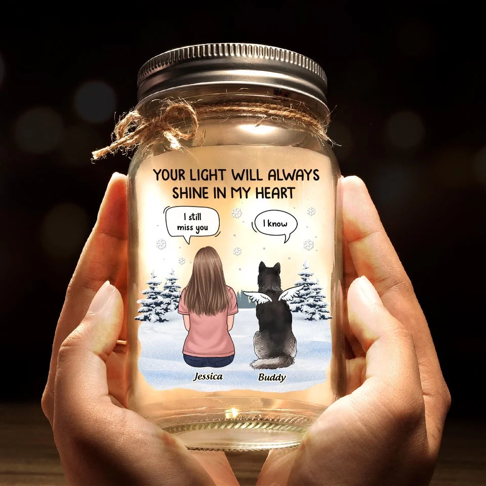 Your Purrs Echo In My Memories - Memorial Personalized Custom Mason Jar Light - Sympathy Gift For Family Members, Pet Owners, Pet Lovers