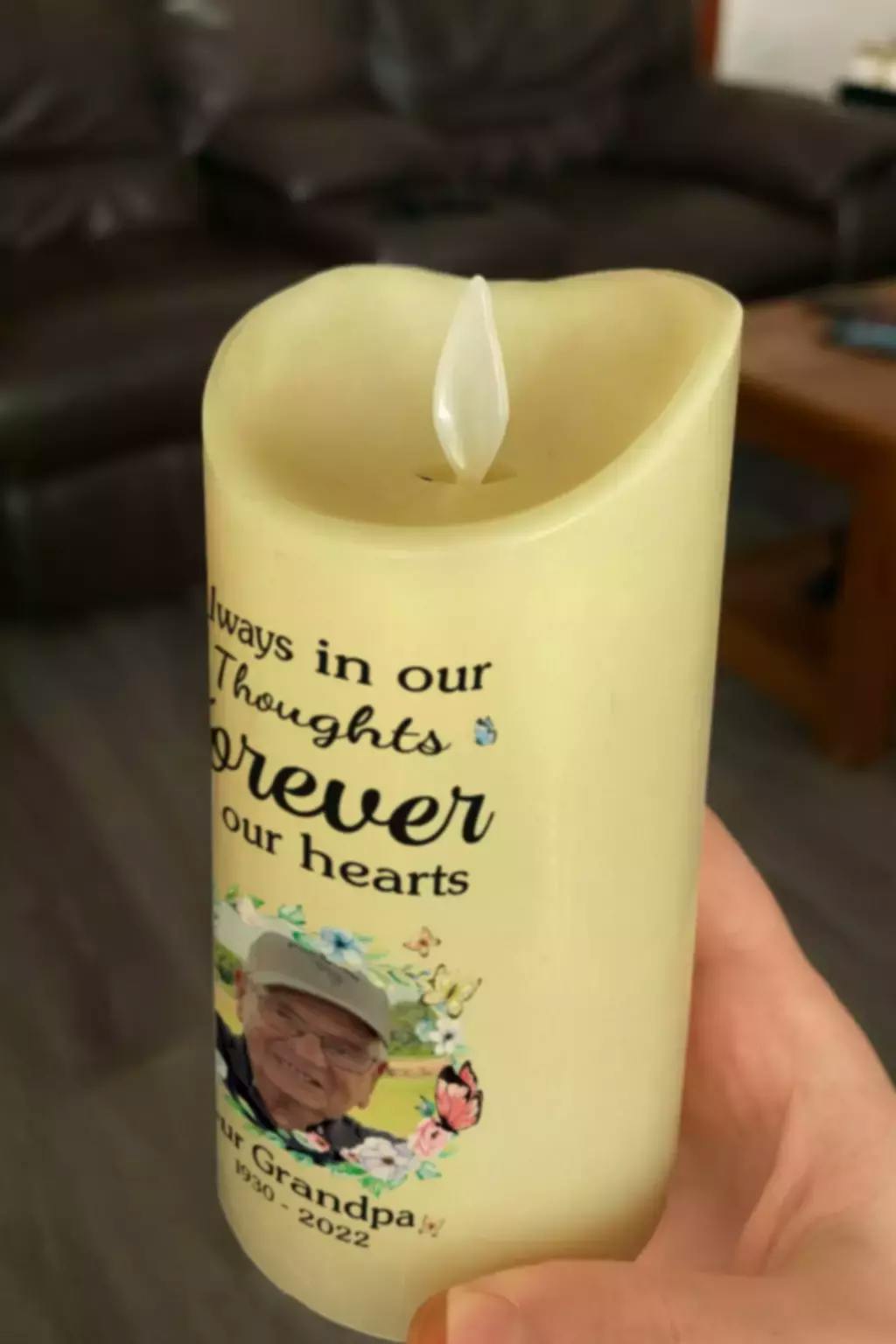 I can’t stop staring. The gentle glow paired with our photo and heartfelt message lets me feel connected to her, even when she’s gone