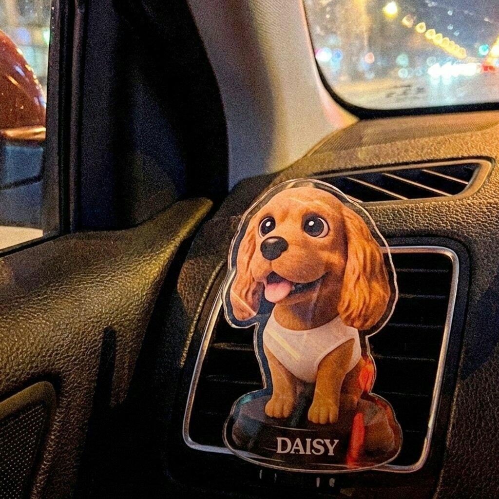 The photo looks very clear and the acrylic has a nice shine. I love seeing my dog with me on every drive.