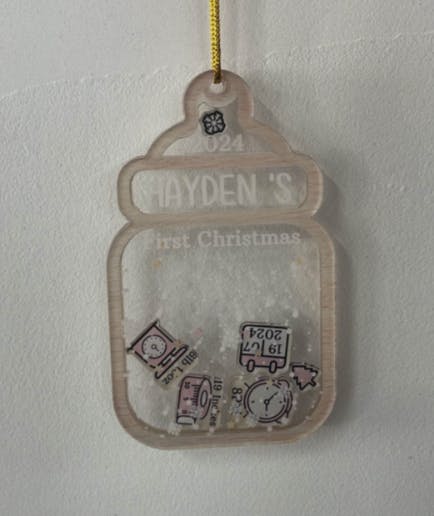 The 3 parts of the product are glued together with a strong glue. 3 Layered Christmas Shaker Ornament is covered with high quality and vivid color printing.