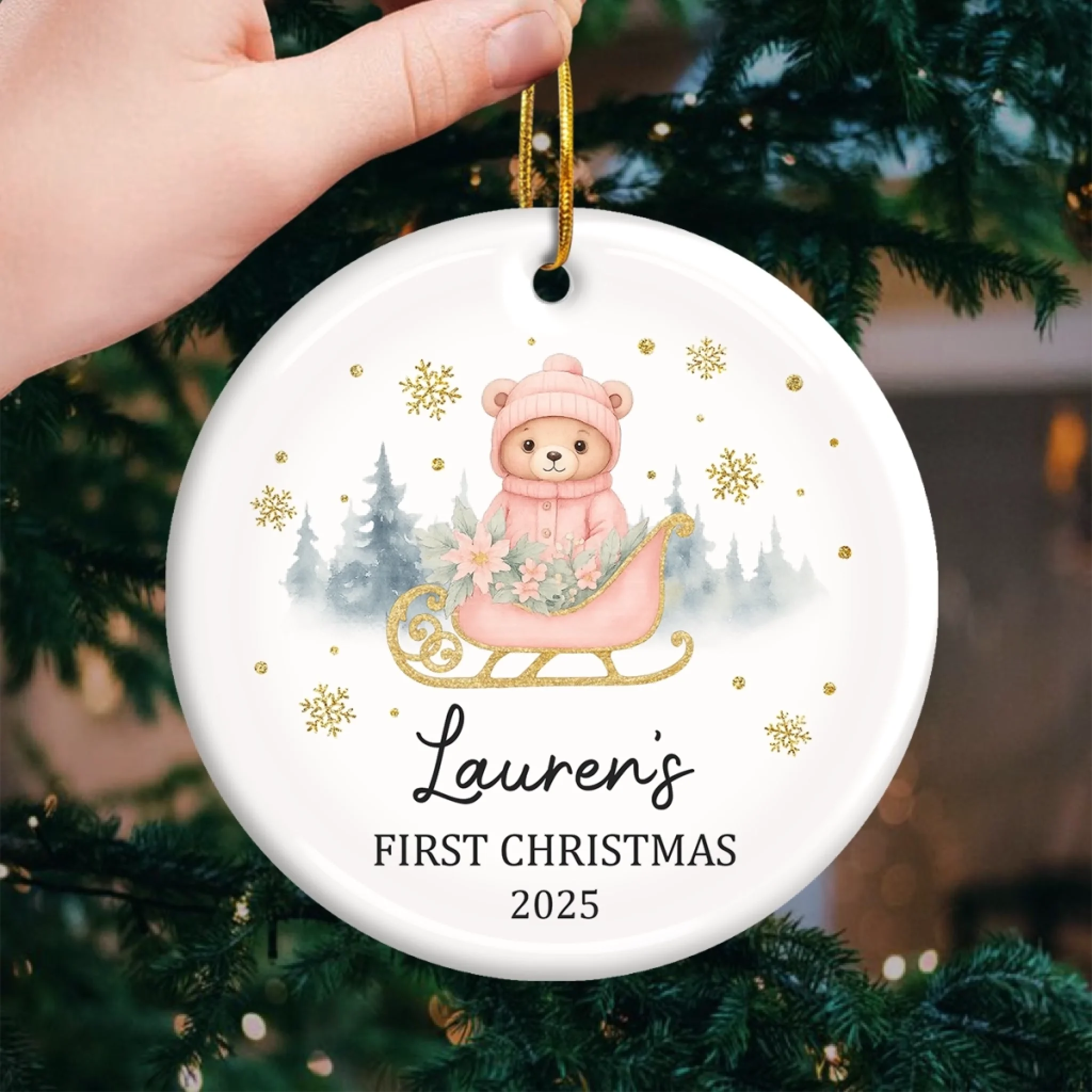 Custom Baby First Christmas Ceramic Ornament - Personalized Christmas Baby Shower, Gender Reveal Gifts For New Moms, New Dads, New Parents - Little Blessing