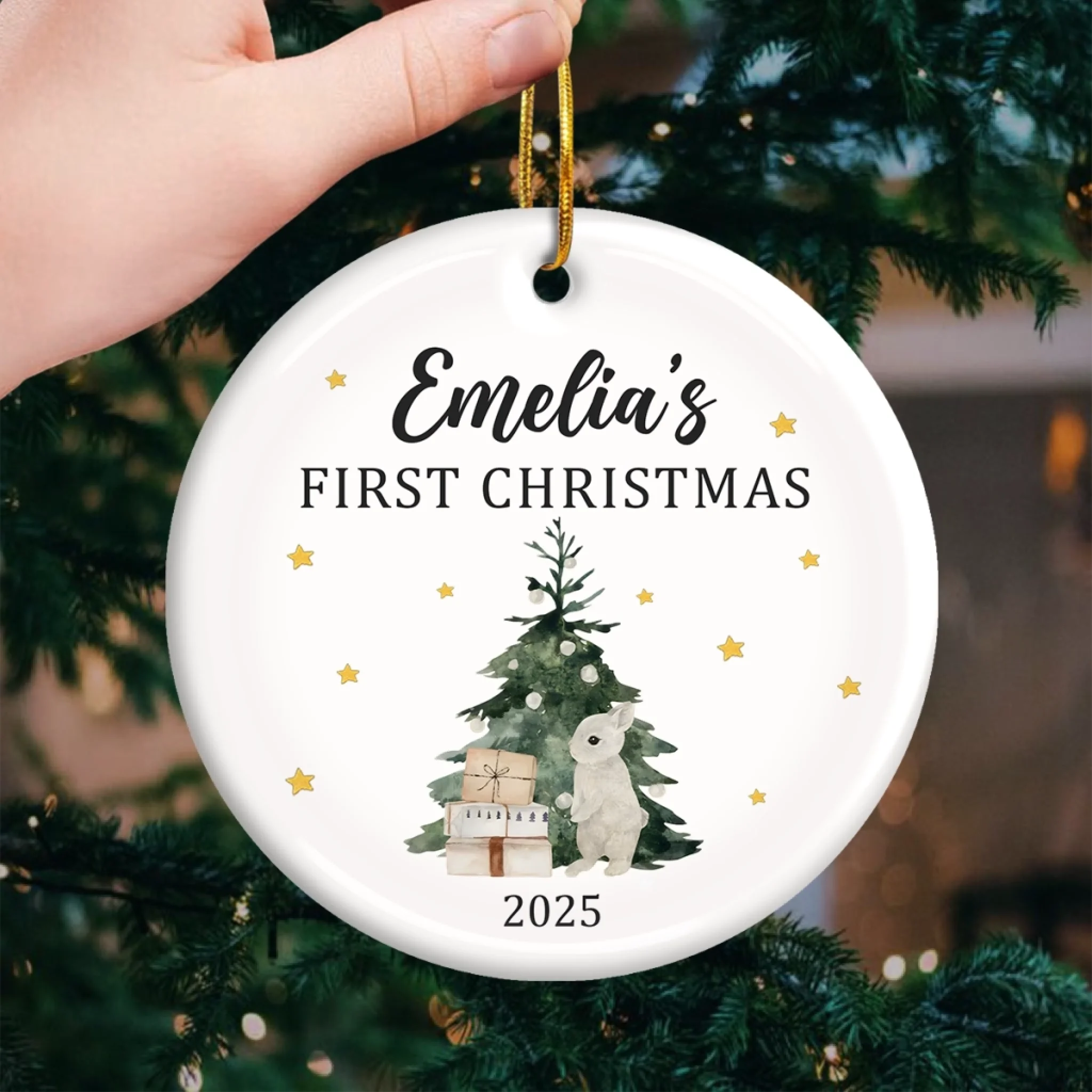 Custom Ceramic First Christmas Ornament - Personalized Christmas Baby Shower, Gifts For New Moms, New Dads, New Parents - All Is Bright With You