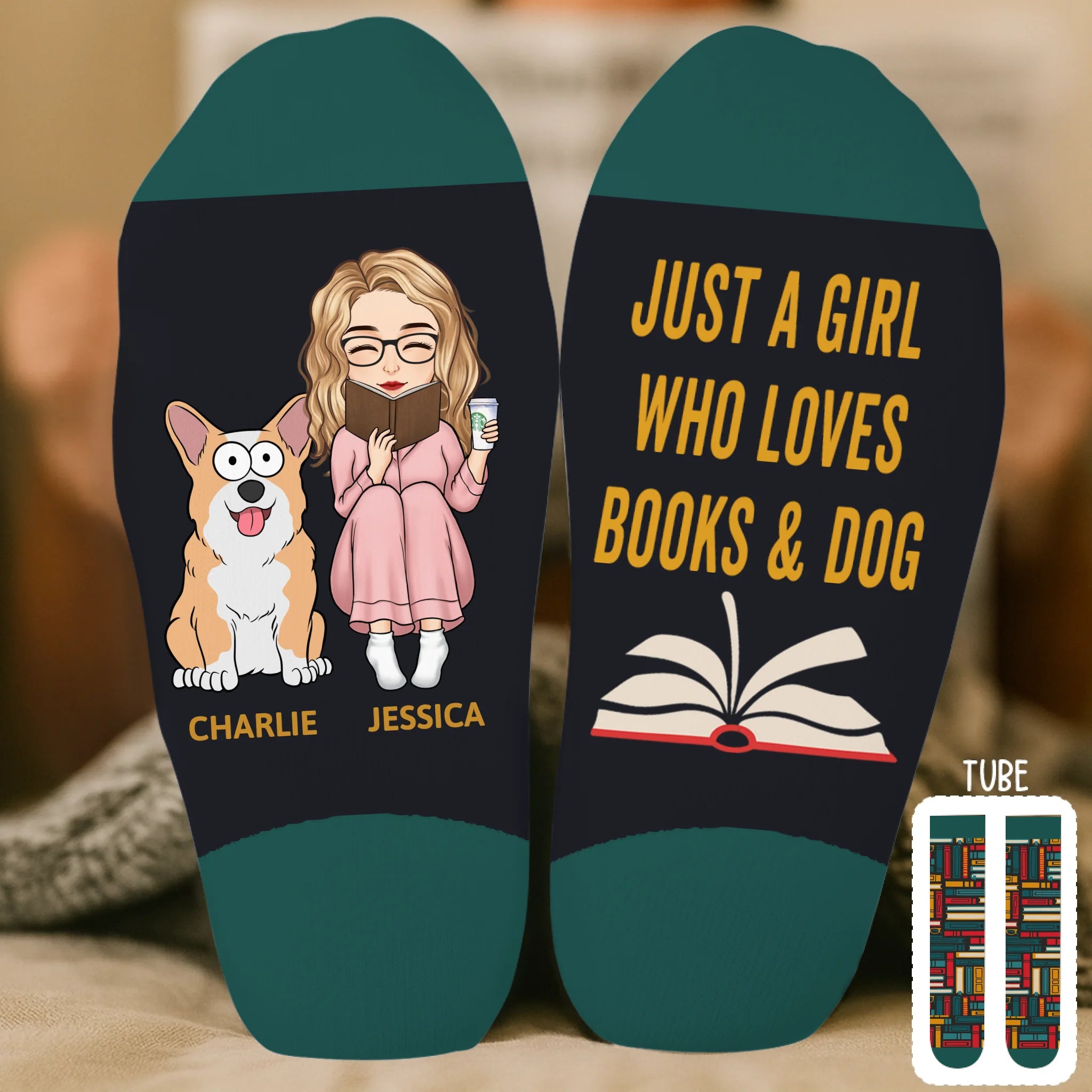 Custom Crew Socks - Personalized Bookish Gifts For Book Lovers, Bookworms, Dog Dad And Mom - Literary Pup Lover
