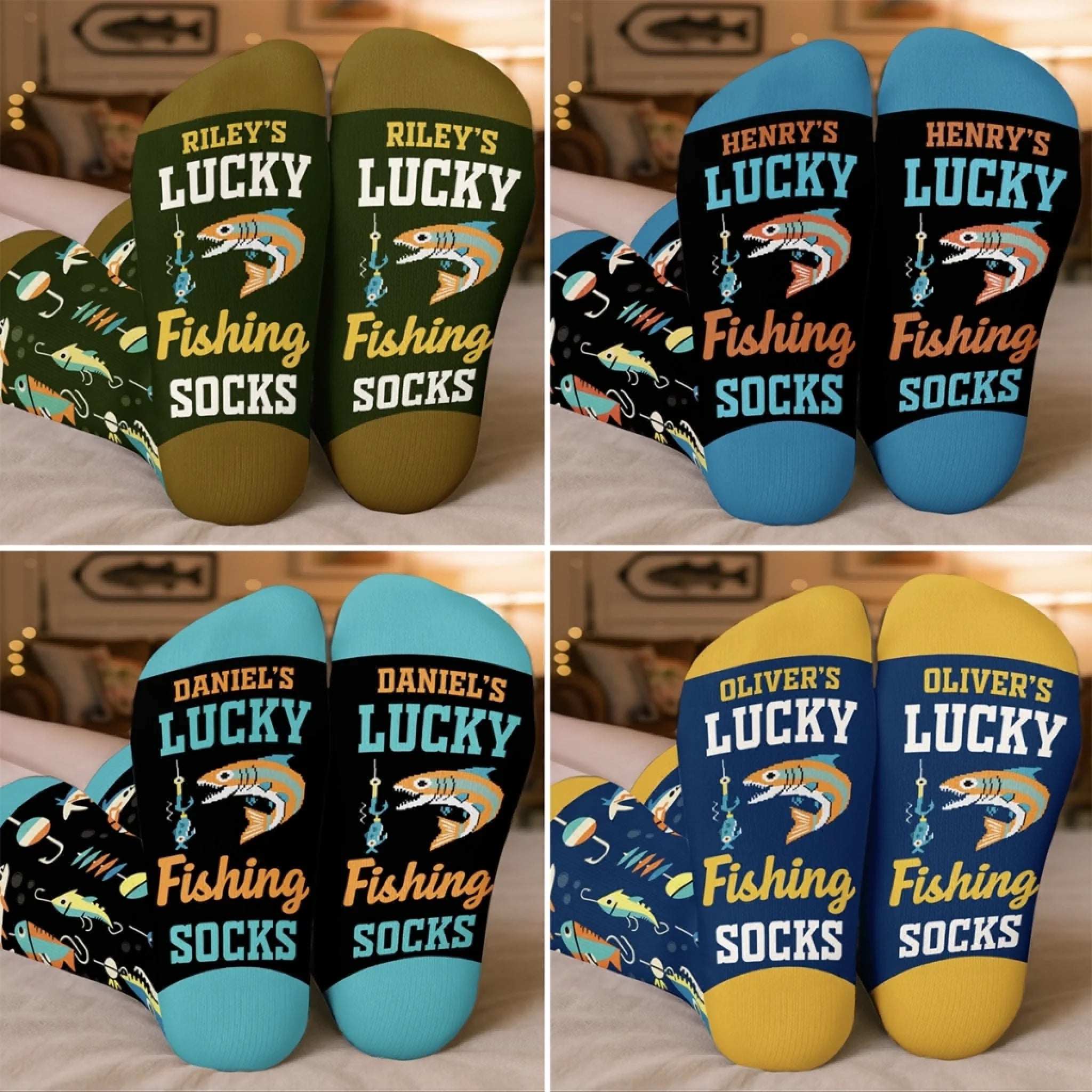 Custom Crew Socks - Personalized Christmas Birthday Fishing Gifts For Fisherman - Walk Like A Lucky Angler