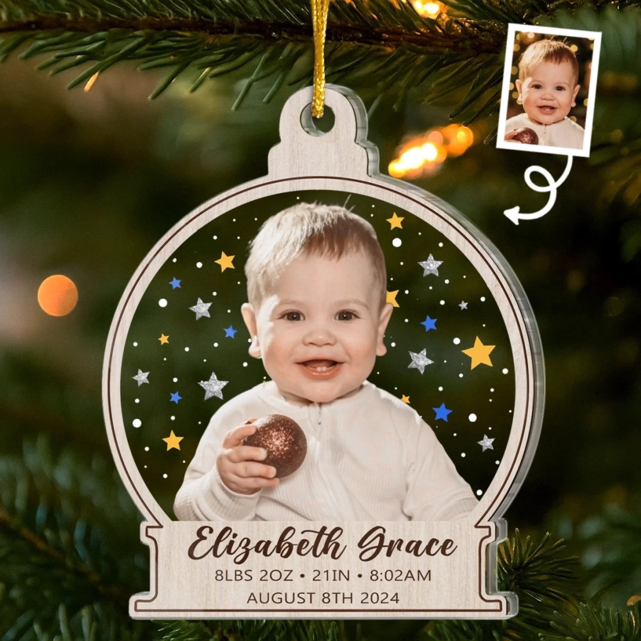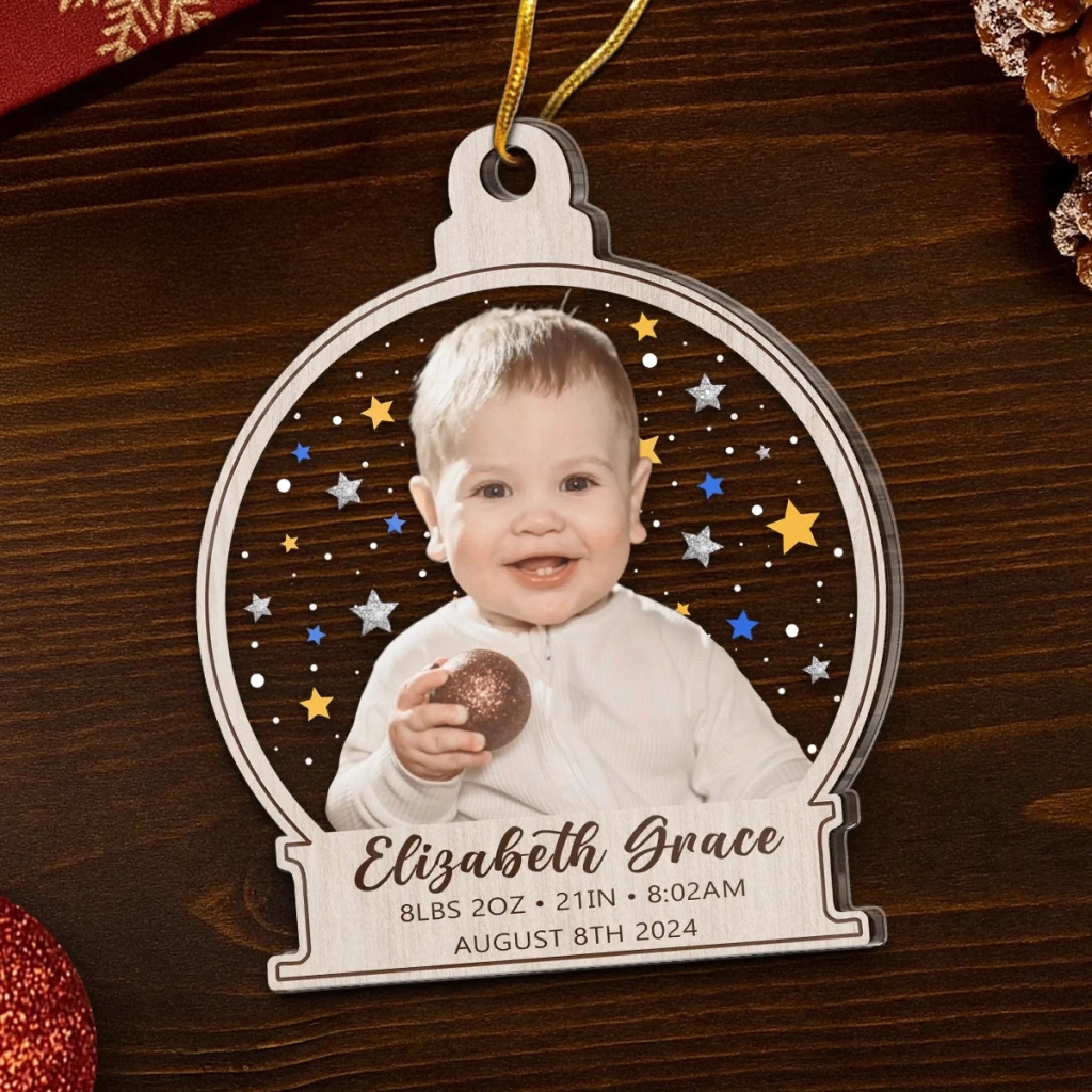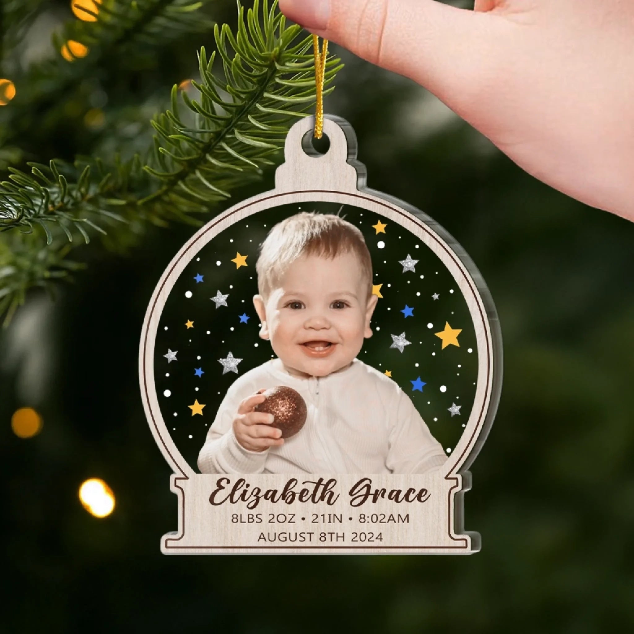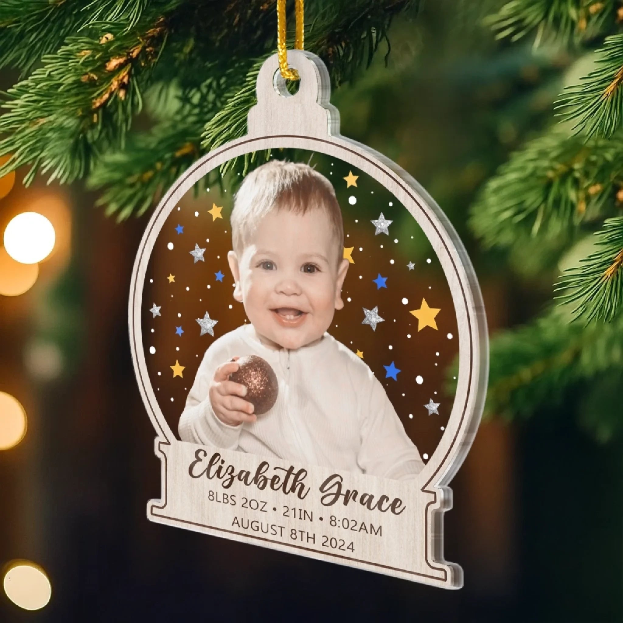 Custom First Christmas Acrylic Ornament - Personalized Christmas Baby Shower, Gender Reveal Gifts For New Moms, New Dads, New Parents - Grateful For This Miracle