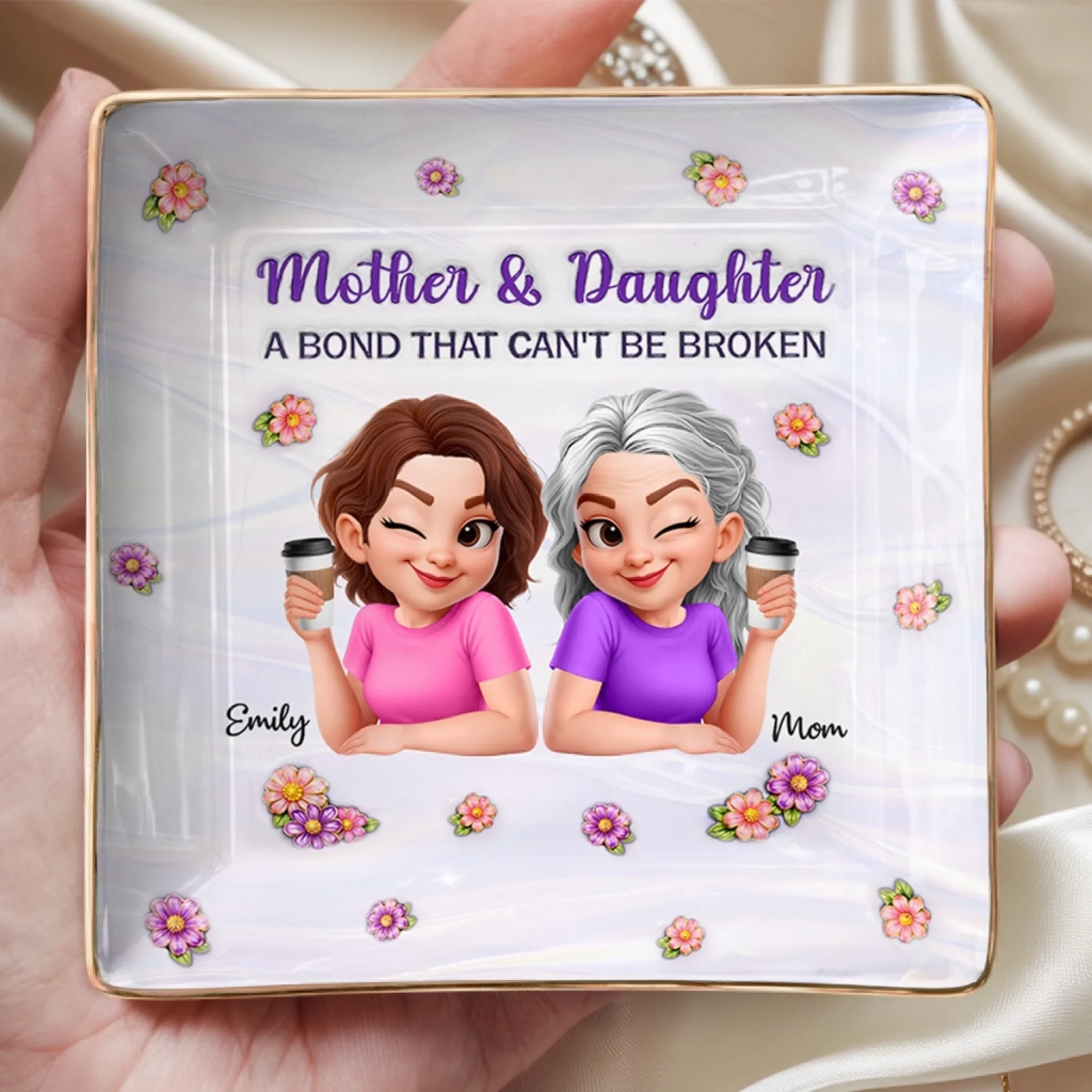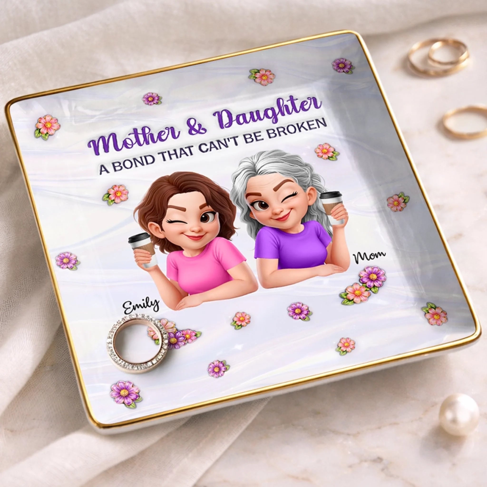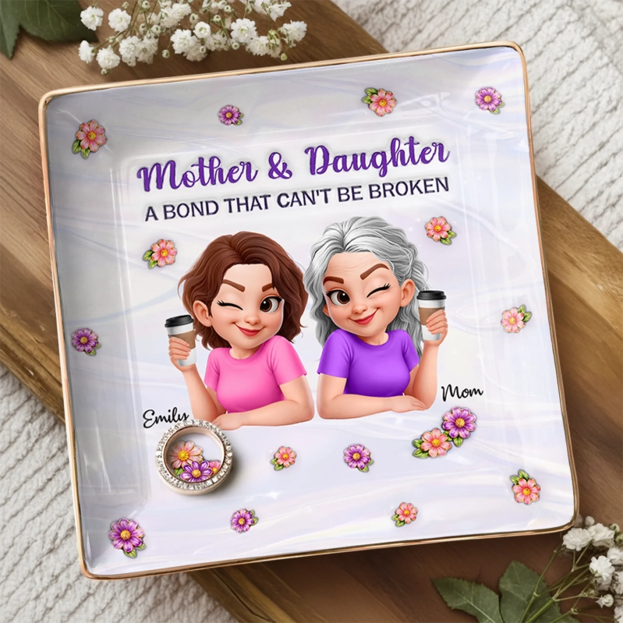 Custom Full-Print Jewelry Dish - Personalized Mother's Day Birthday Gifts For Mom, Daughter - Like Mother, Like Daughter
