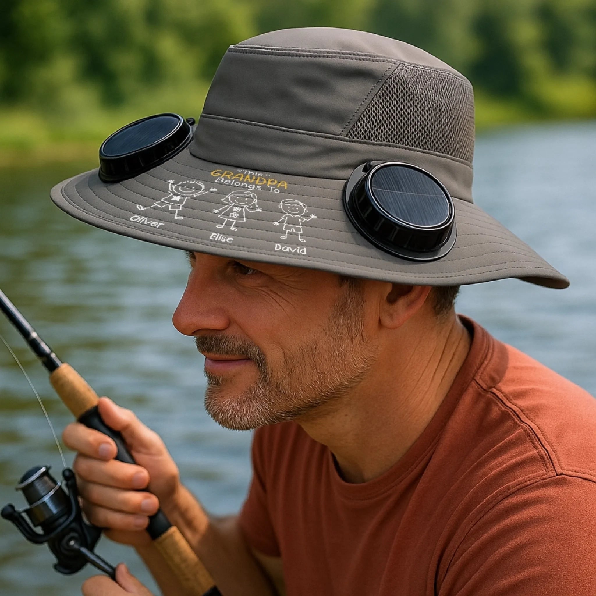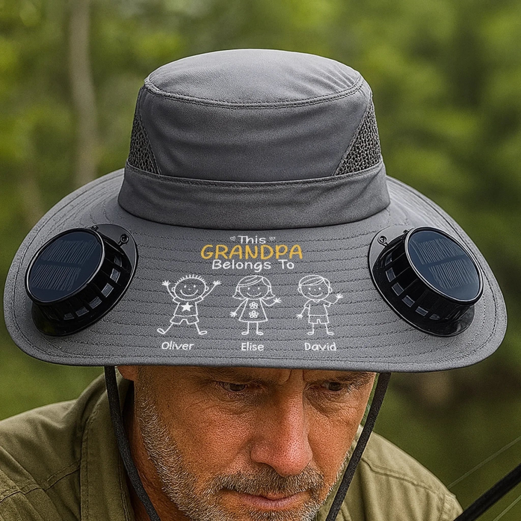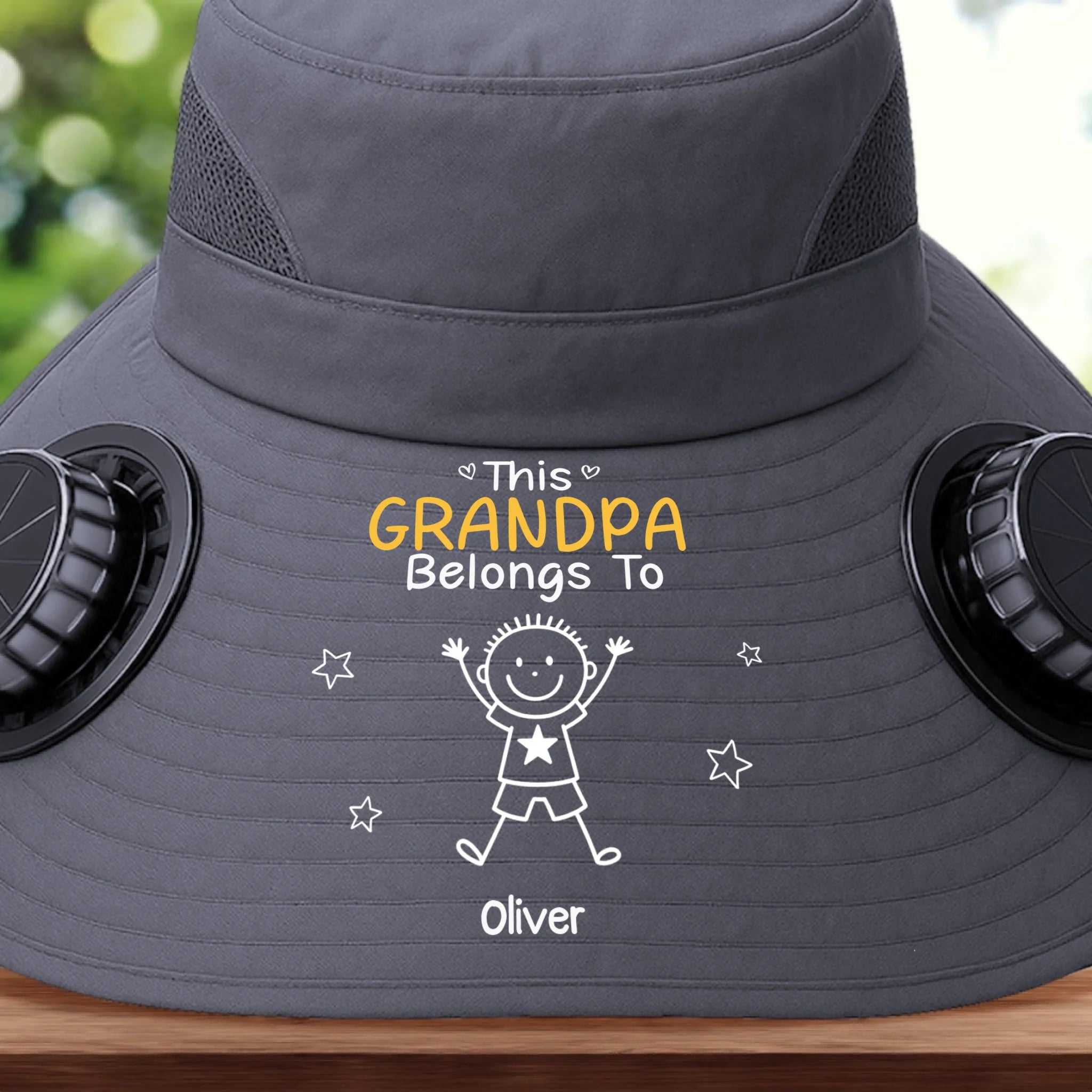 Custom Hat With Fans Solar Power - Personalized Birthday Fishing Gifts For Fisherman, Dad, Grandpa - Grandpa Belongs To Kids