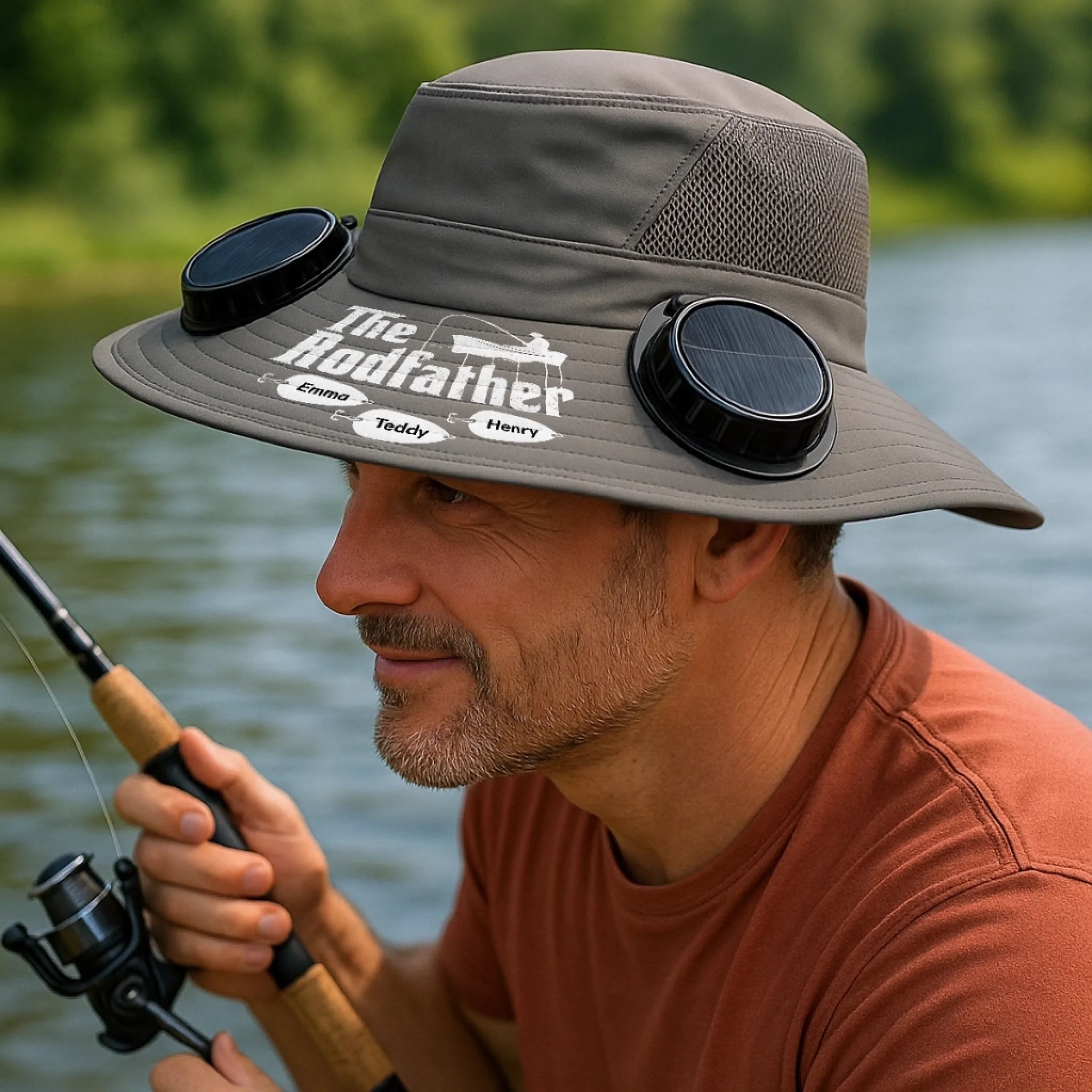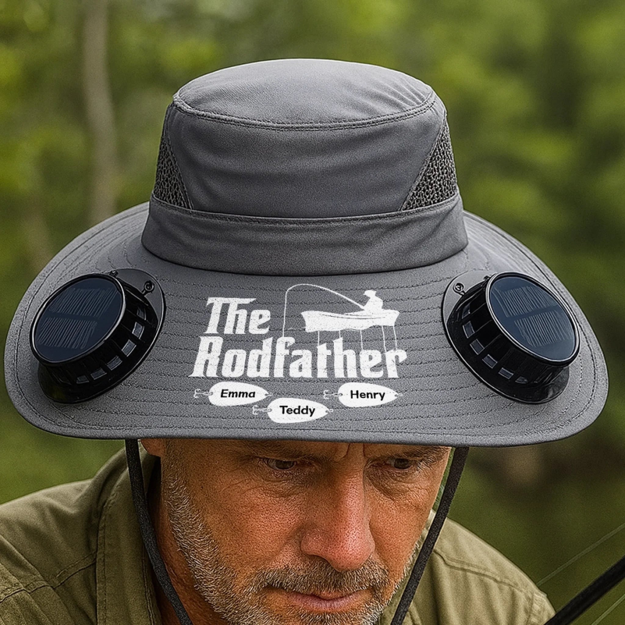 Custom Hat With Fans Solar Power - Personalized Birthday Fishing Gifts For Fisherman, Dad, Grandpa - The Rodfather
