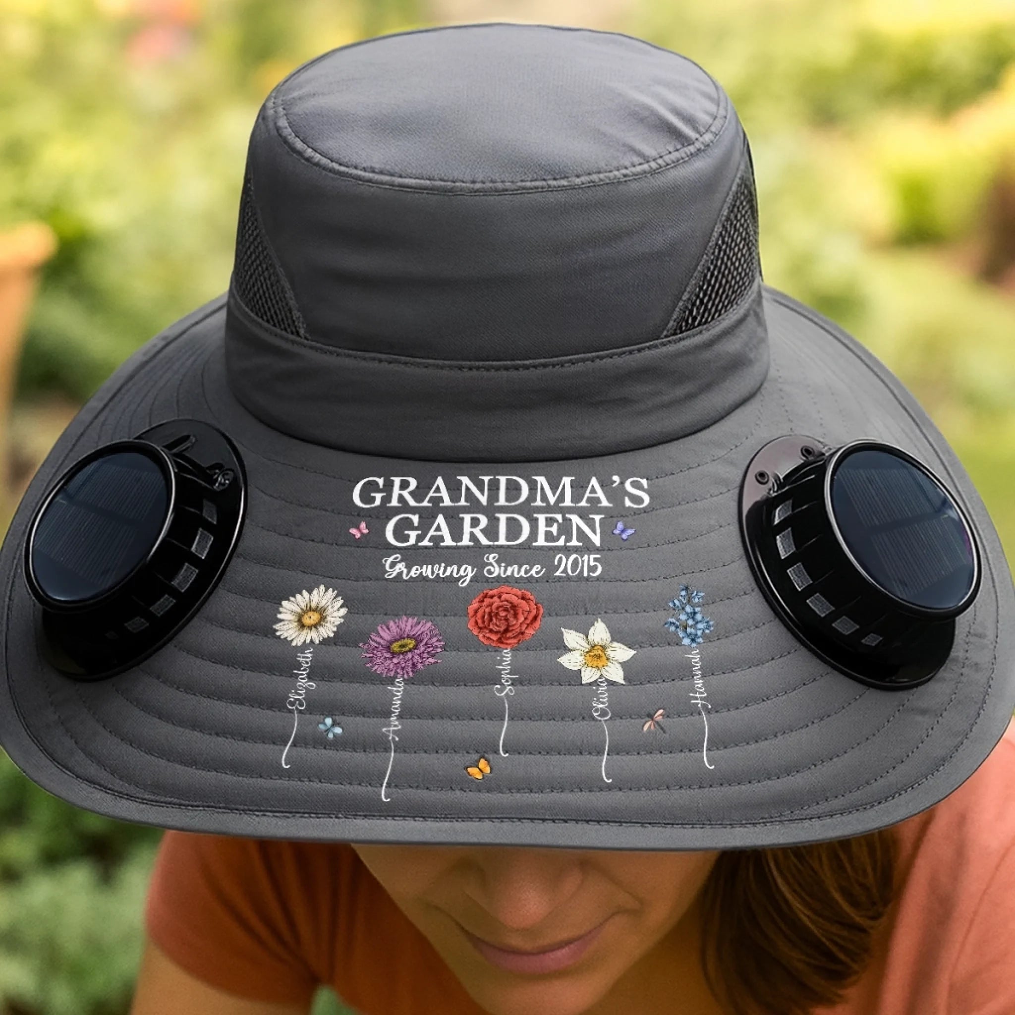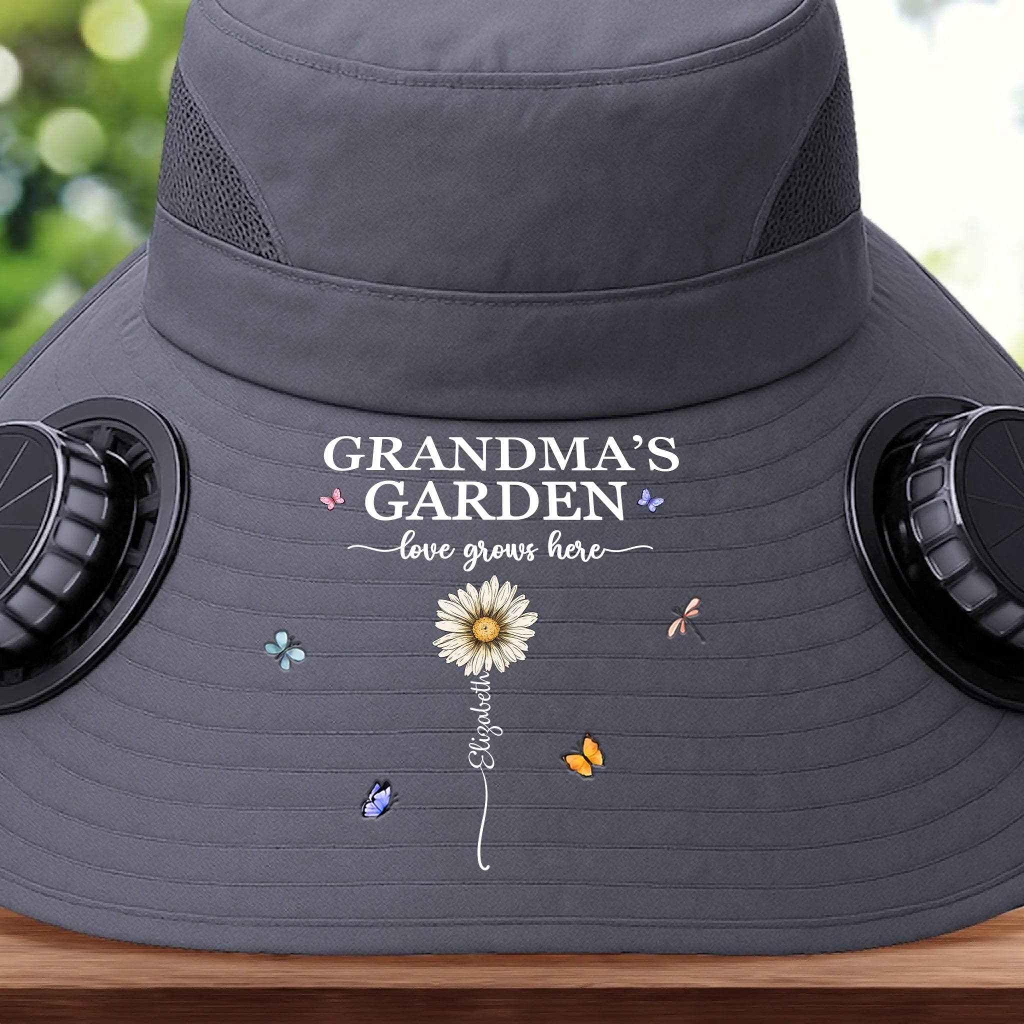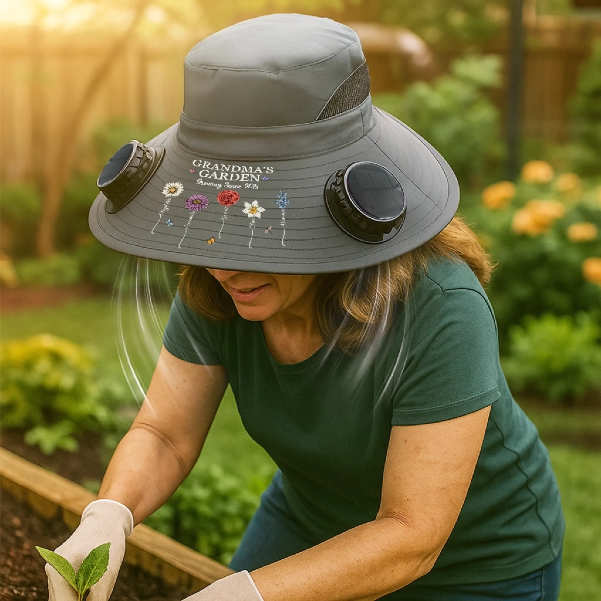 Custom Hat With Fans Solar Power - Personalized Garden Gifts For Gardeners, Mom, Grandma - Garden Of Love And Legacy
