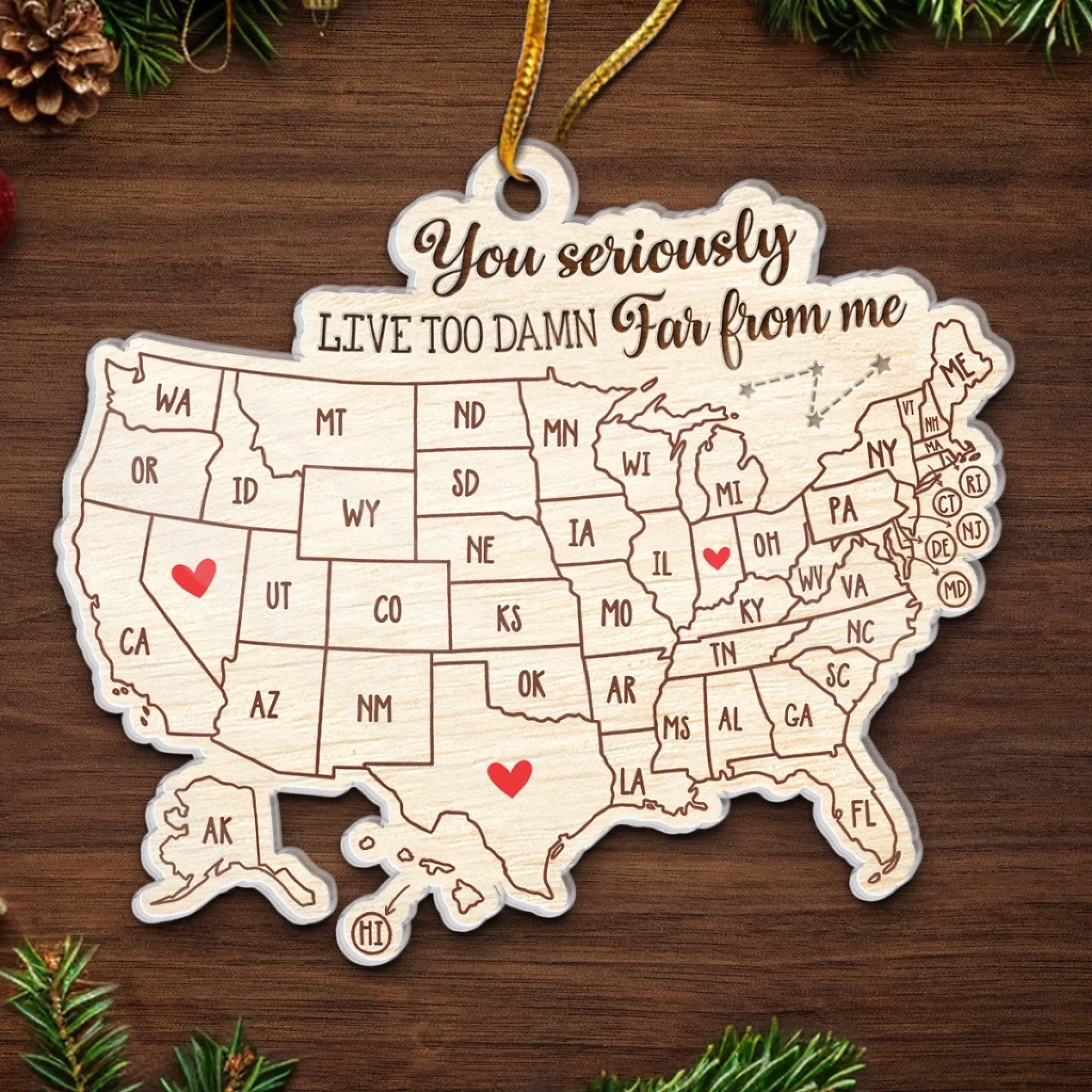 Custom Long Distance Acrylic Ornament - Personalized Best Friend Christmas Birthday Gifts For Women, Besties, Sisters, BFF - Bestie Love Knows No Distance