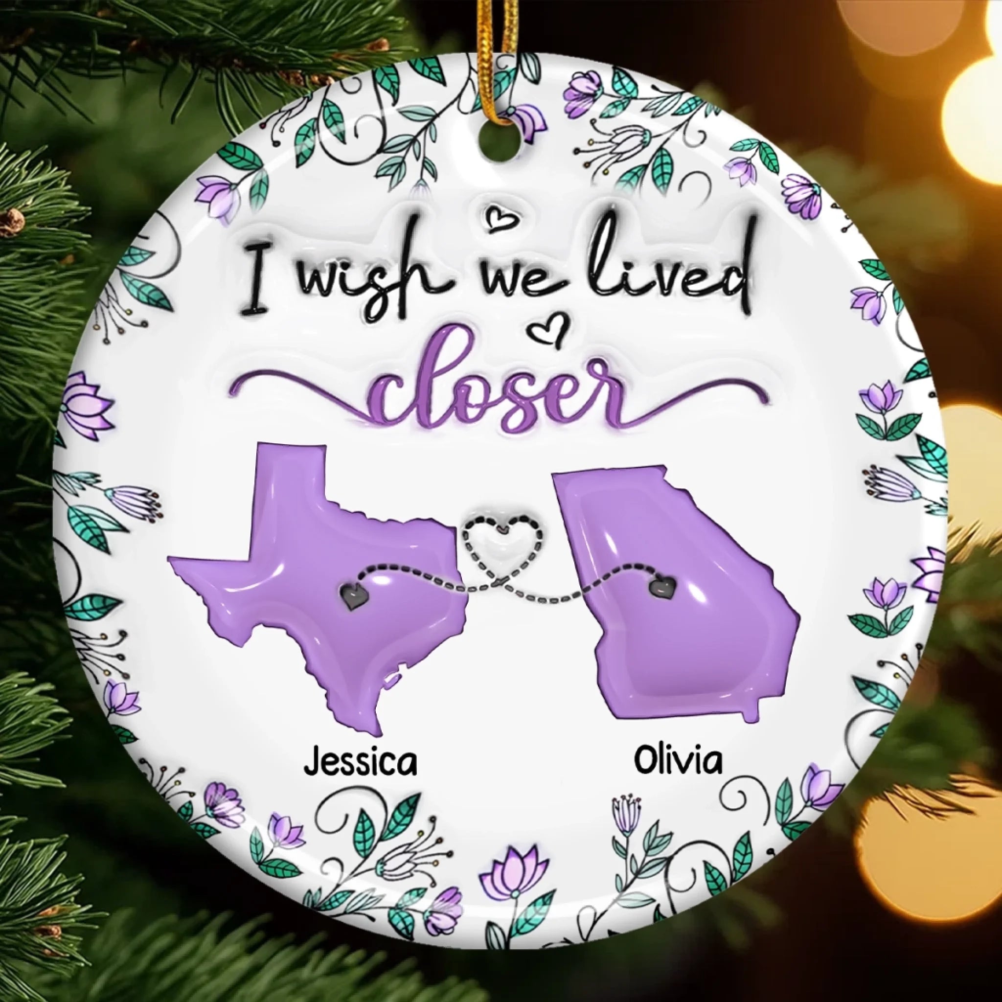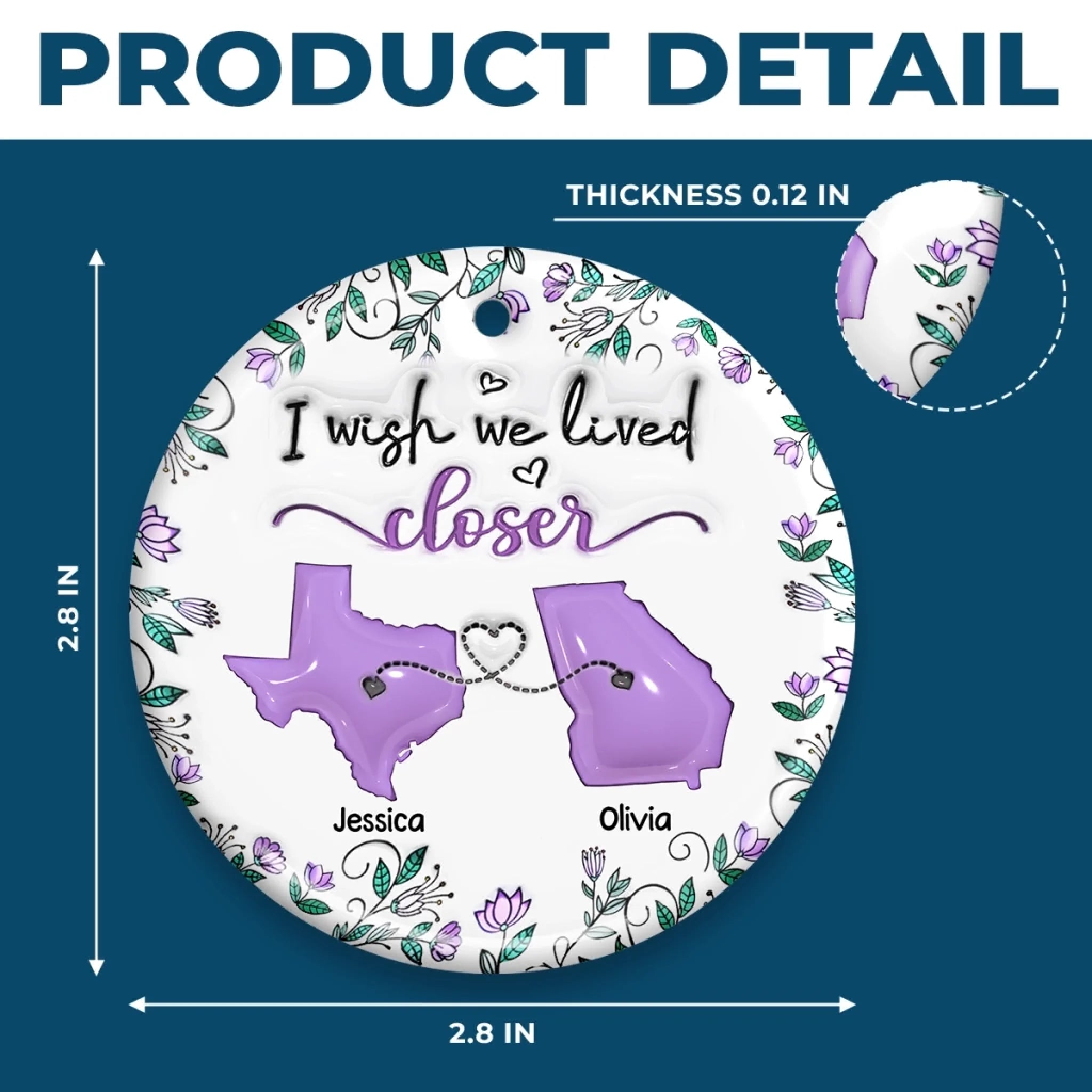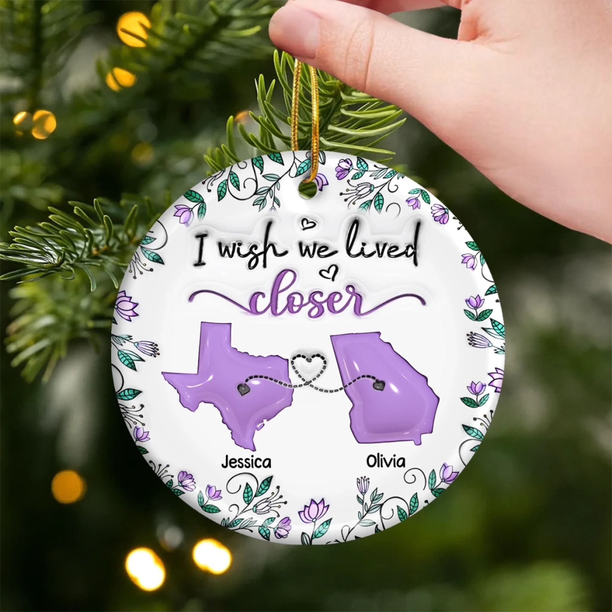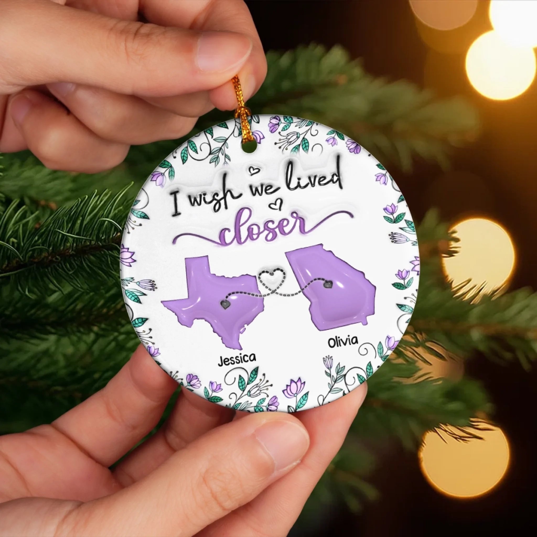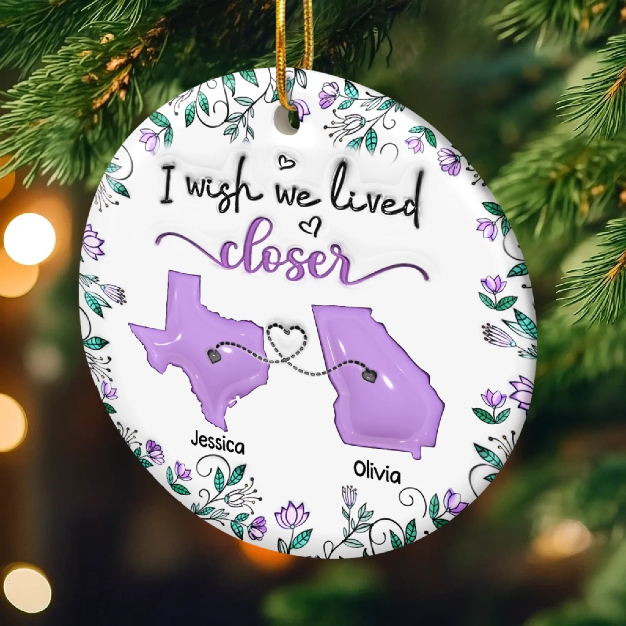 Custom Long Distance Ceramic Ornament - Personalized Best Friend Christmas Birthday Gifts For Women, Besties, Sisters, BFF - Far But Always Connected
