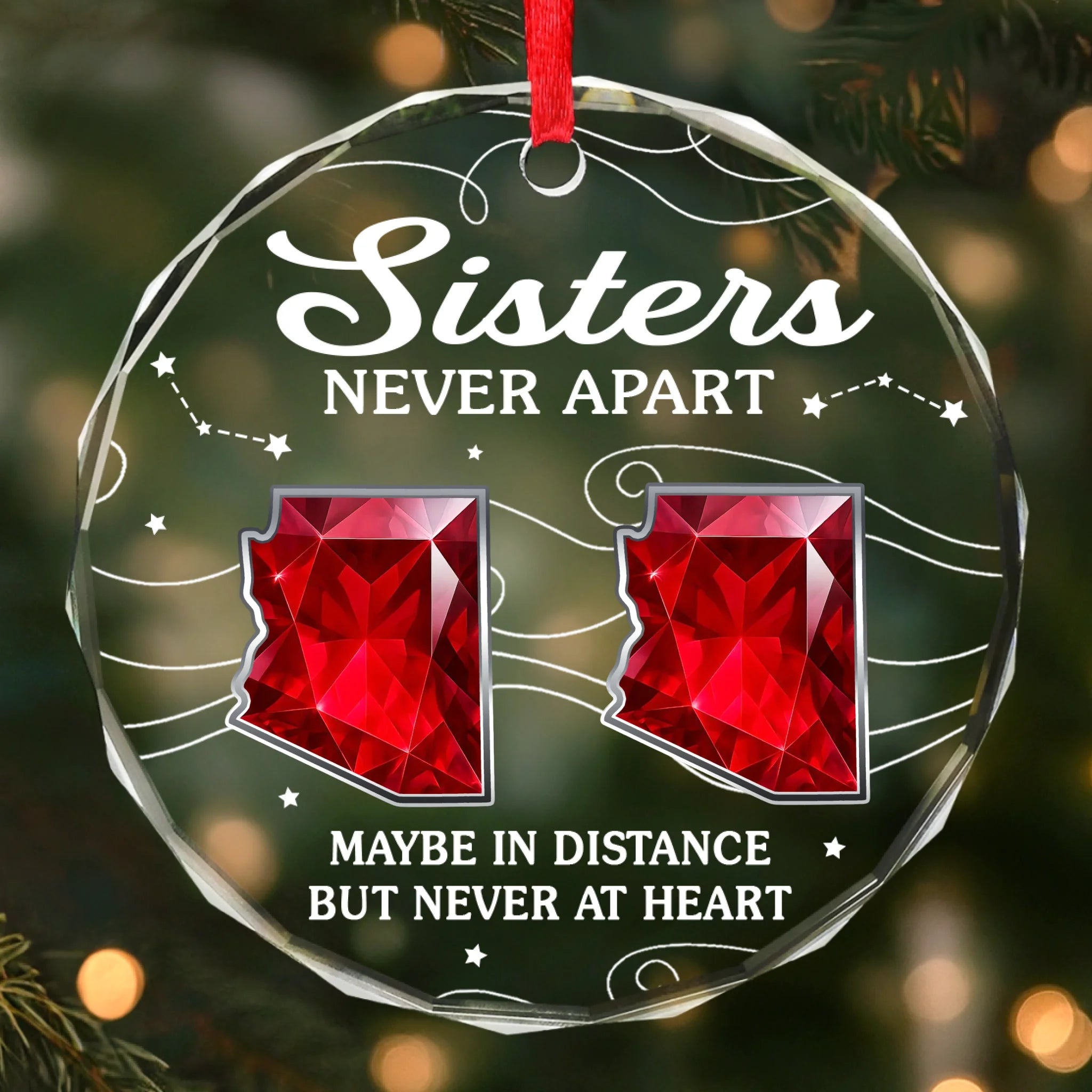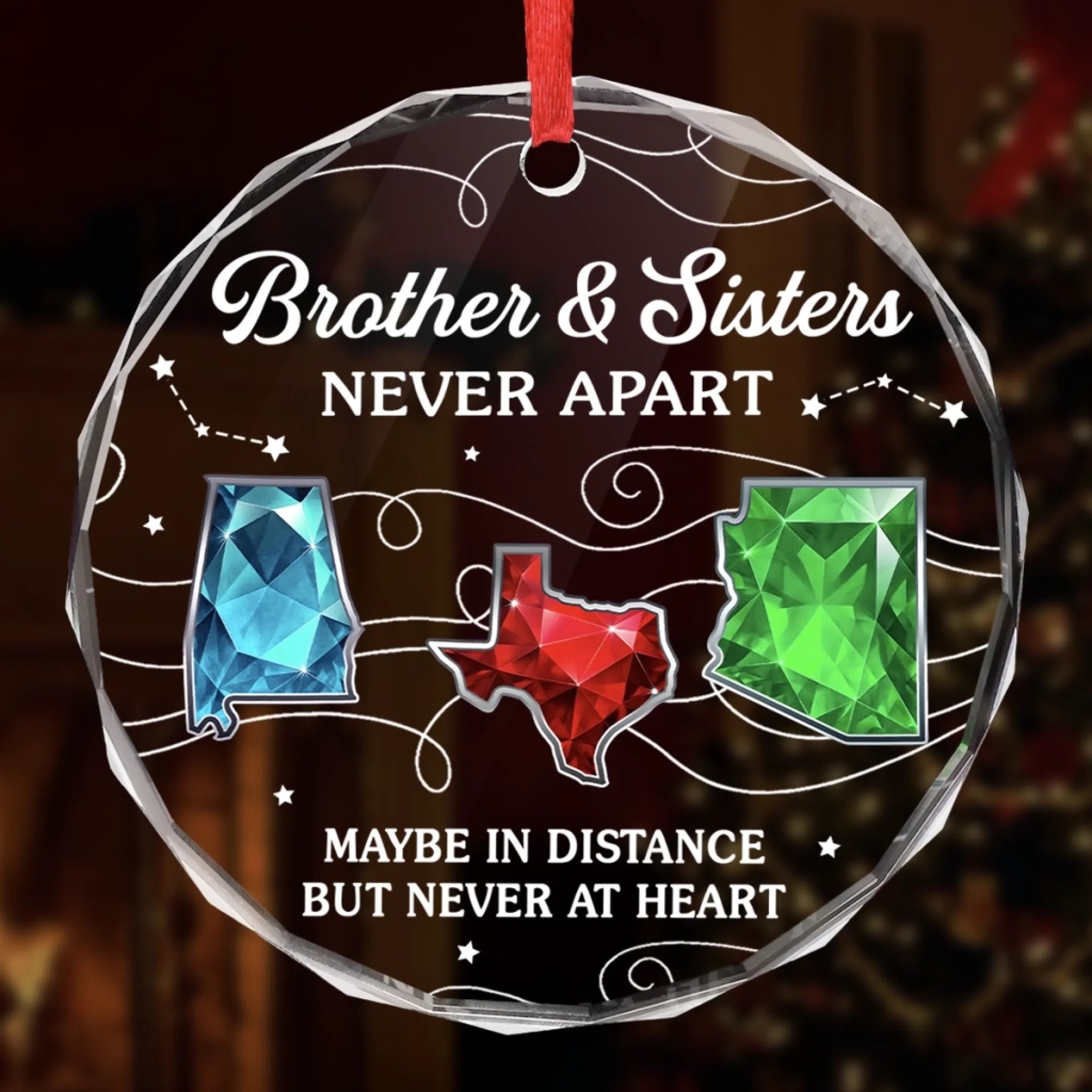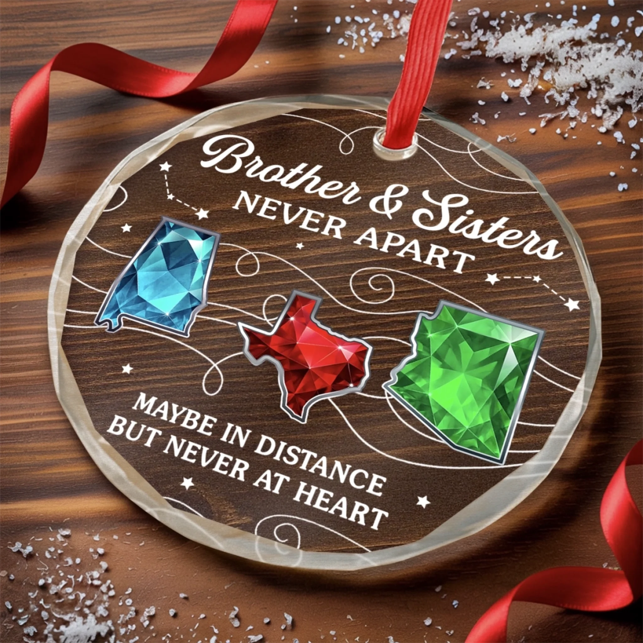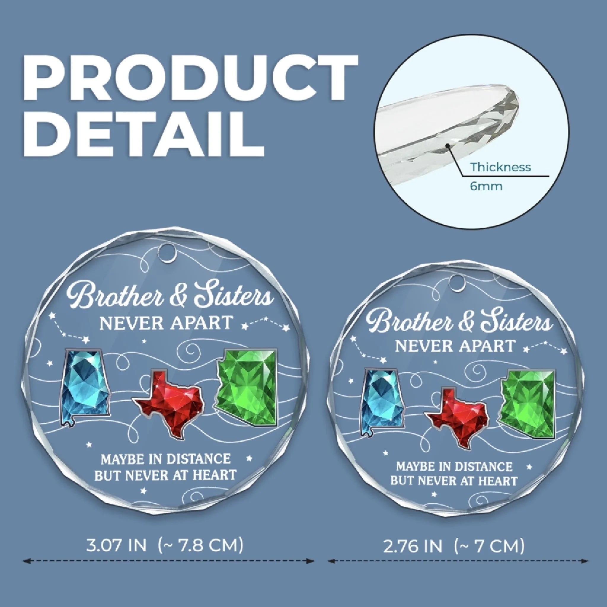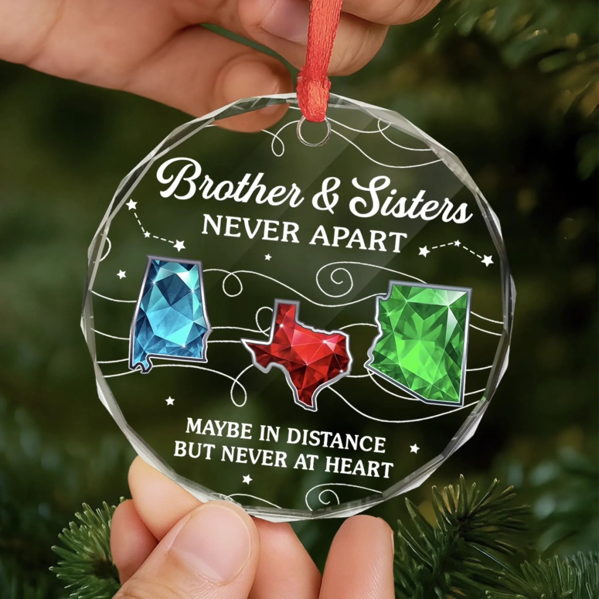 Custom Long Distance Circle Glass Ornament - Personalized Christmas Birthday Gifts For Brother, Sister - Miles Apart Hearts Aligned