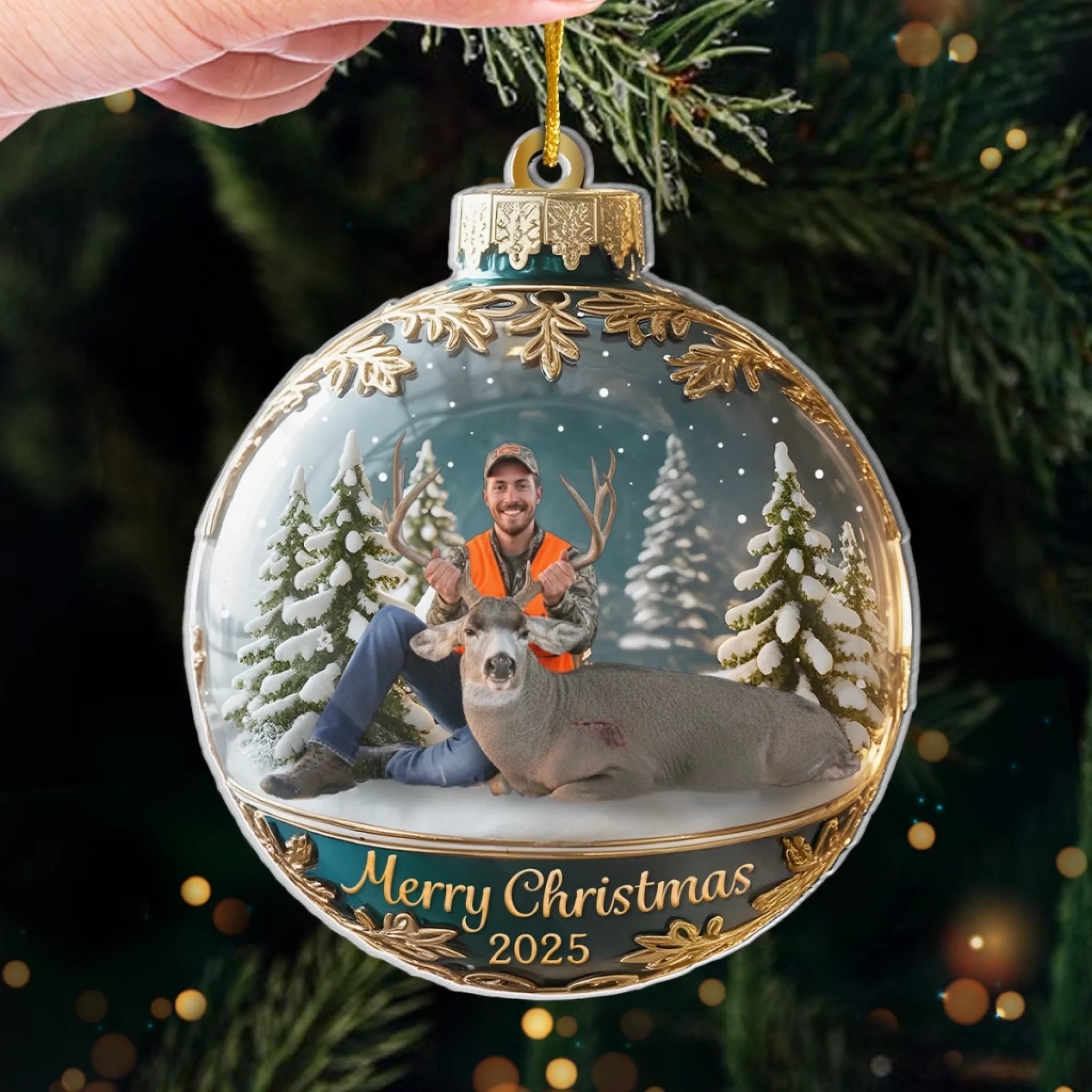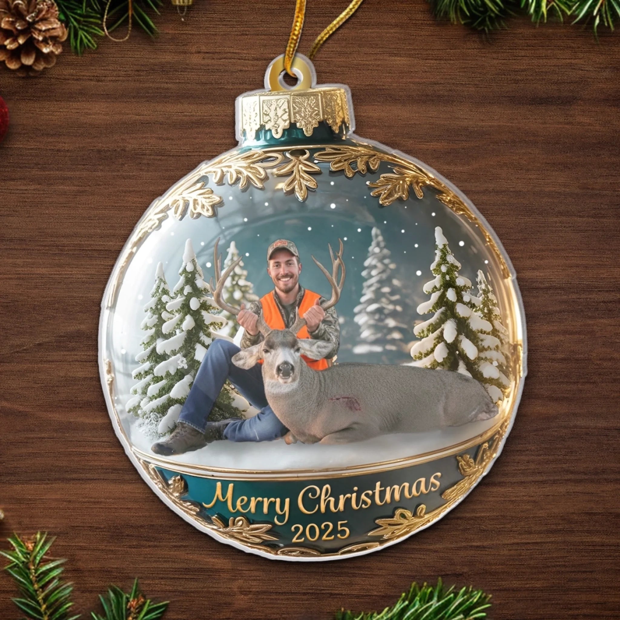 Custom Photo Acrylic Ornament - Personalized Christmas Birthday Hunting Gifts For Hunters - Hunt Hard, Hang Proud