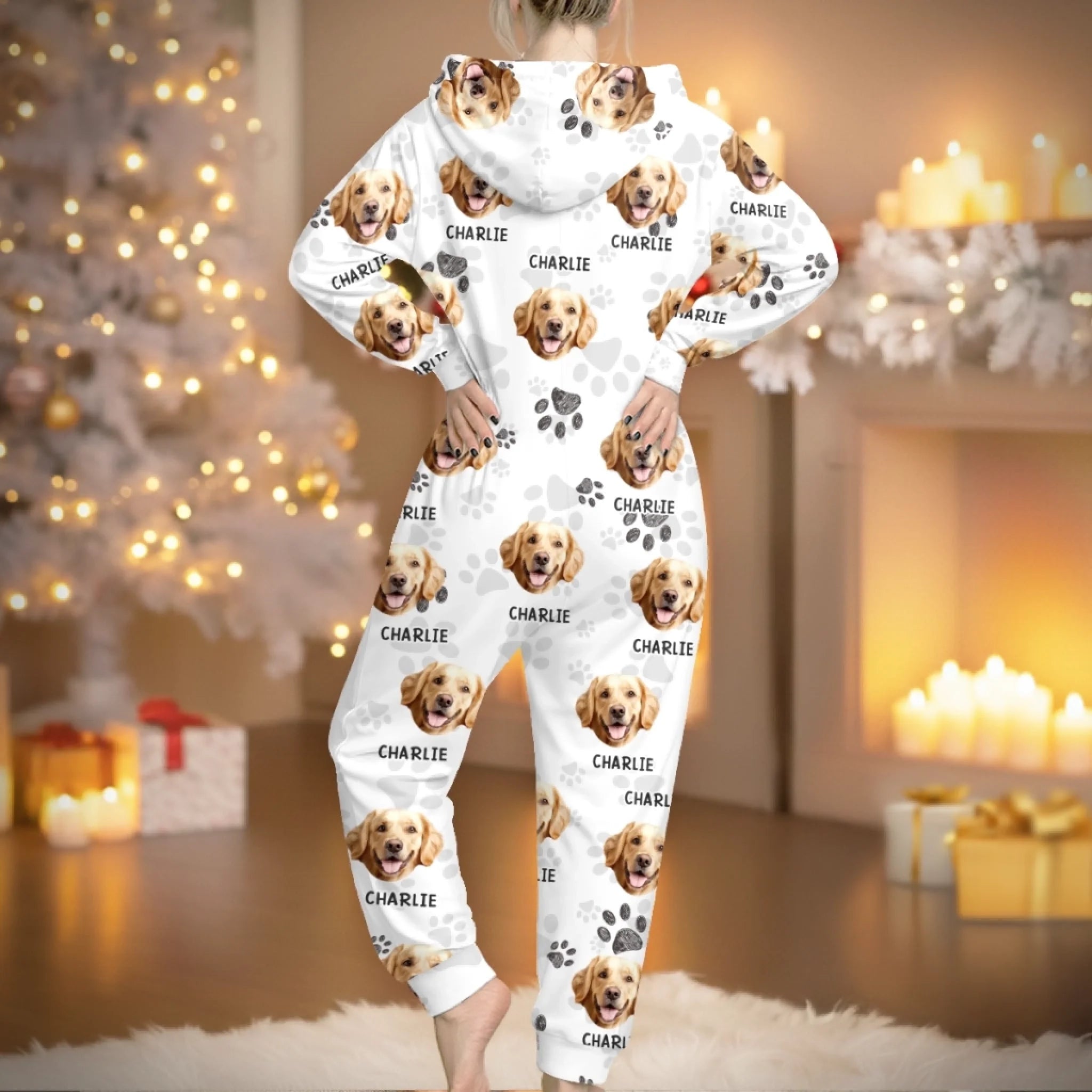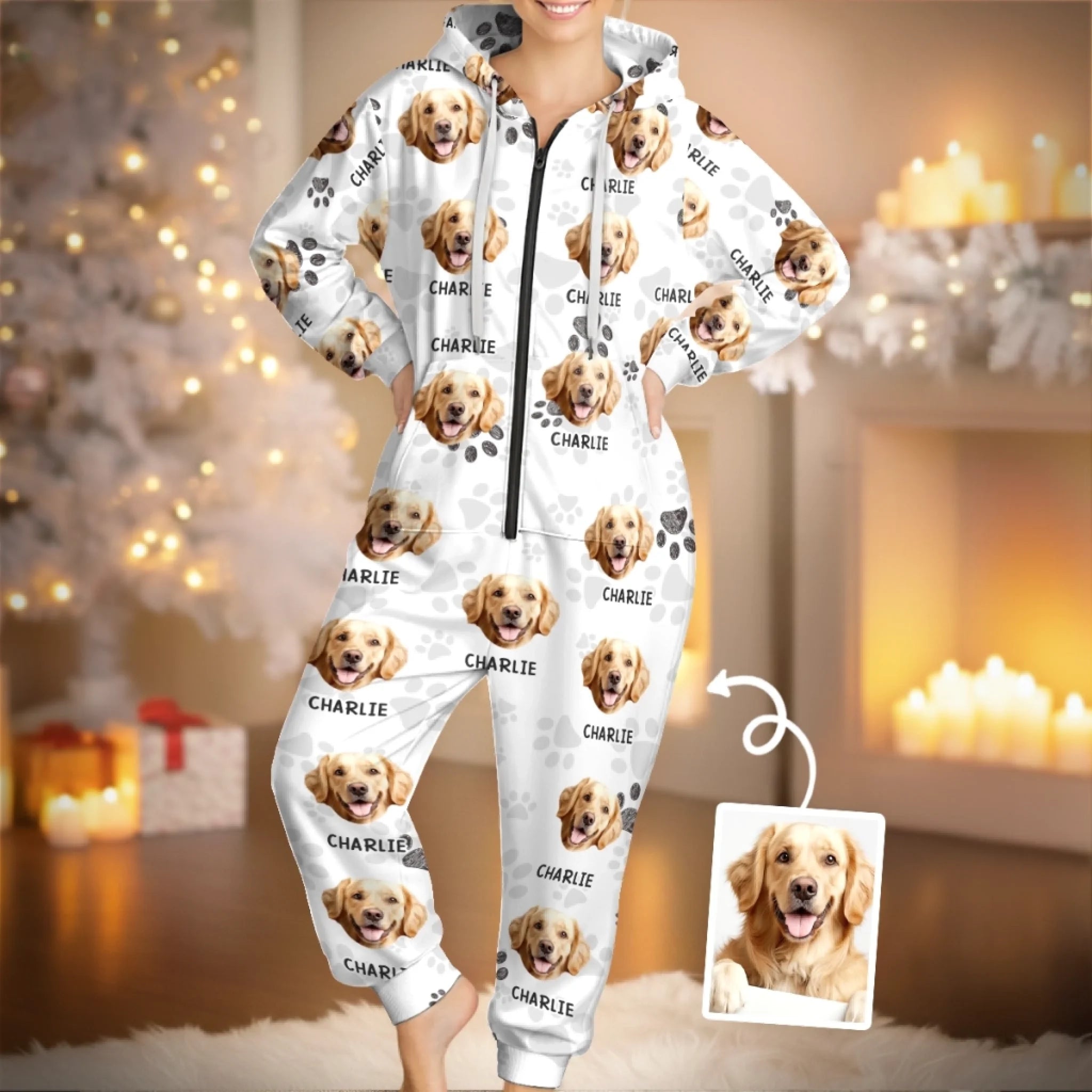 Custom Photo Adult Onesie - Personalized Christmas Birthday Gifts For Dog Cat Lovers, Dog Dad And Mom, Cat Owners - My Dog, My Happy Place