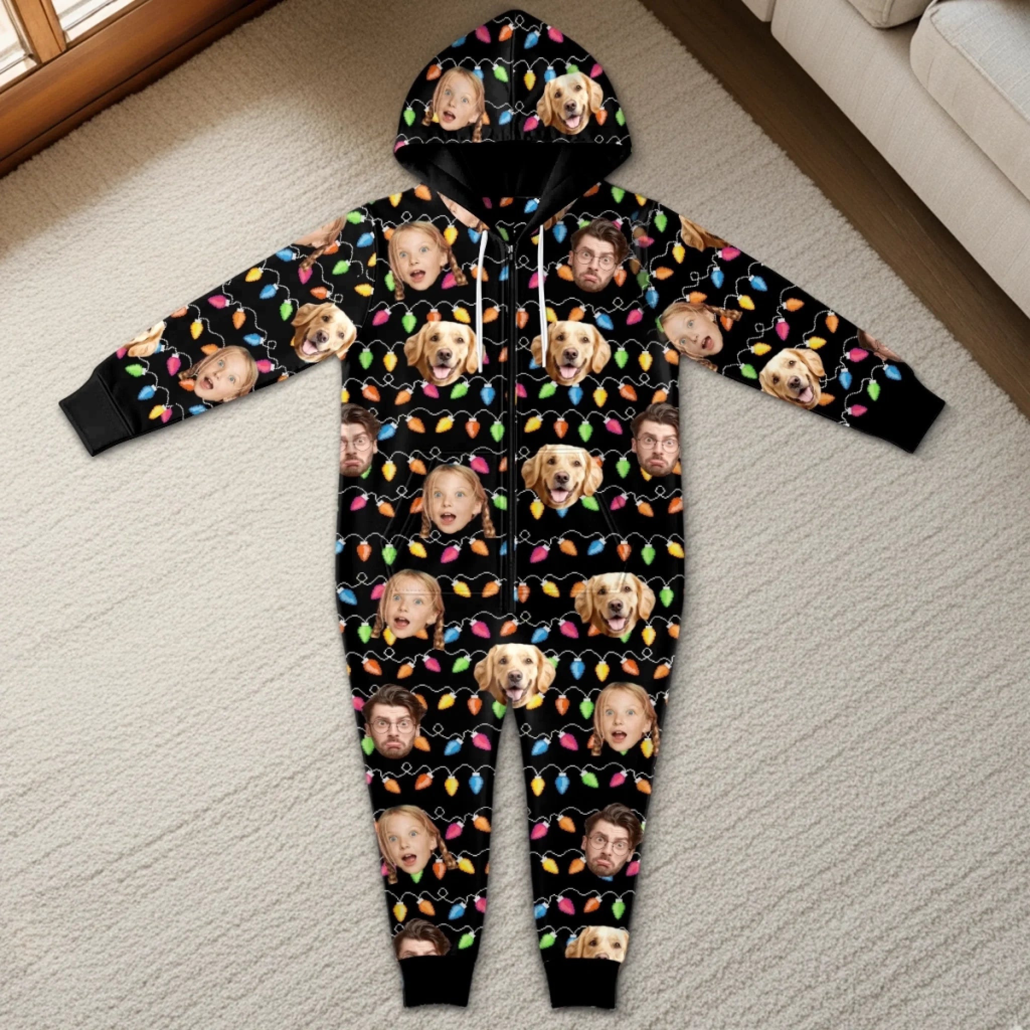 Custom Photo Adult Onesie - Personalized Christmas Birthday Gifts For Family, Dog Cat Lovers - Santa’s Favorite Weird Family